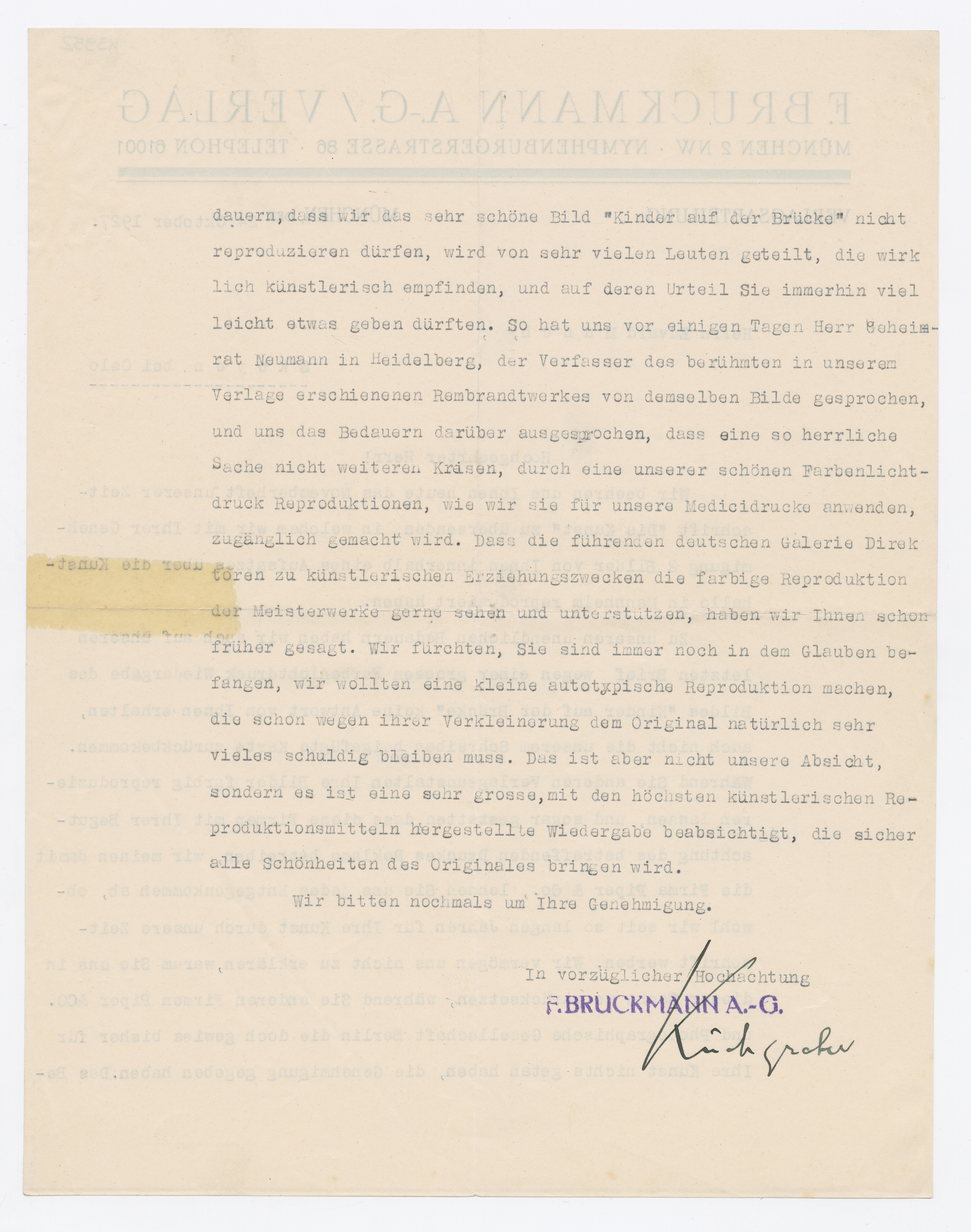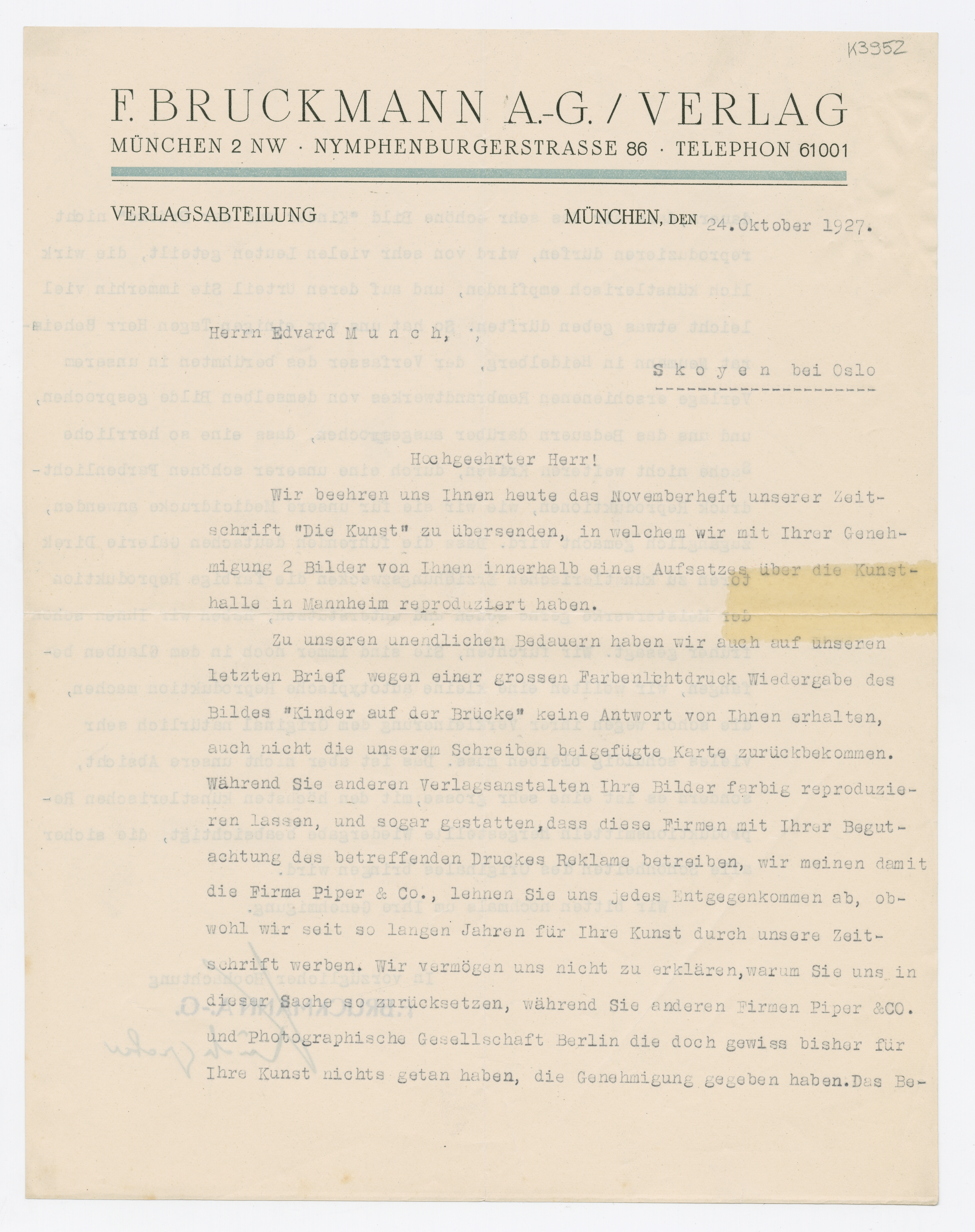 MM K 3952, Munchmuseet. Datert 24.10.1927. Brev fra F. Bruckmann A.G. Verlag.