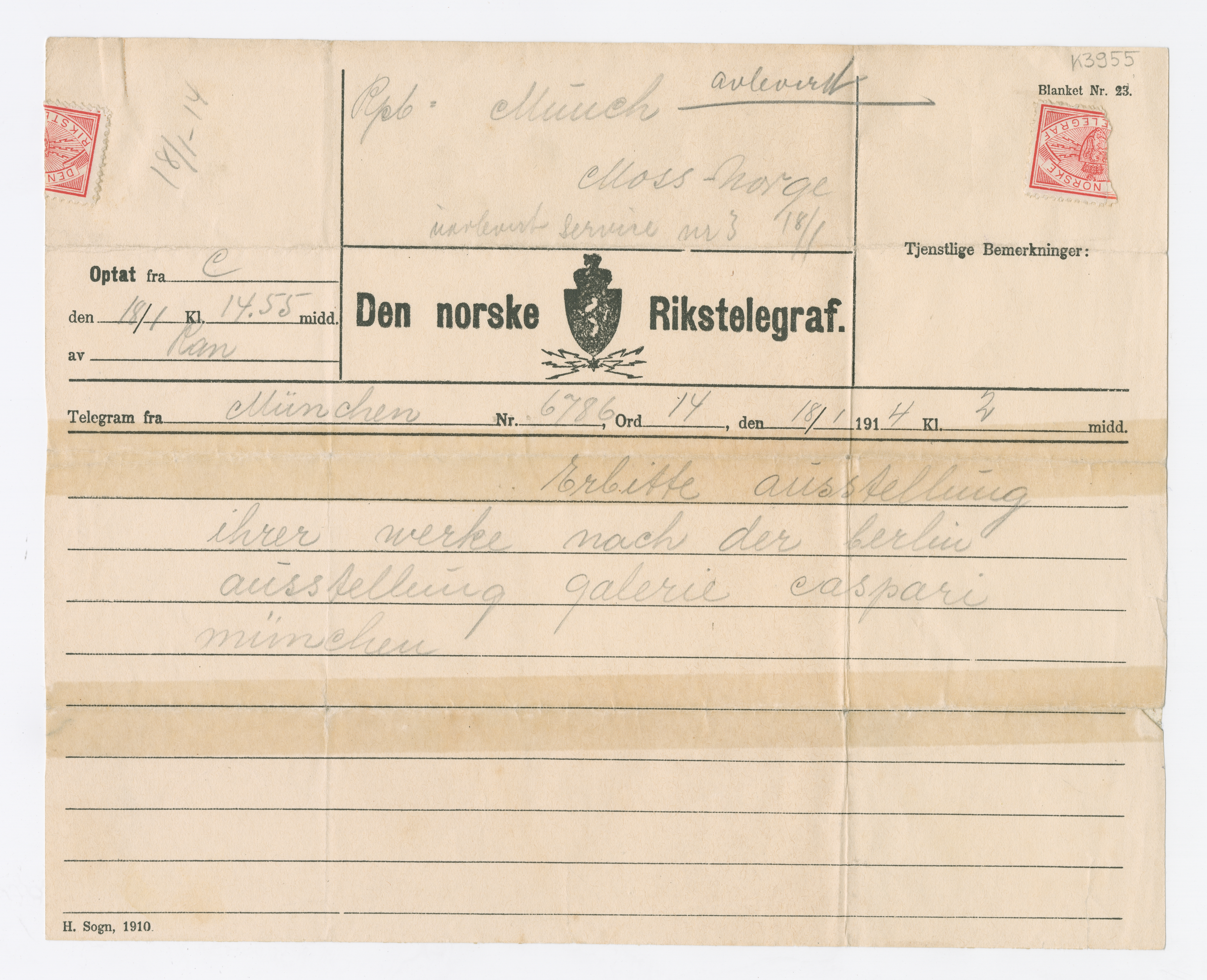 MM K 3955, Munchmuseet. Datert 18.01.1914. Brev fra Galerie Caspari.