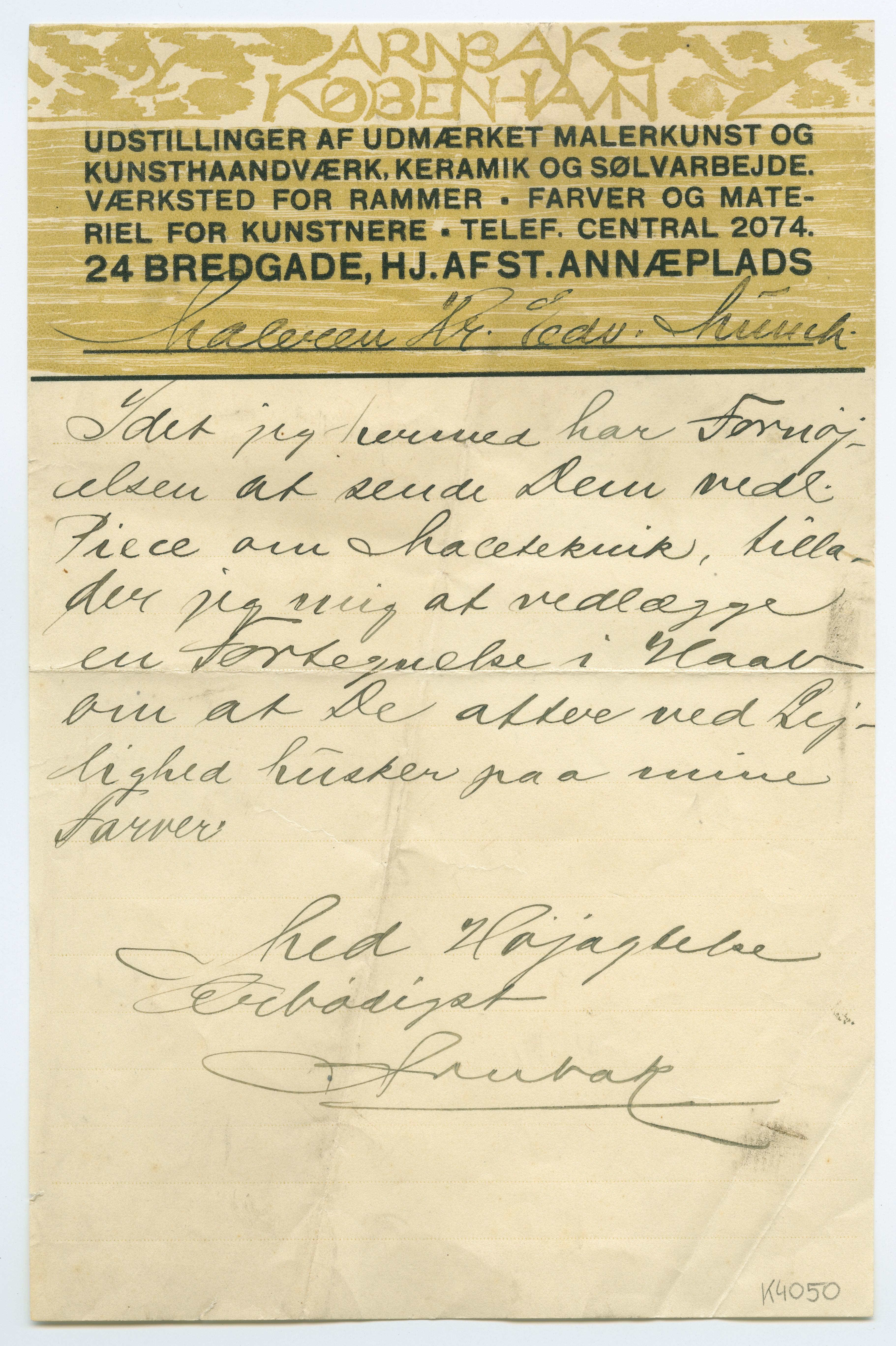 MM K 4050, Munchmuseet. Ikke datert. Brev fra Arnbak.