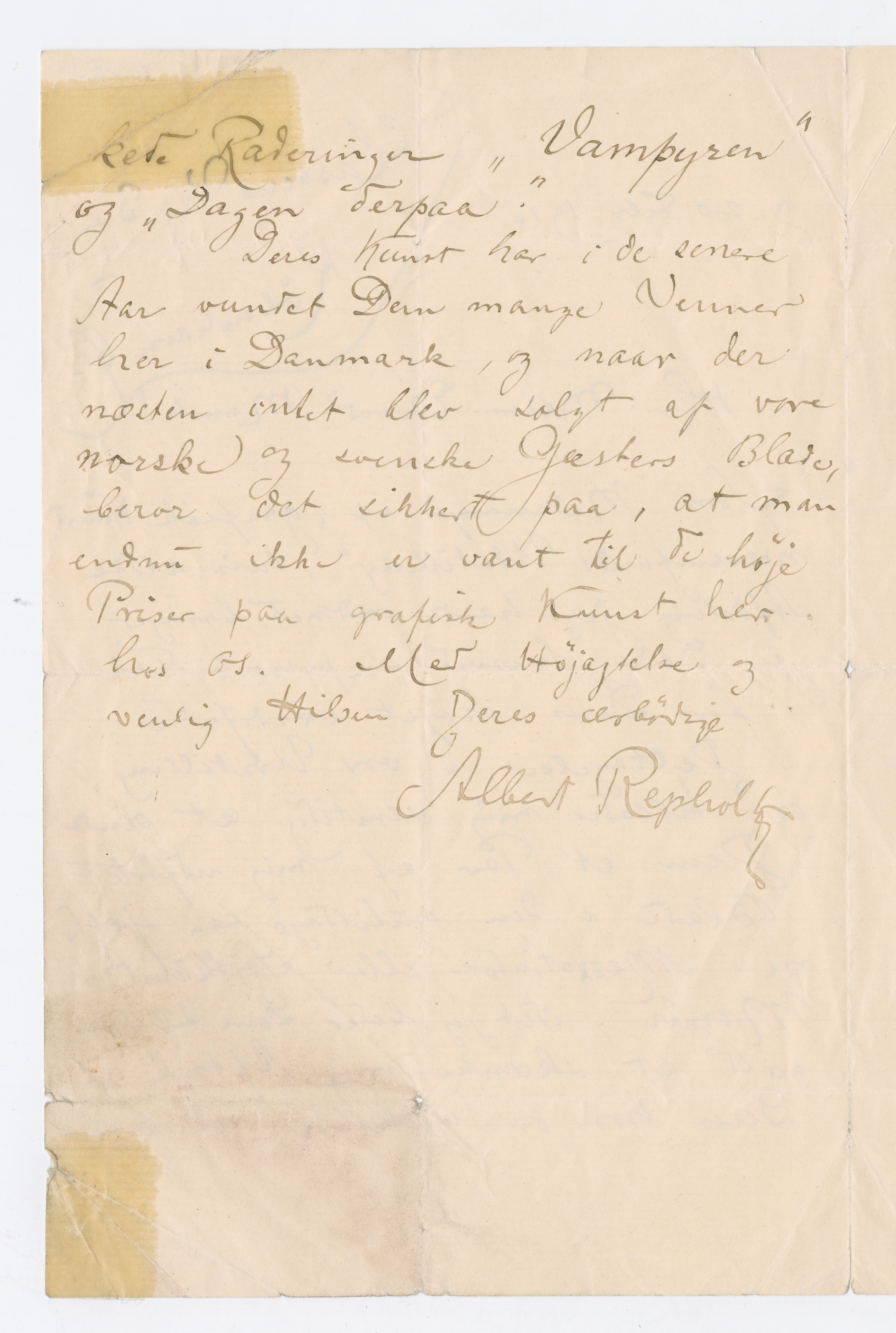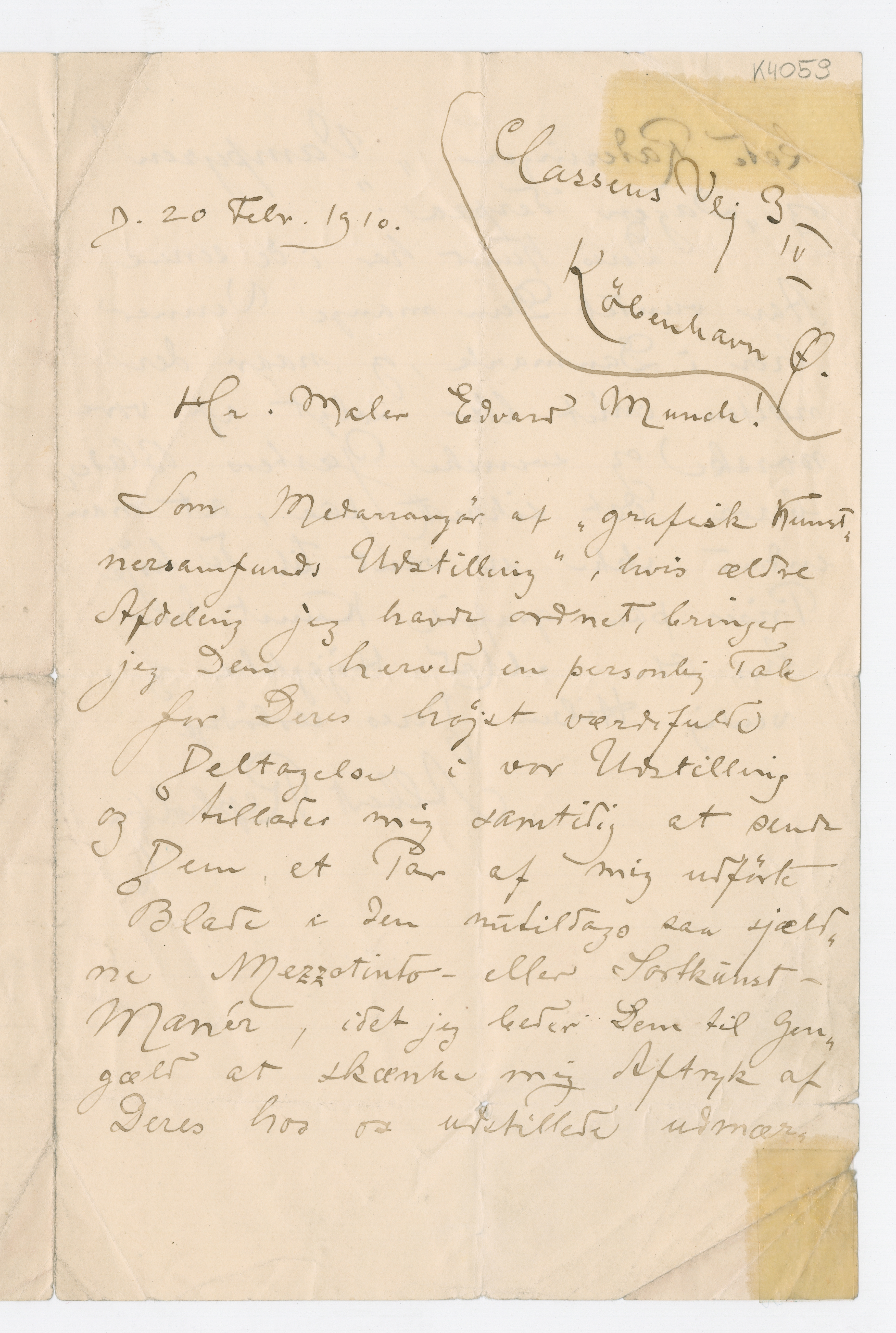 MM K 4059, Munchmuseet. Datert 20.02.1910. Brev fra Albert Repholtz, Grafisk Kunstersamfund.