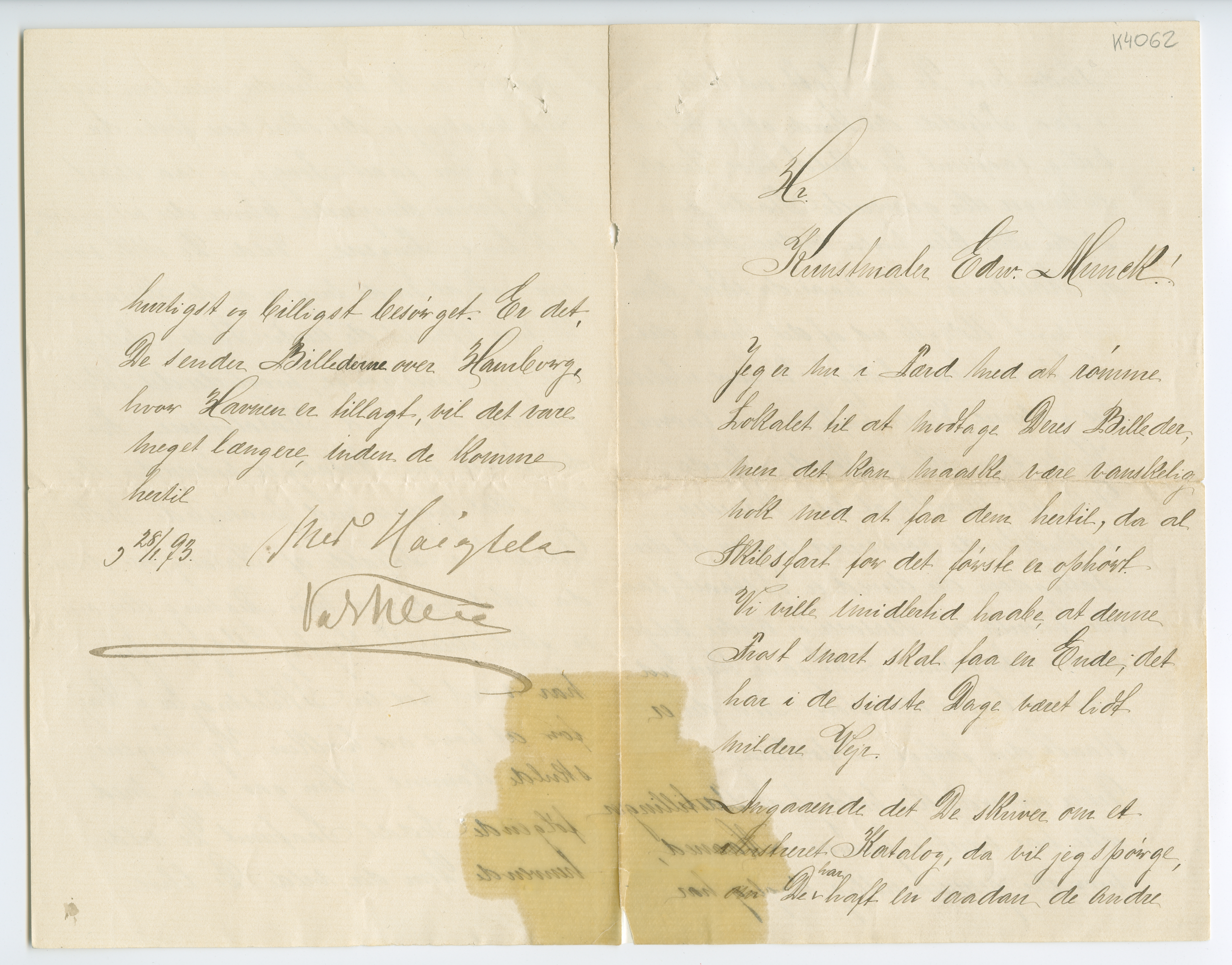 MM K 4062, Munchmuseet. Datert 28.01.1893. Brev fra Kunsthandel V. Kleis.