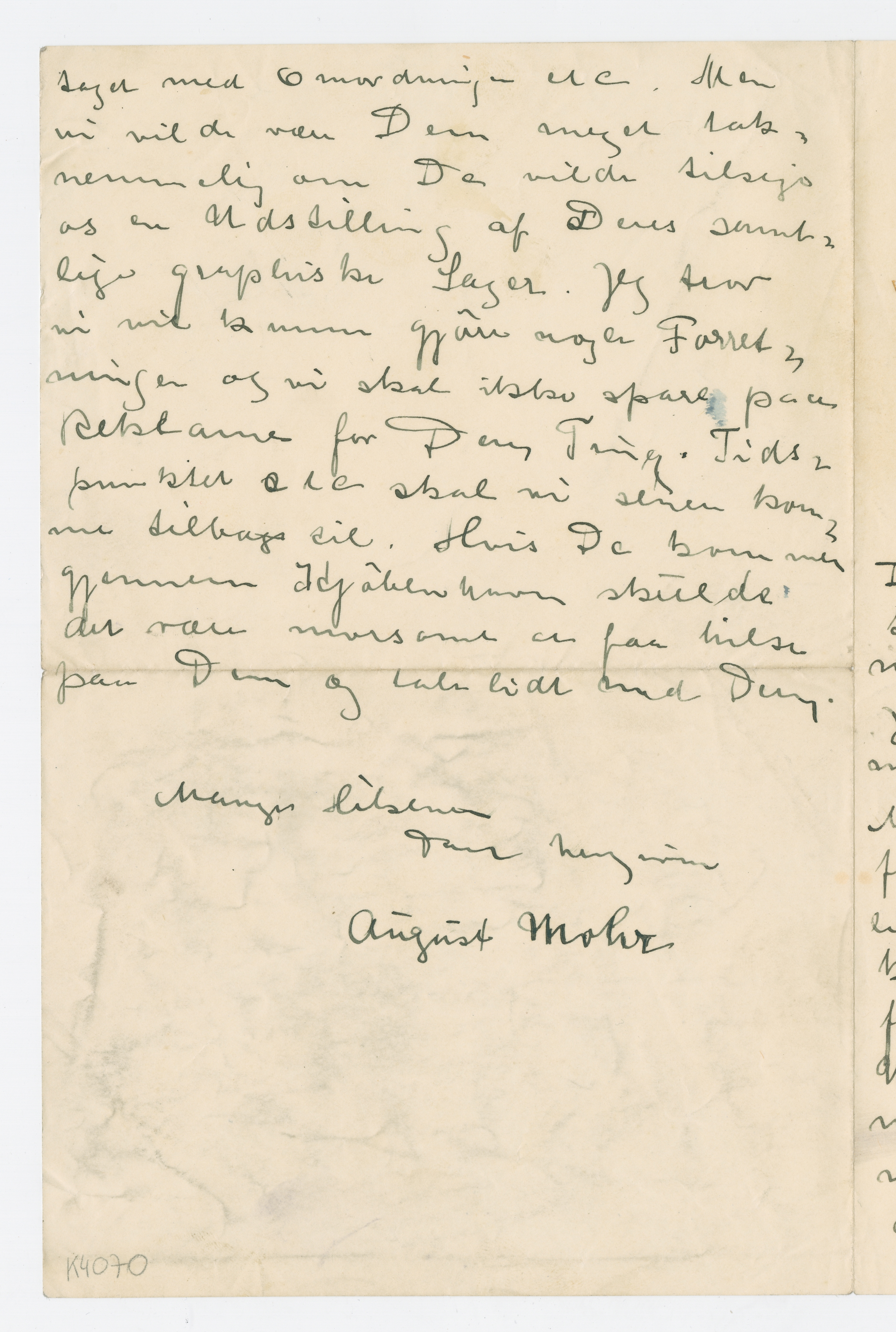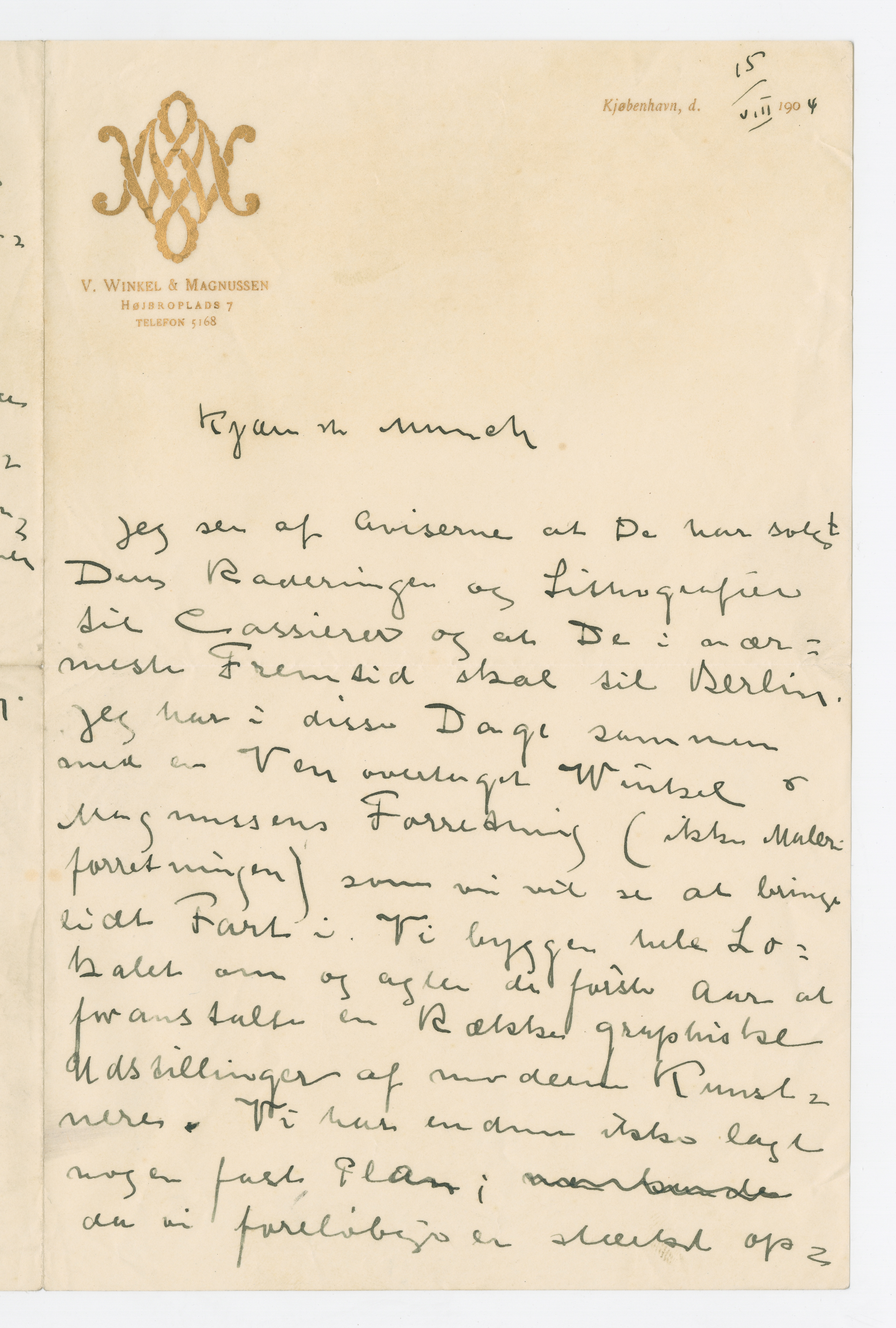 MM K 4070, Munchmuseet. Datert 15.08.1904. Brev fra August Christian Mohr, V. Winkel & Magnussen.