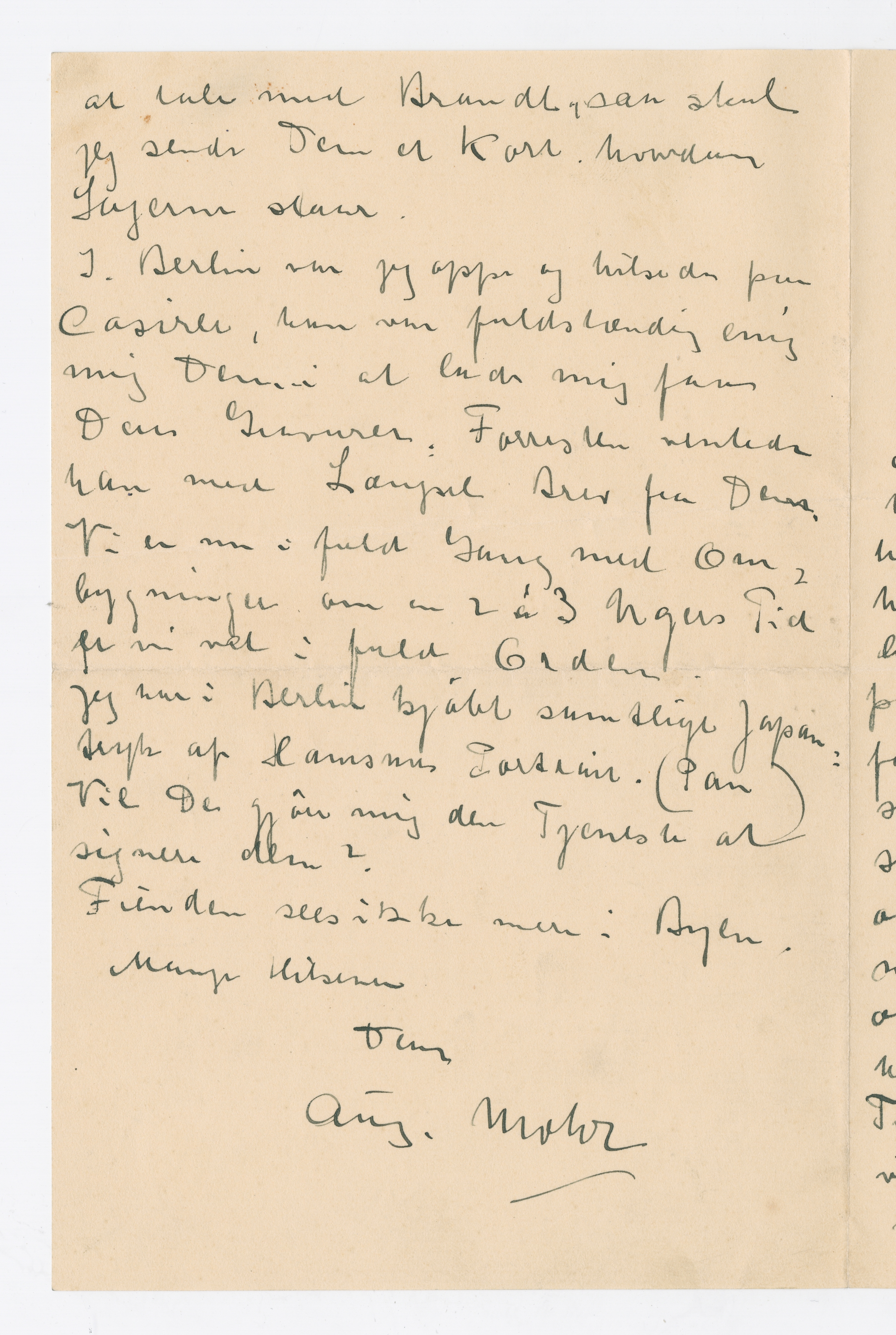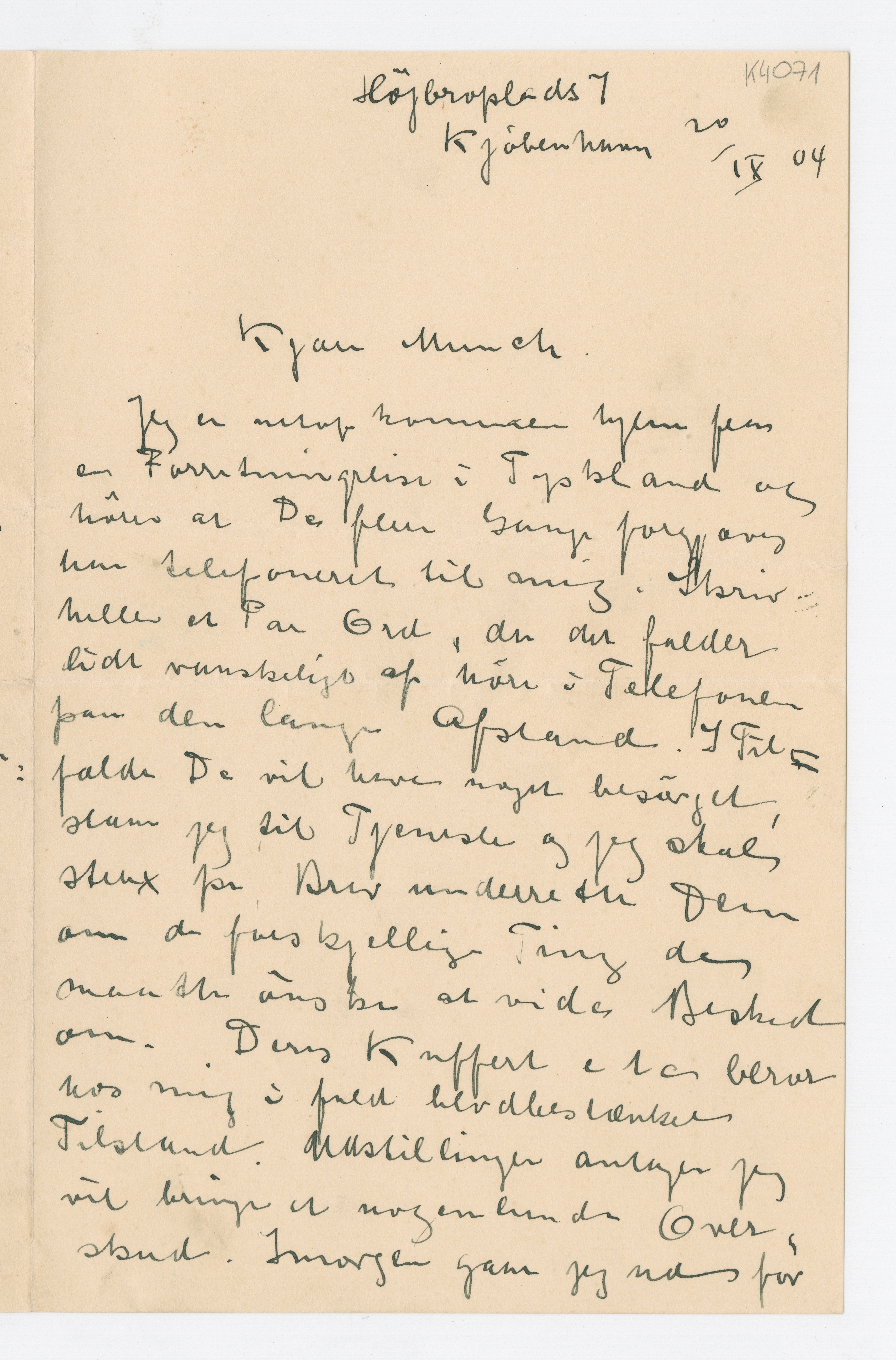 MM K 4071, Munchmuseet. Datert 20.09.1904. Brev fra August Christian Mohr, V. Winkel & Magnussen.