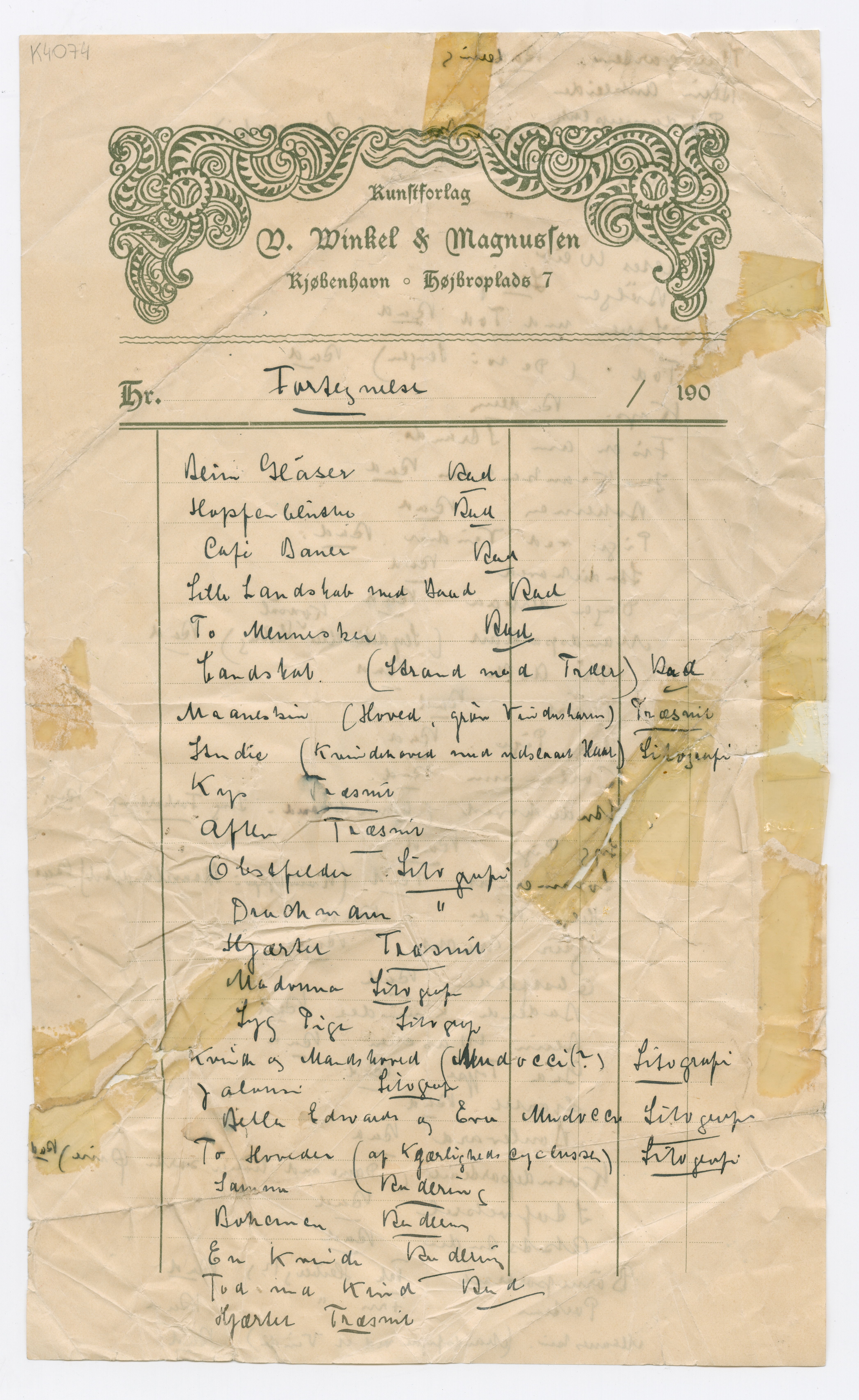 MM K 4074, Munchmuseet. Ikke datert. Brev fra August Christian Mohr, V. Winkel & Magnussen.