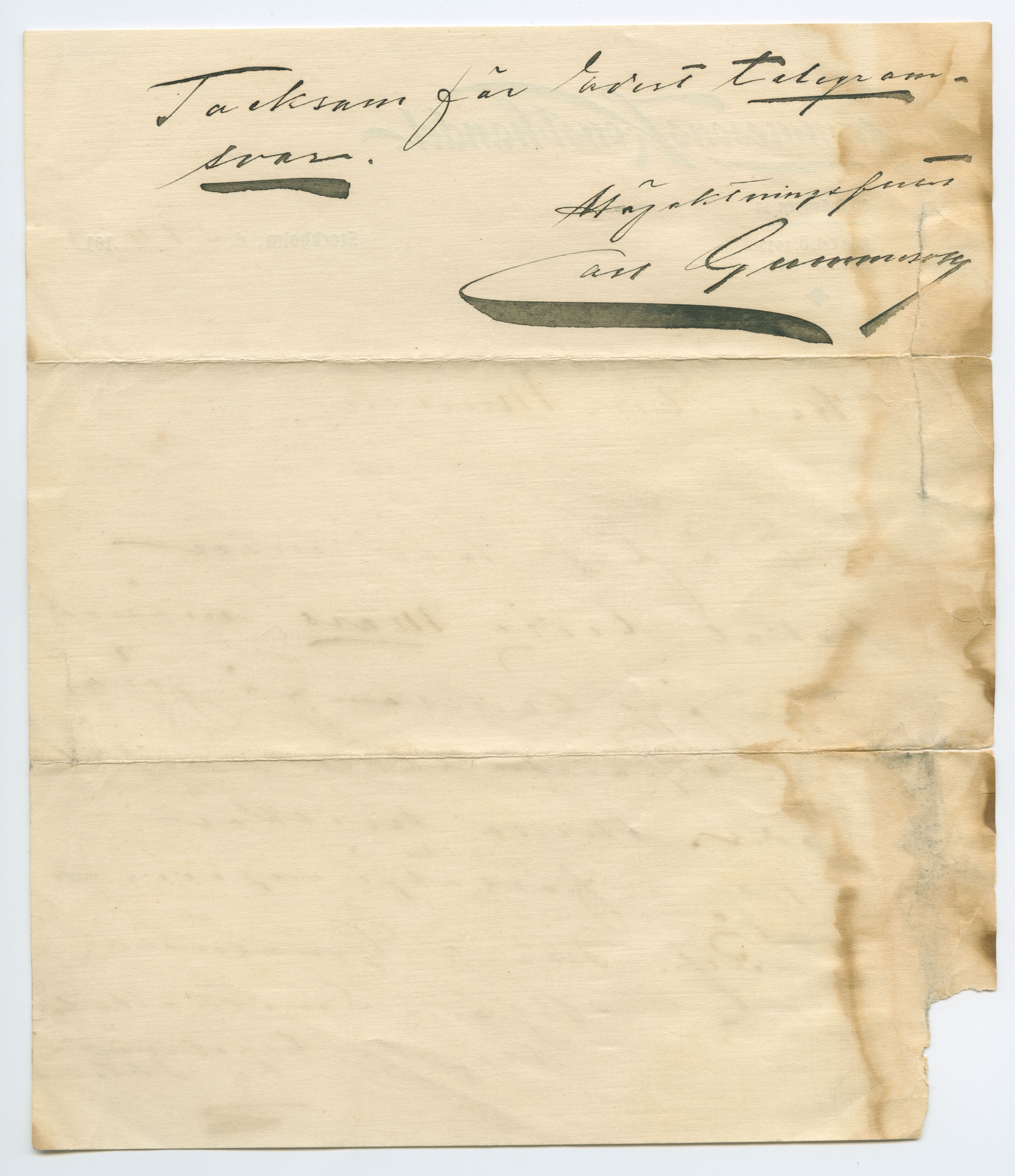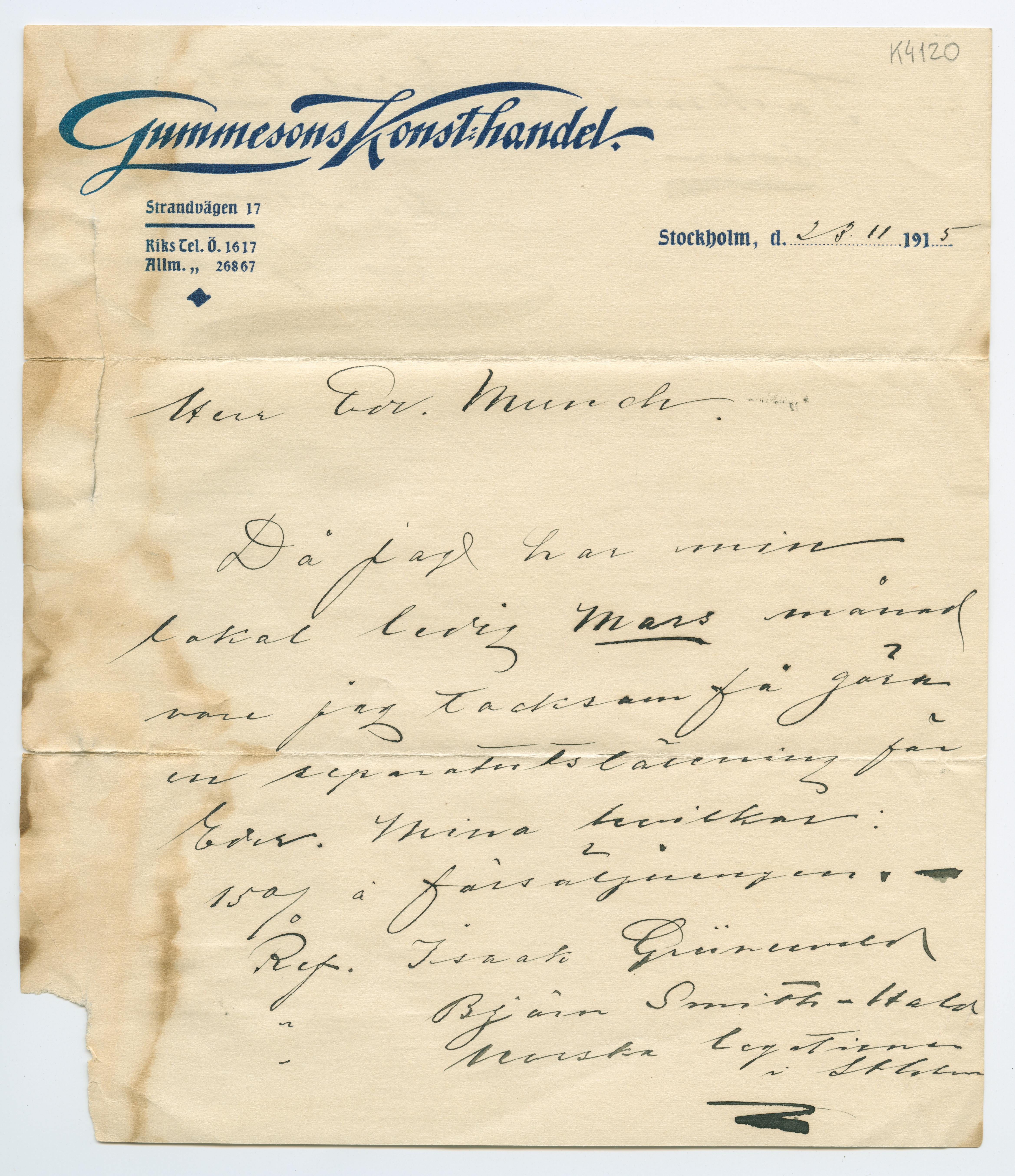 MM K 4120, Munchmuseet. Datert 23.11.1915. Brev fra Carl Gummeson, Carl Gummesons Konsthandeln.