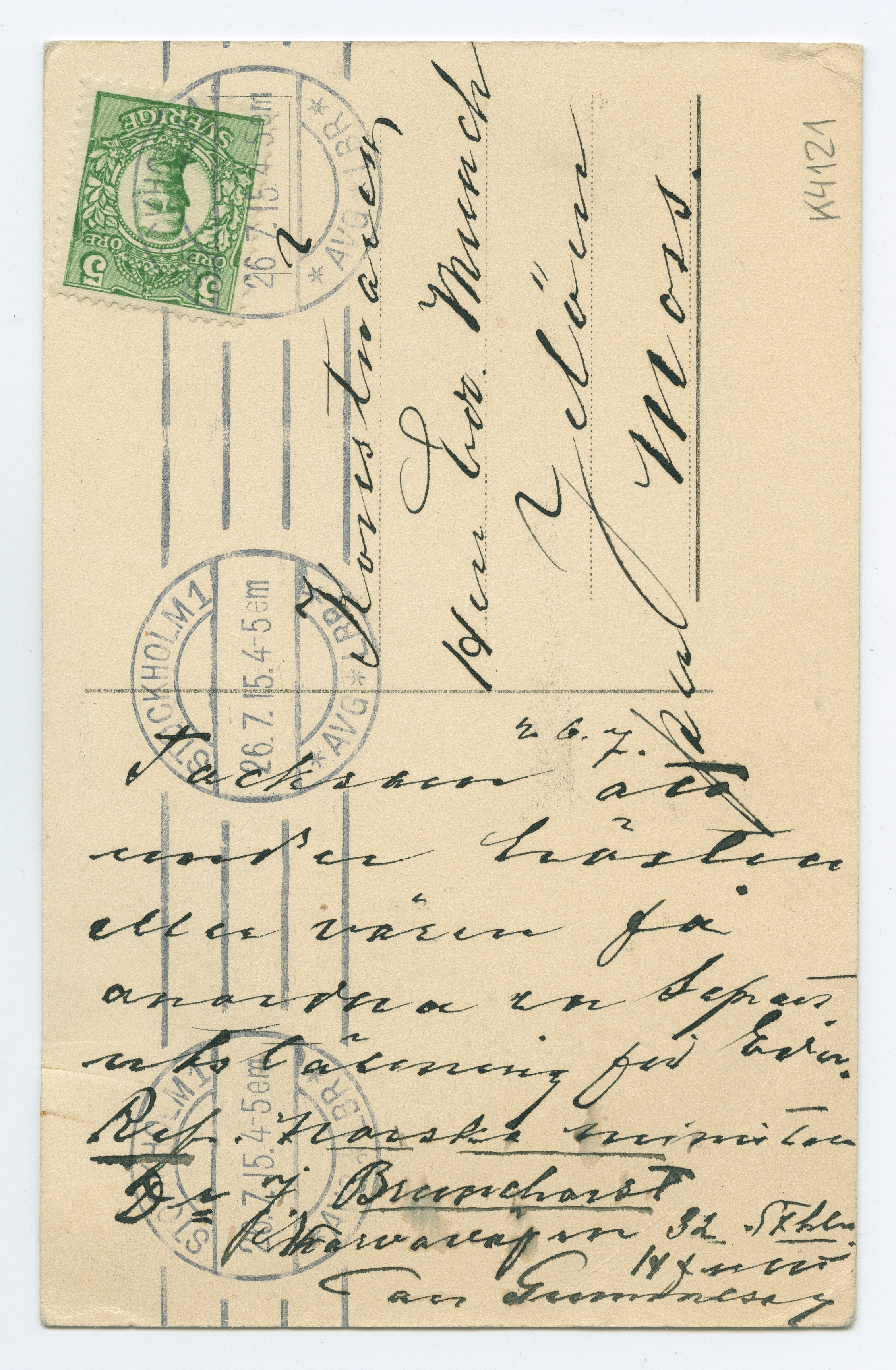 MM K 4121, Munchmuseet. Datert 26.07.1915. Brev fra Carl Gummeson, Carl Gummesons Konsthandeln.