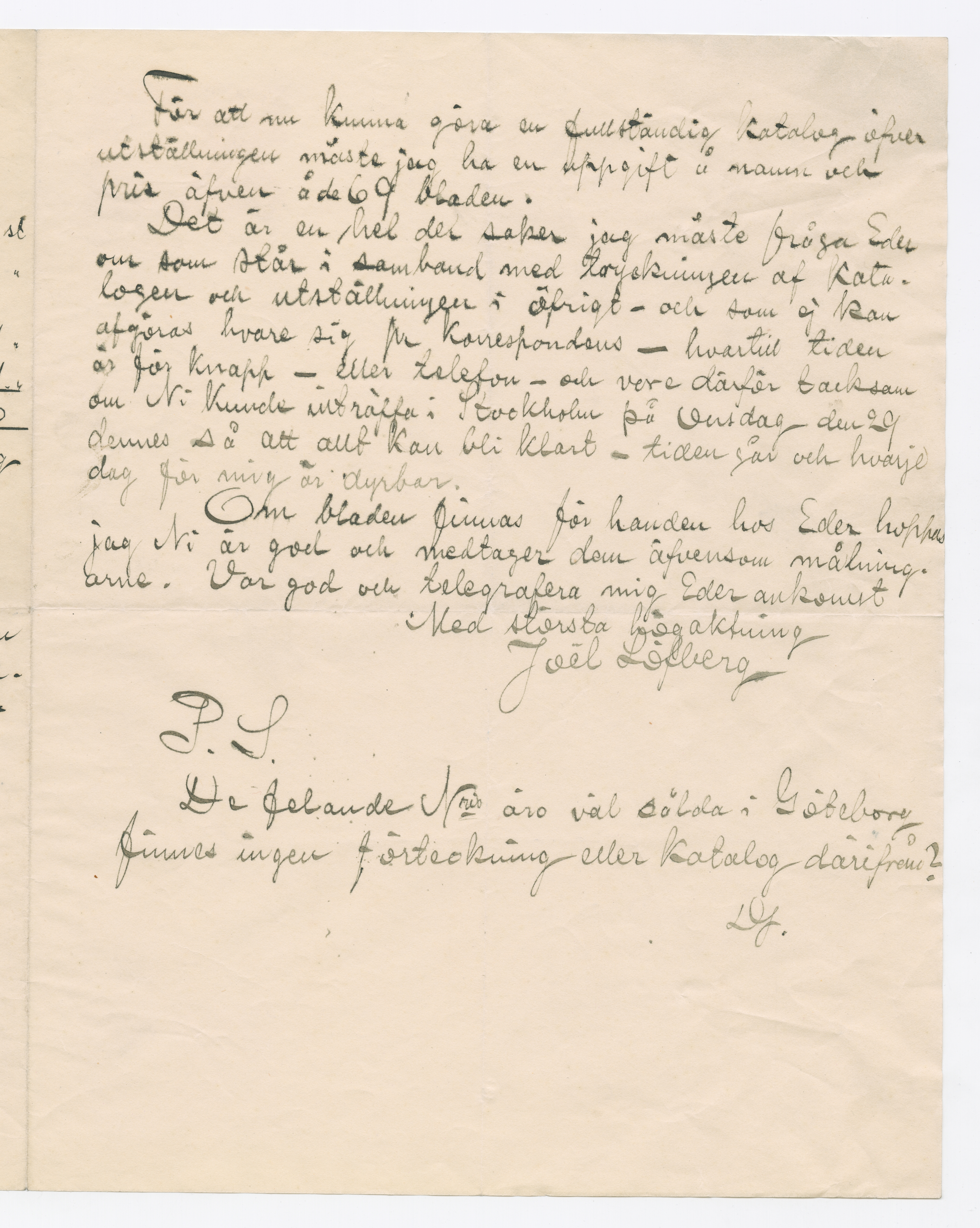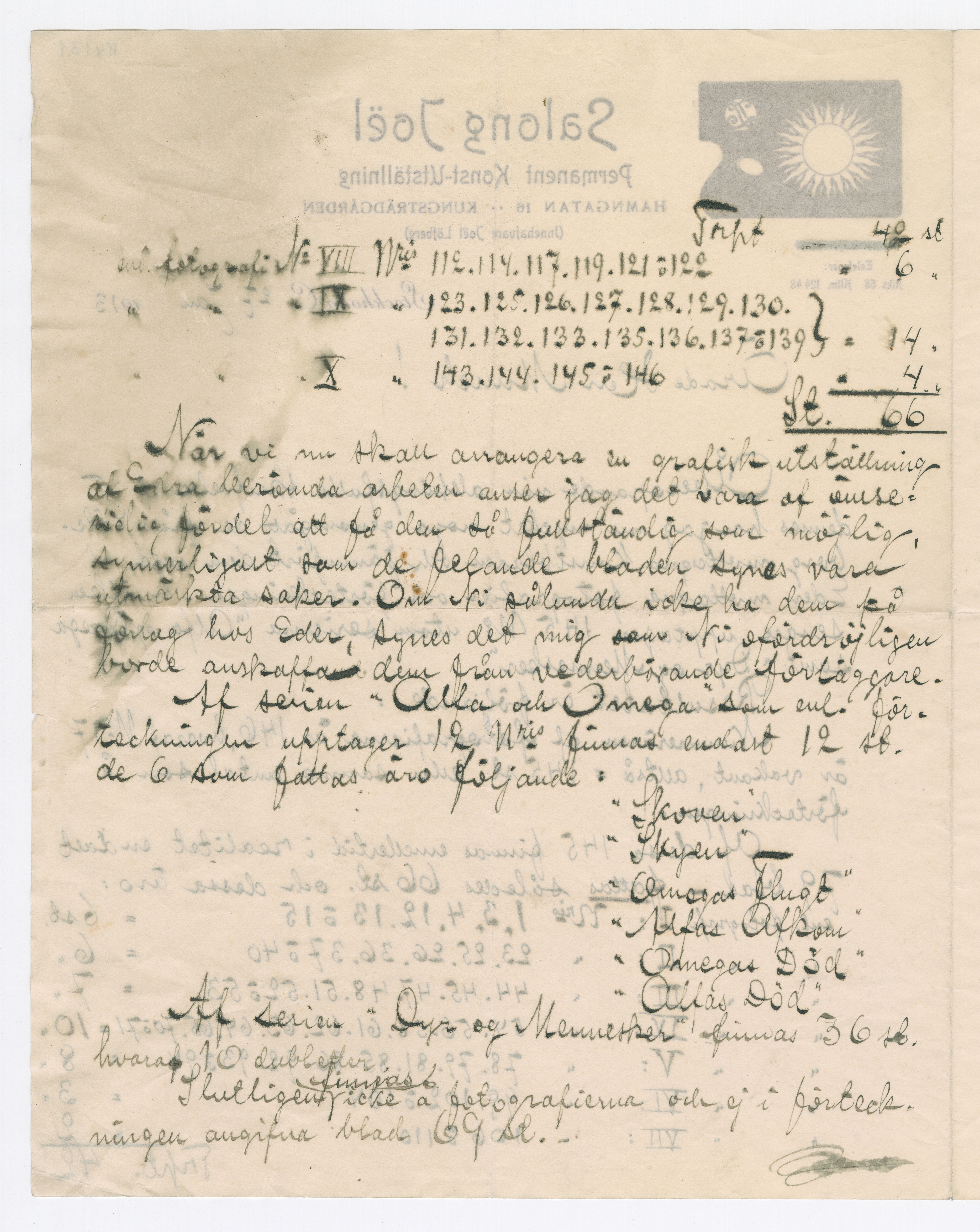 Brev fra Salong Joël Permanent Konst-Utställning, Joël Löfberg.