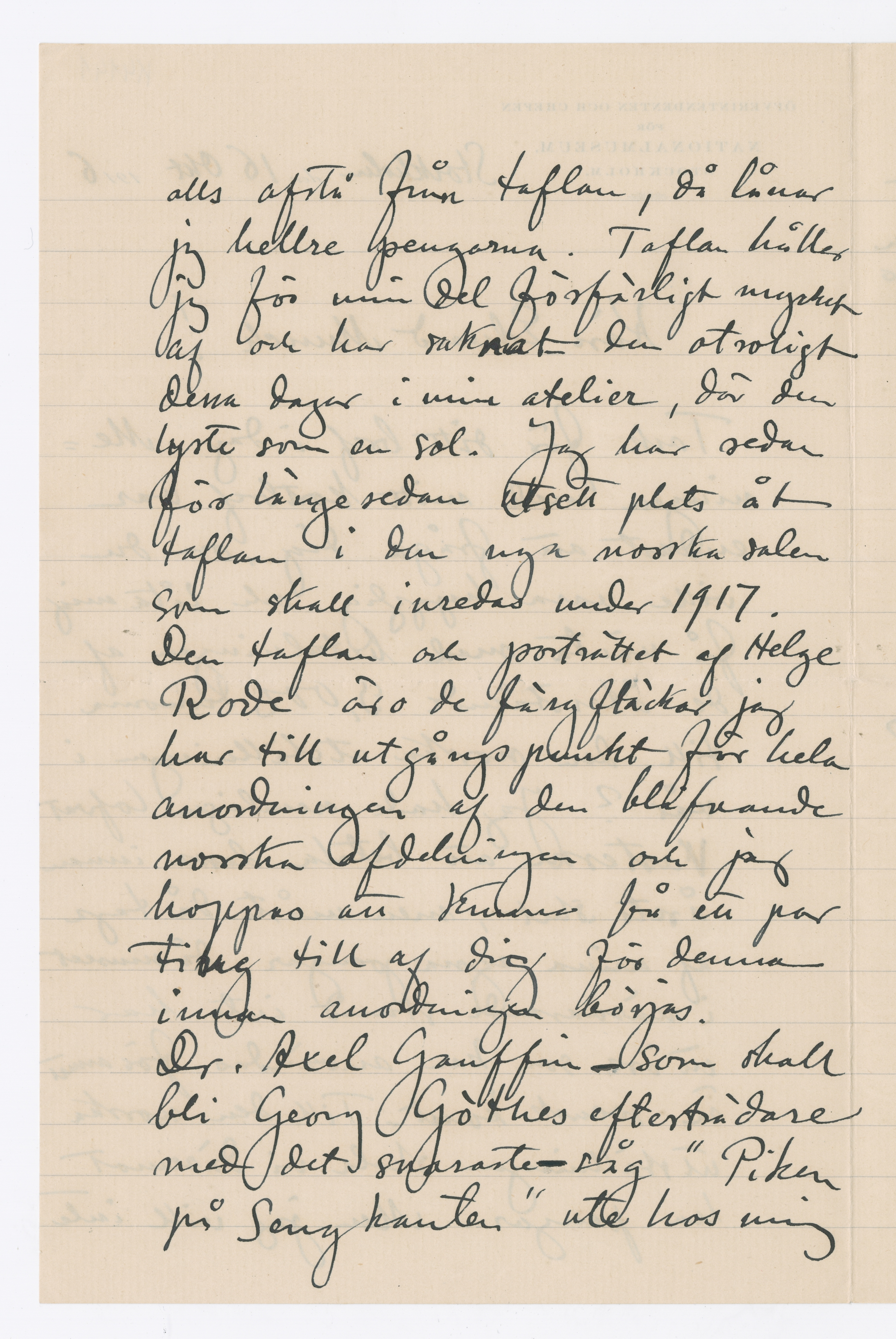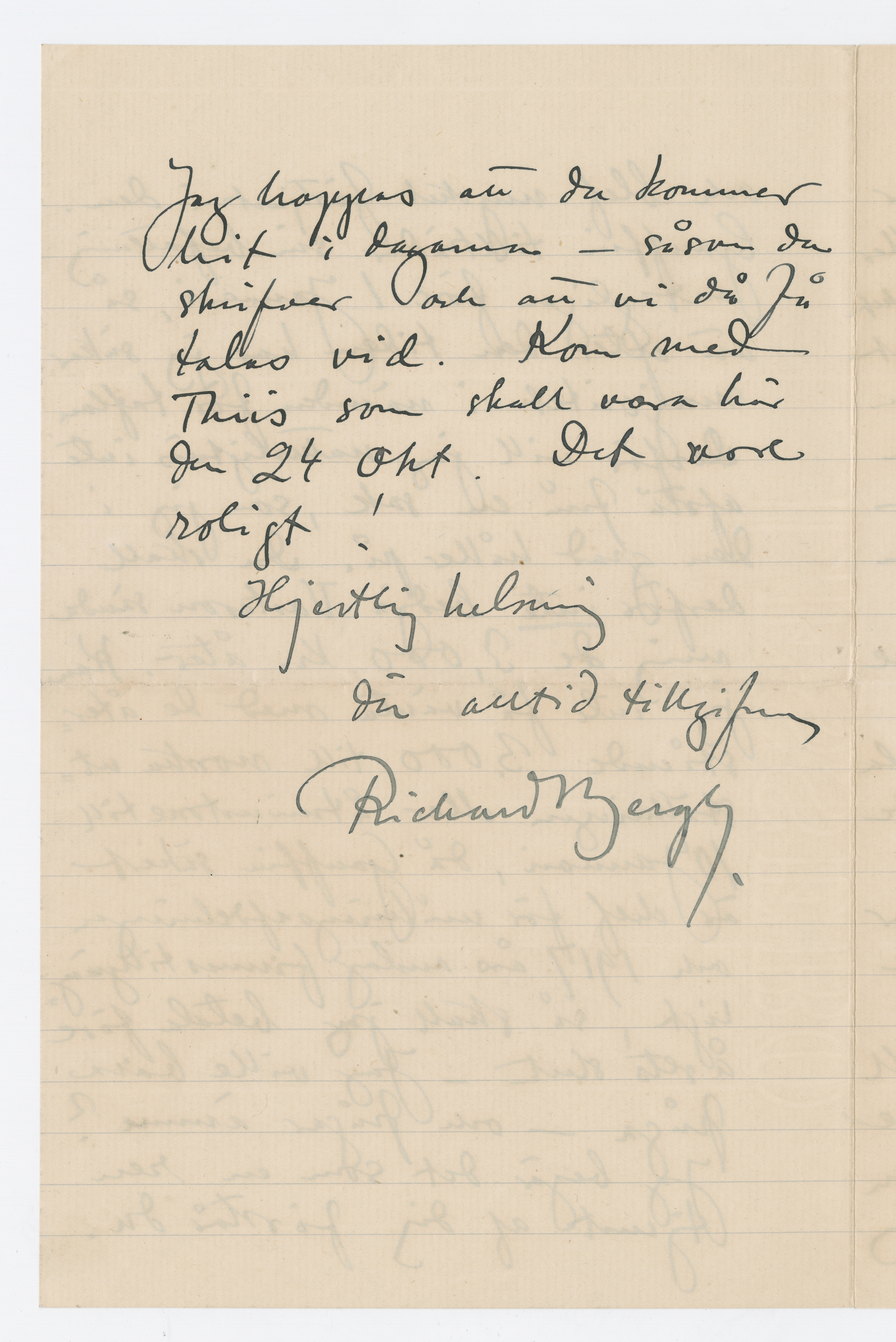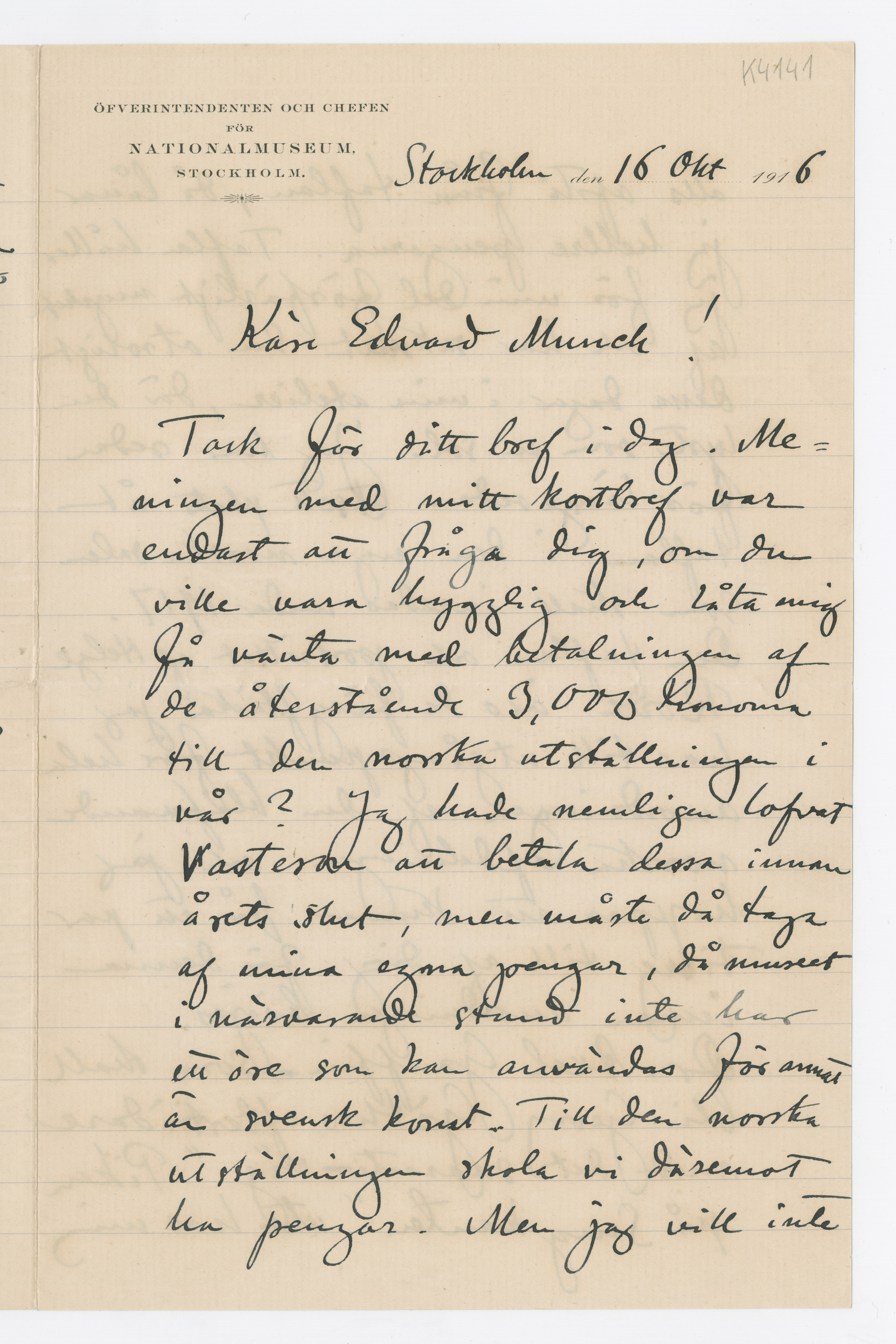 MM K 4141, Munchmuseet. Datert 16.10.1916. Brev fra Richard Bergh, Nationalmuseum Stockholm.