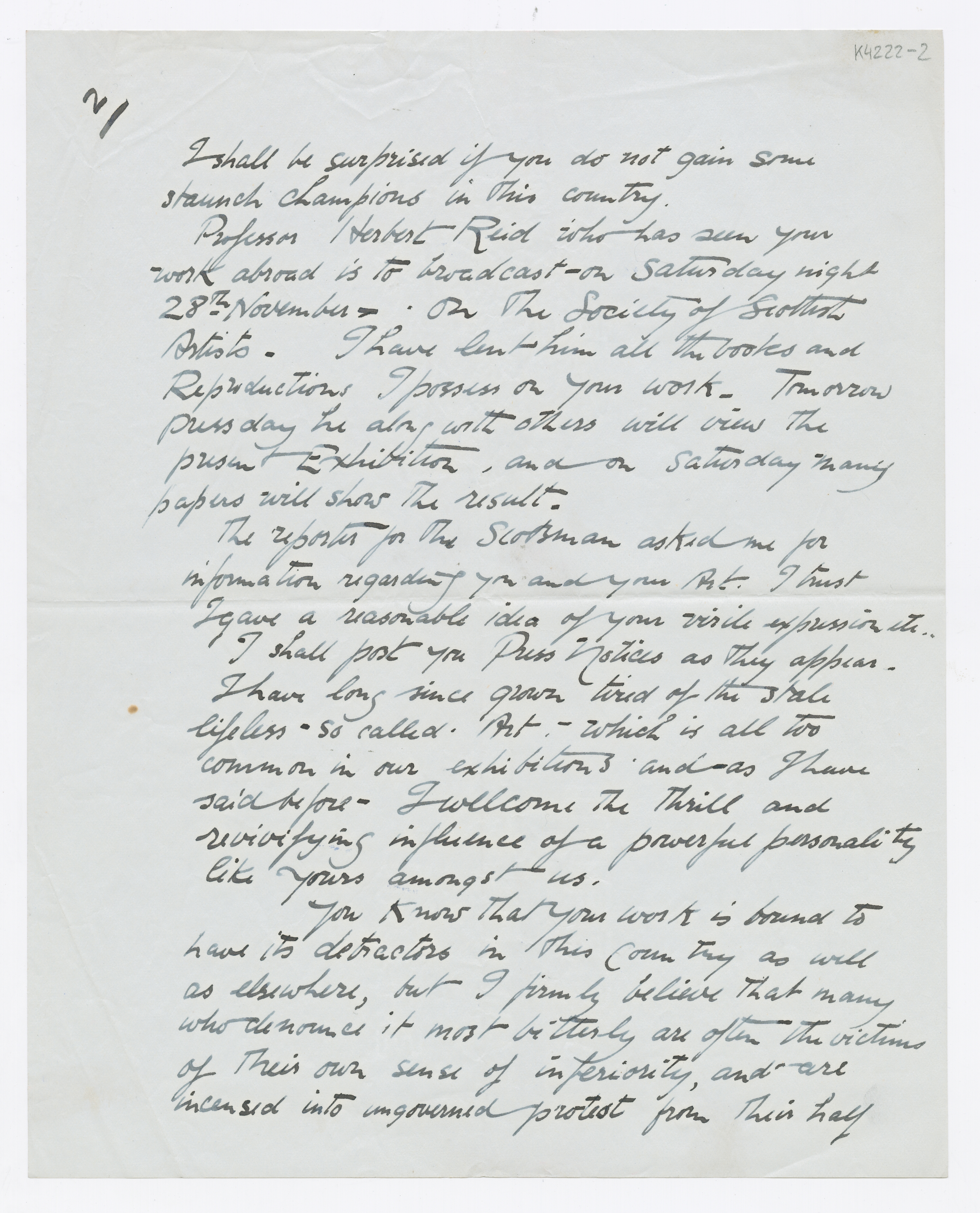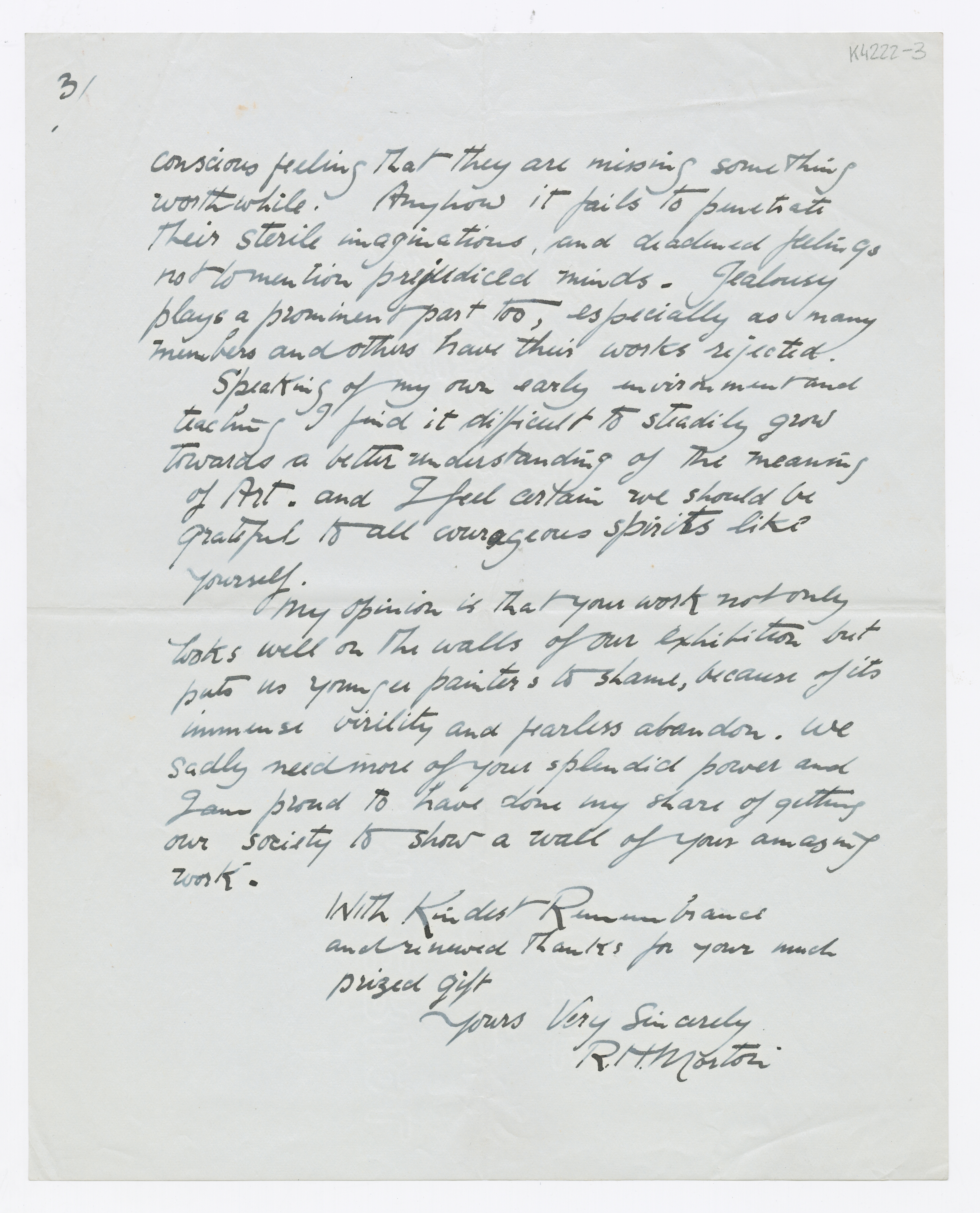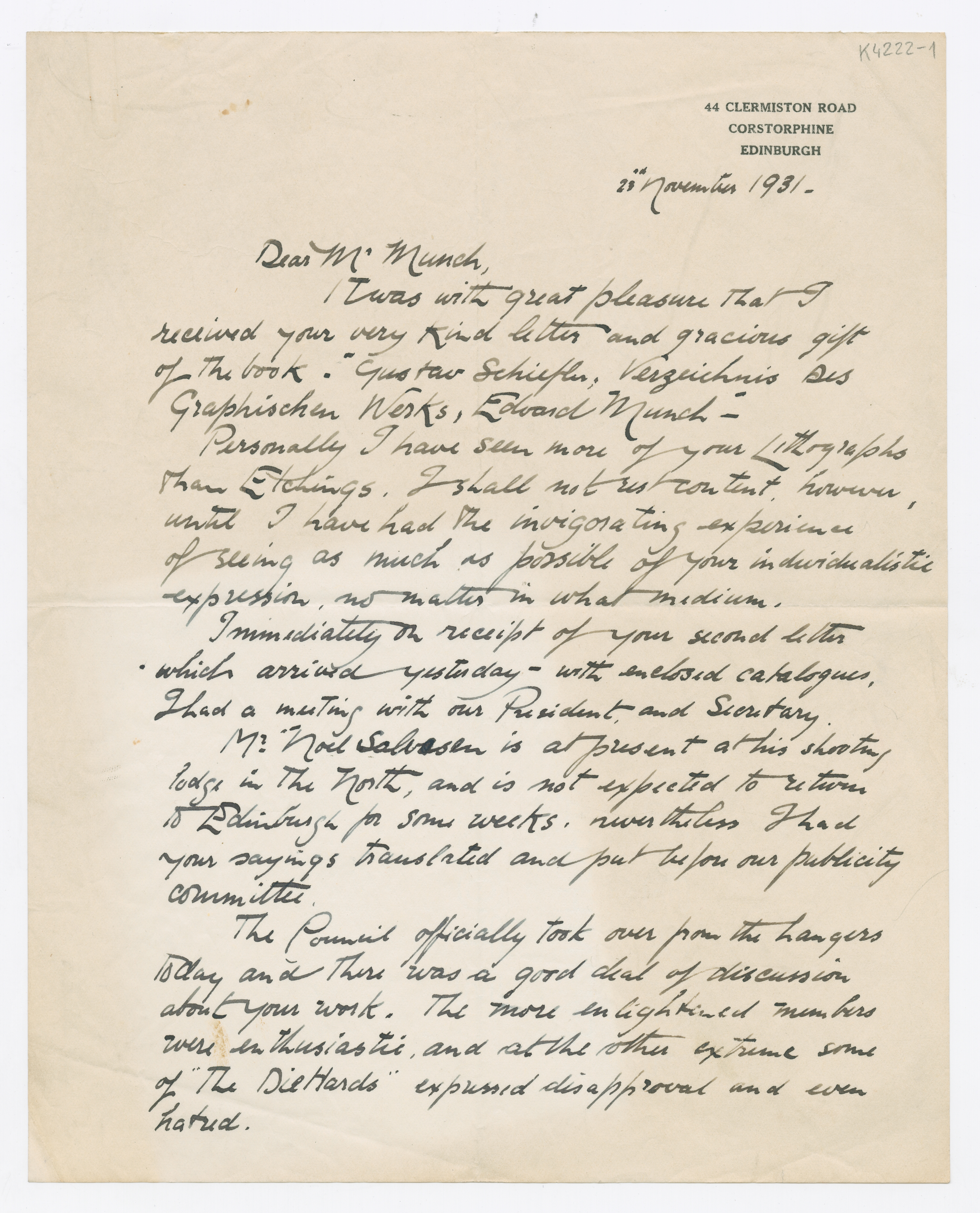 MM K 4222, Munchmuseet. Datert 23.11.1931. Brev fra R. H. Morton, The Society of Scottish Artists.