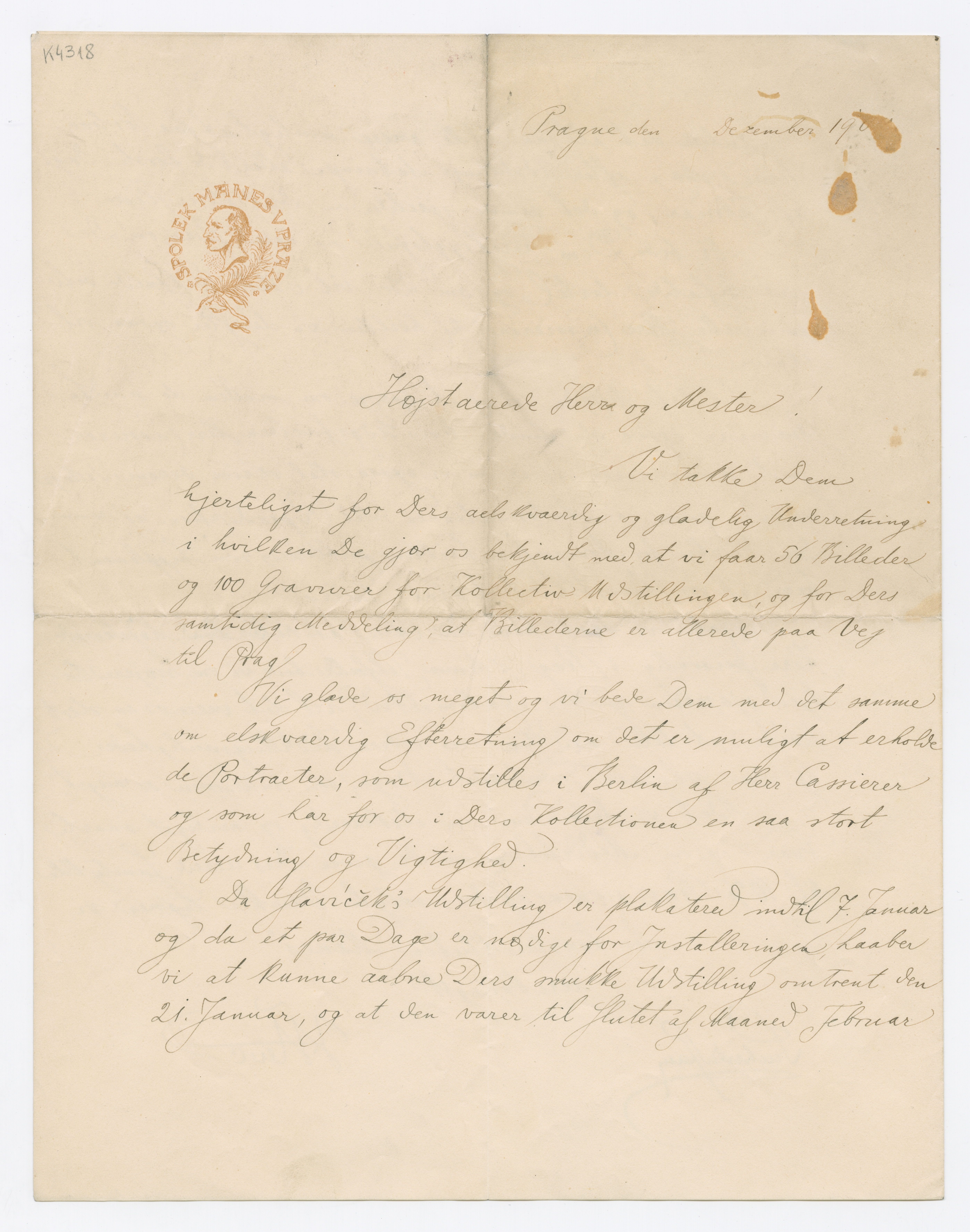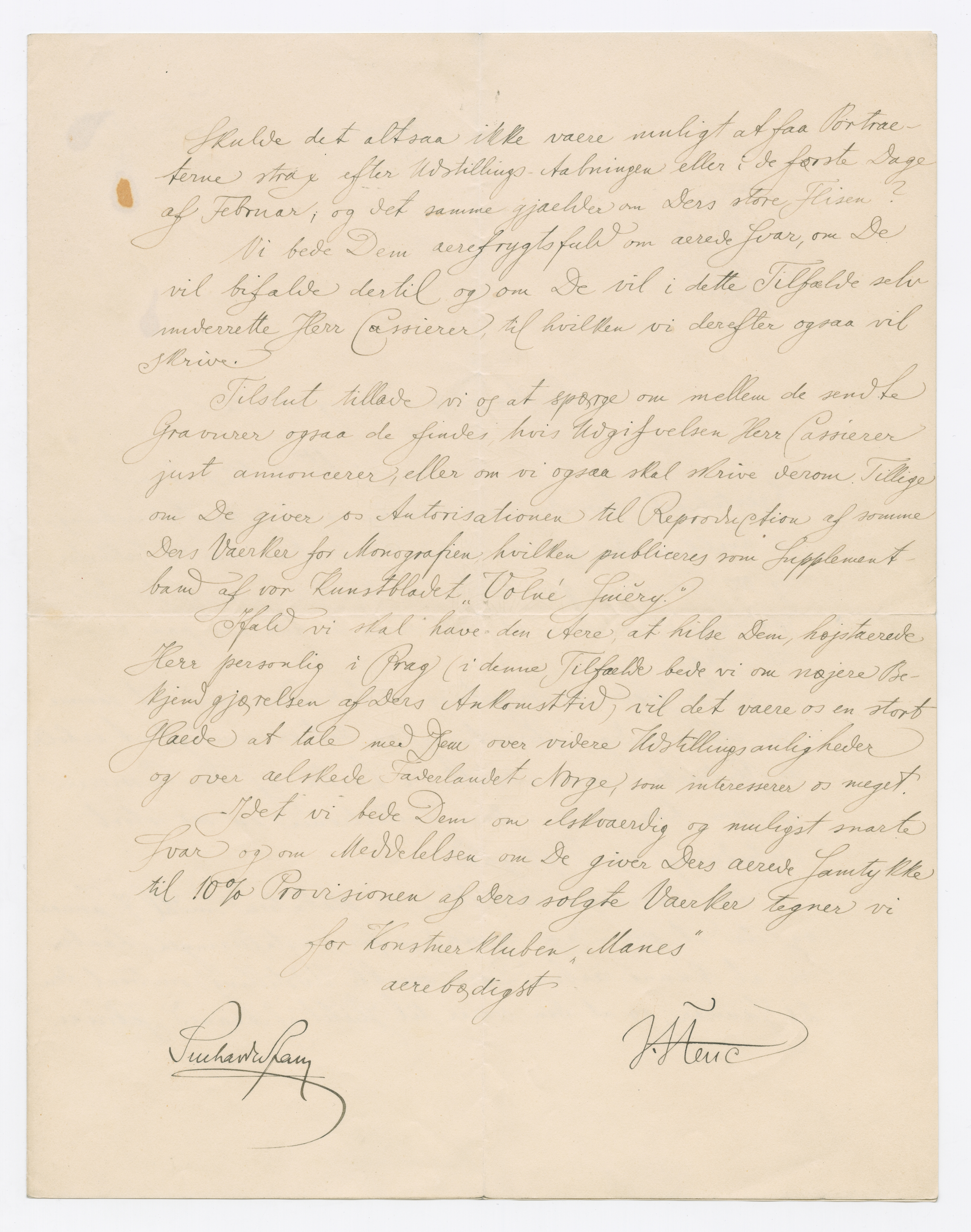 MM K 4318, Munchmuseet. Datert [??].12.1904. Brev fra Kunsterklubben "MANES", J. Heuc, Stanislav Sucharda.