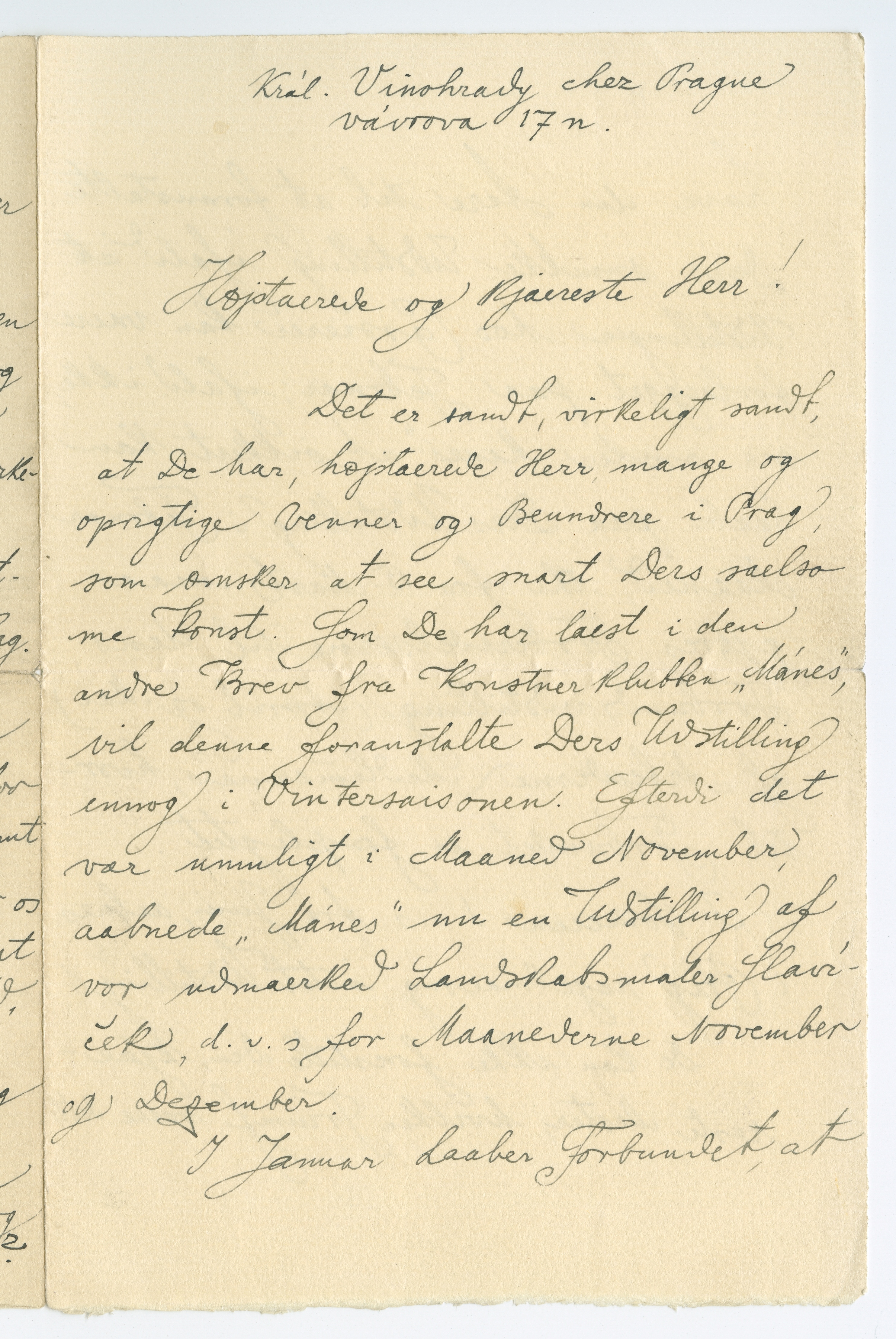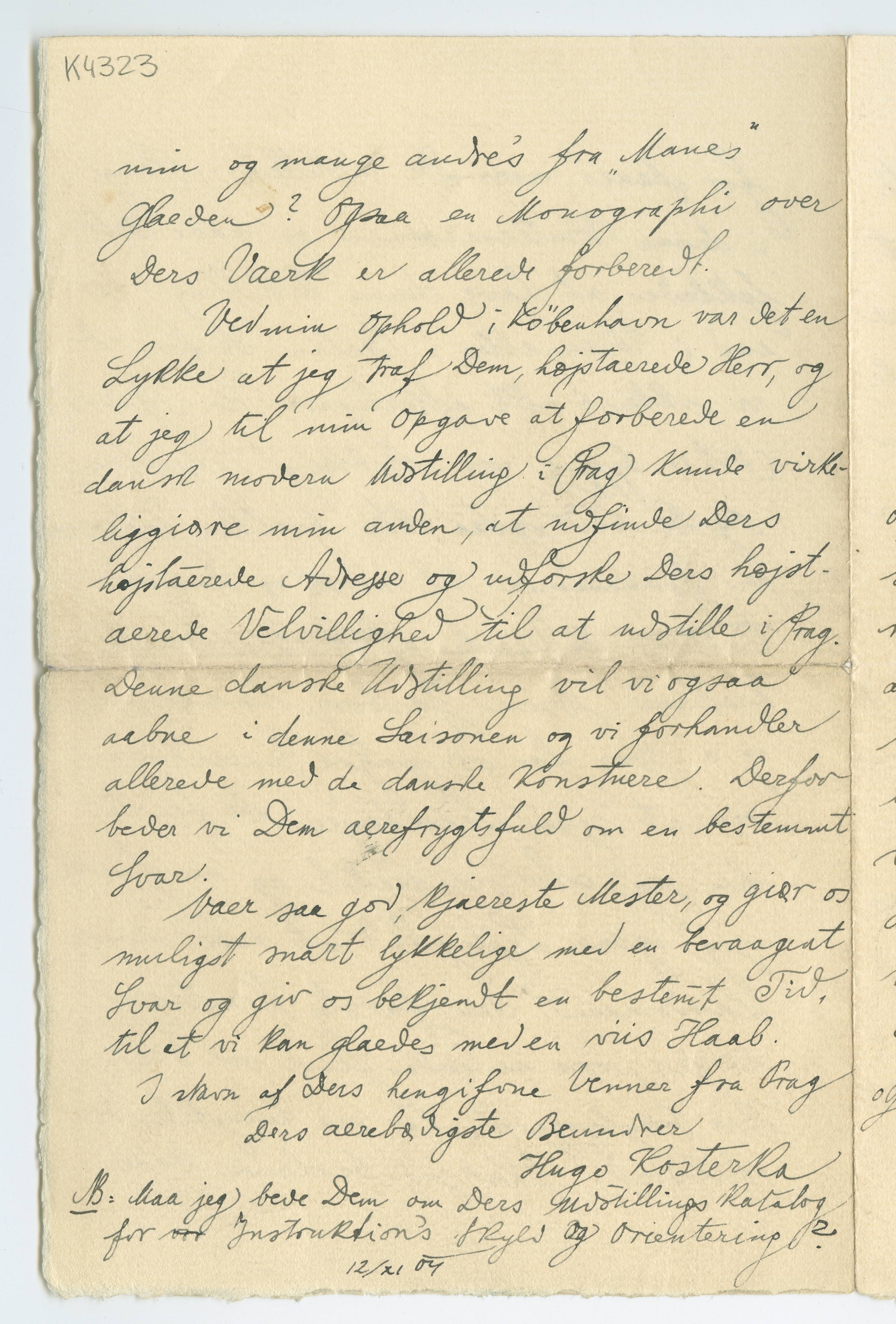 MM K 4323, Munchmuseet. Datert 12.11.1904. Brev fra Hugo Kosterka, Kunsterklubben "MANES".