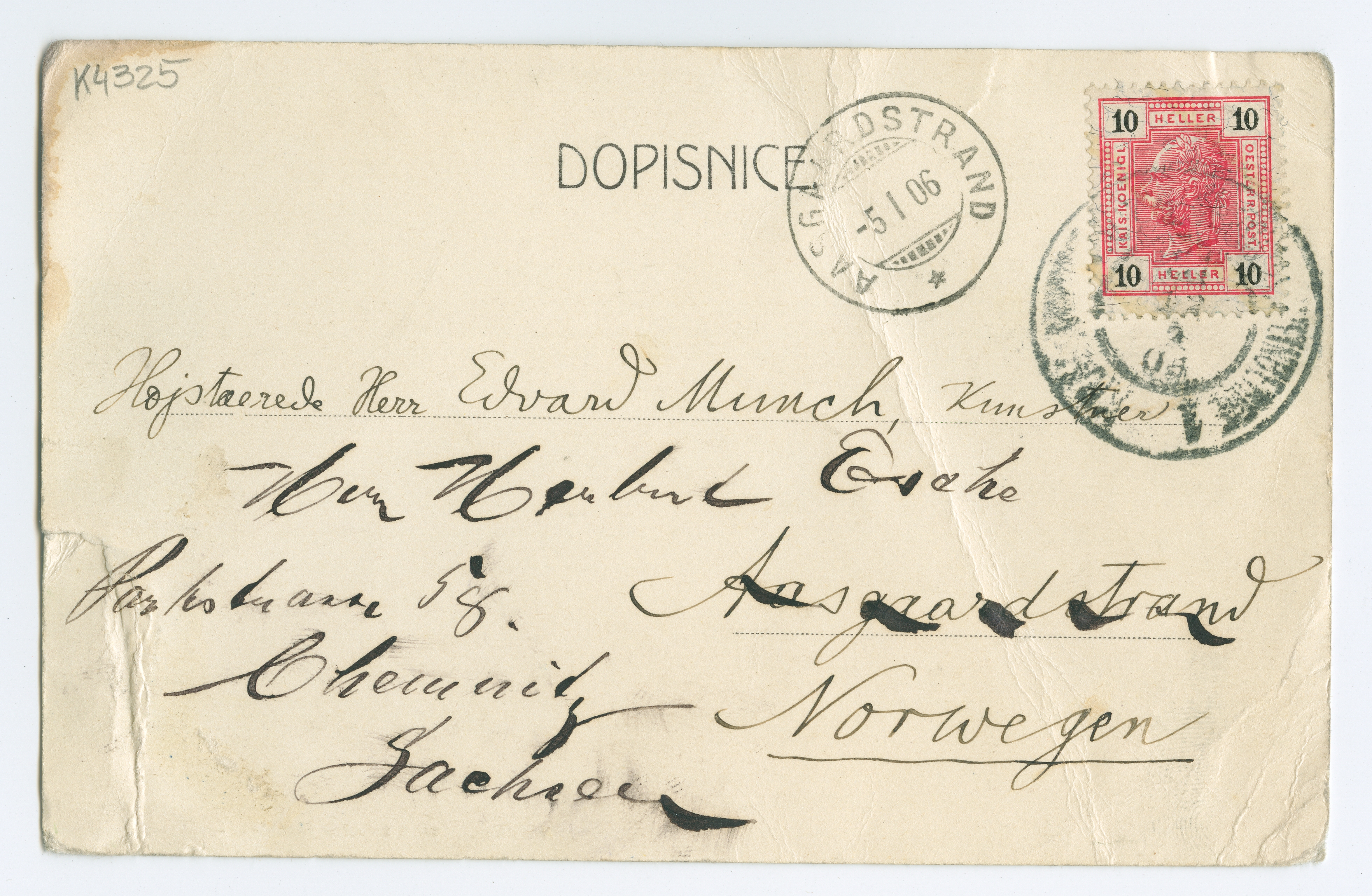 MM K 4325, Munchmuseet. Datert 05.01.1906. Brev fra Hugo Kosterka, Kunsterklubben "MANES".
