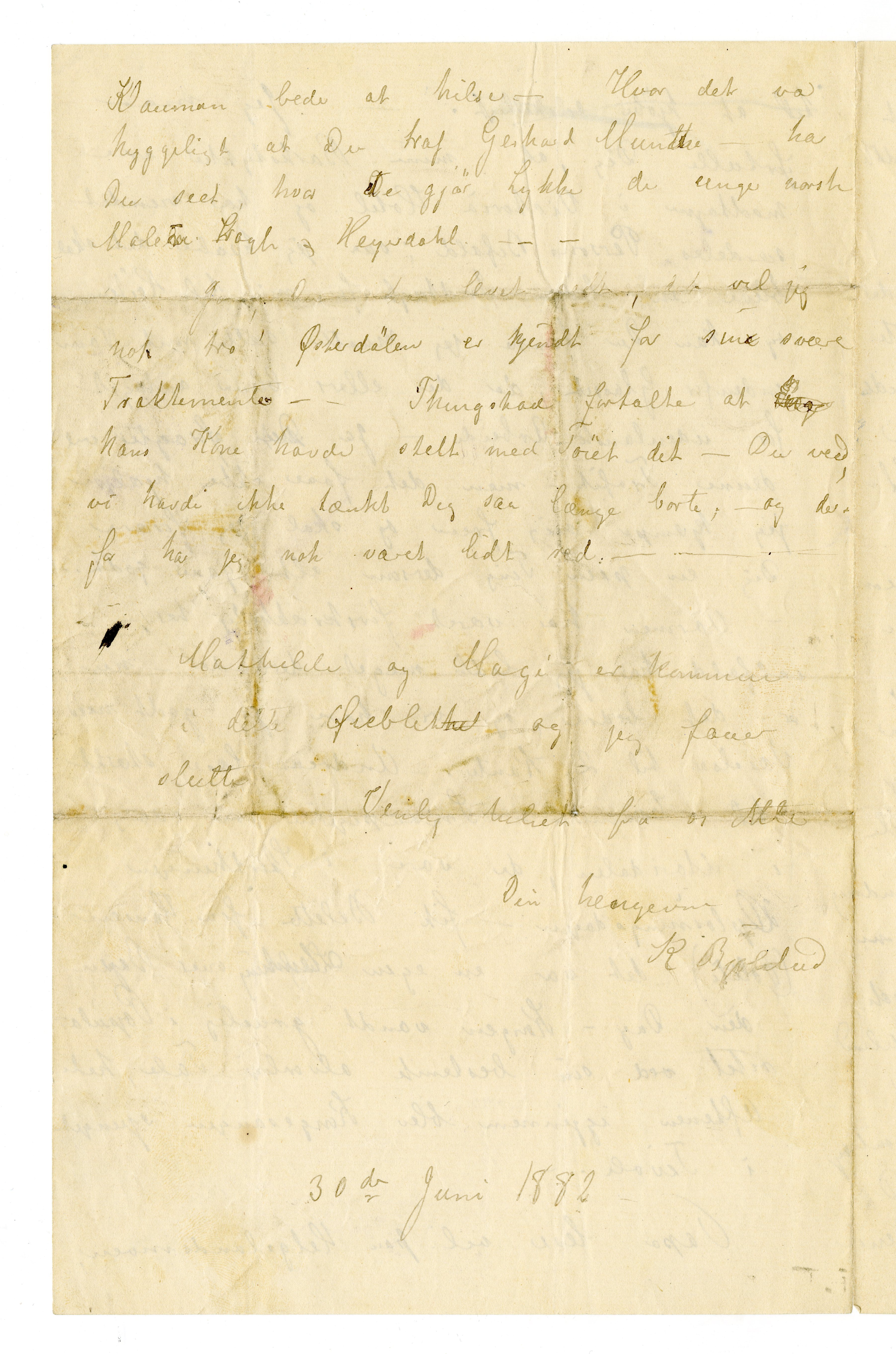 MM K 4363, Munchmuseet. Datert 30.06.1882. Brev fra Karen Bjølstad.
