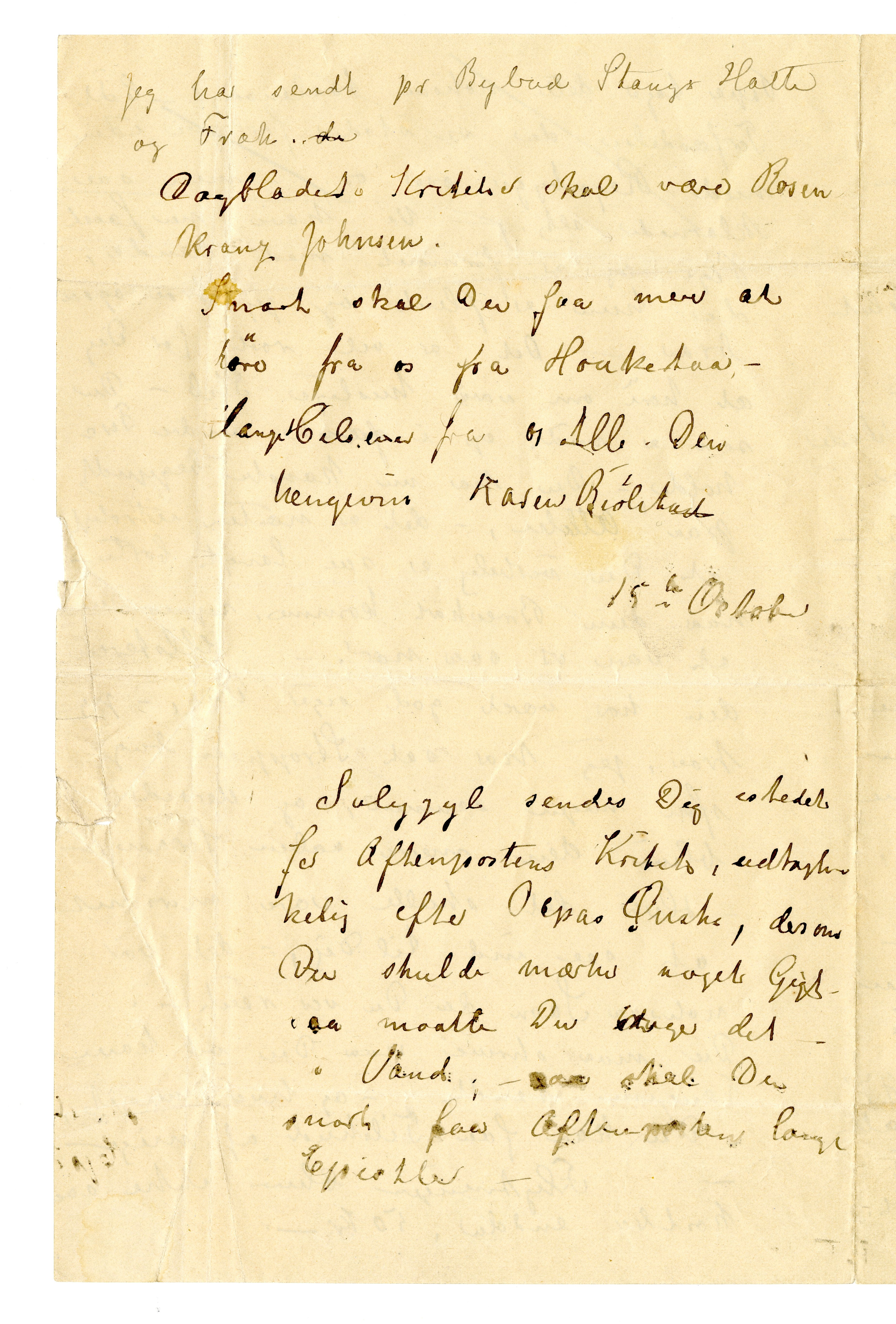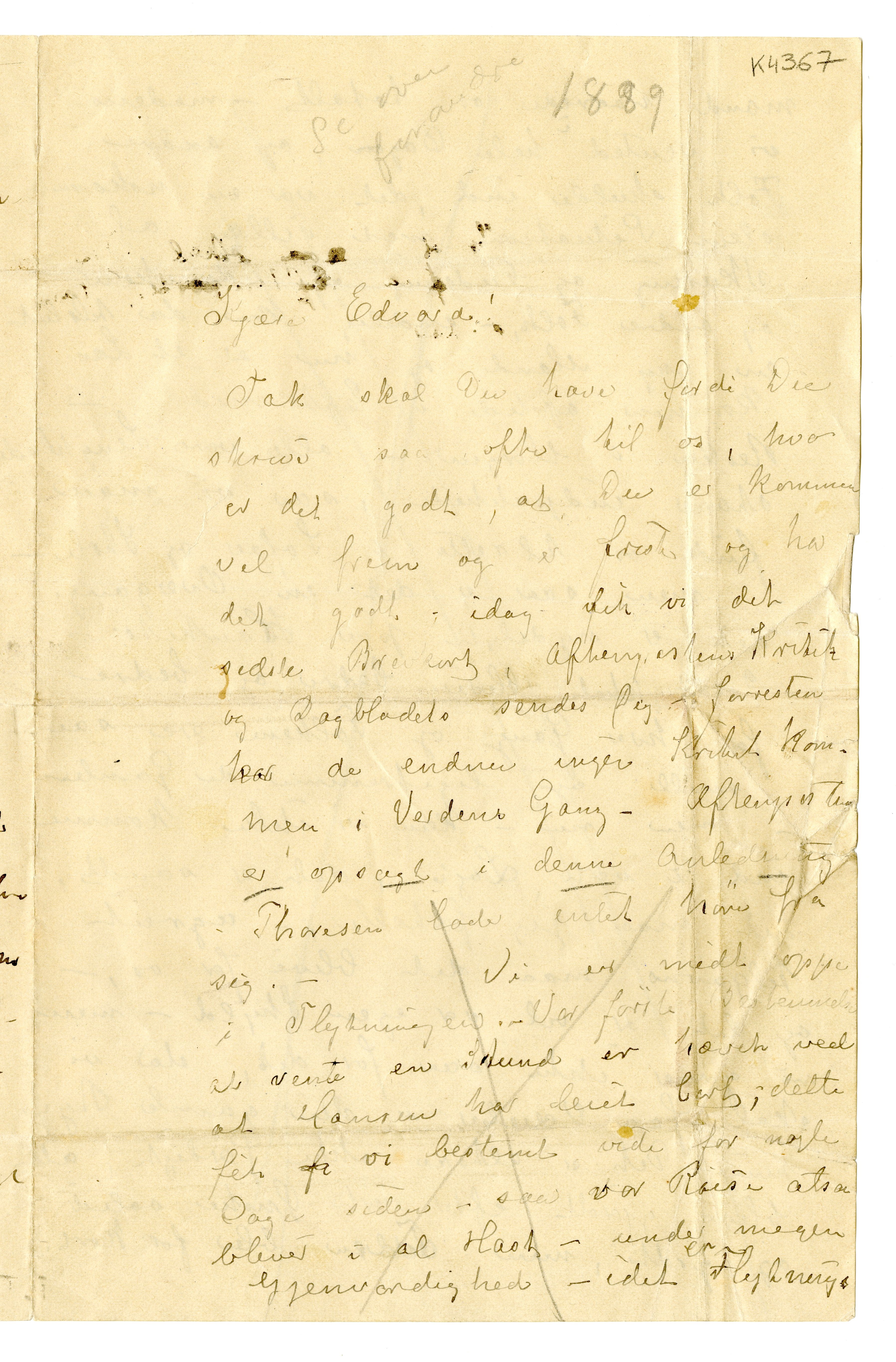 MM K 4367, Munchmuseet. Datert 15.10.1889. Brev fra Karen Bjølstad.