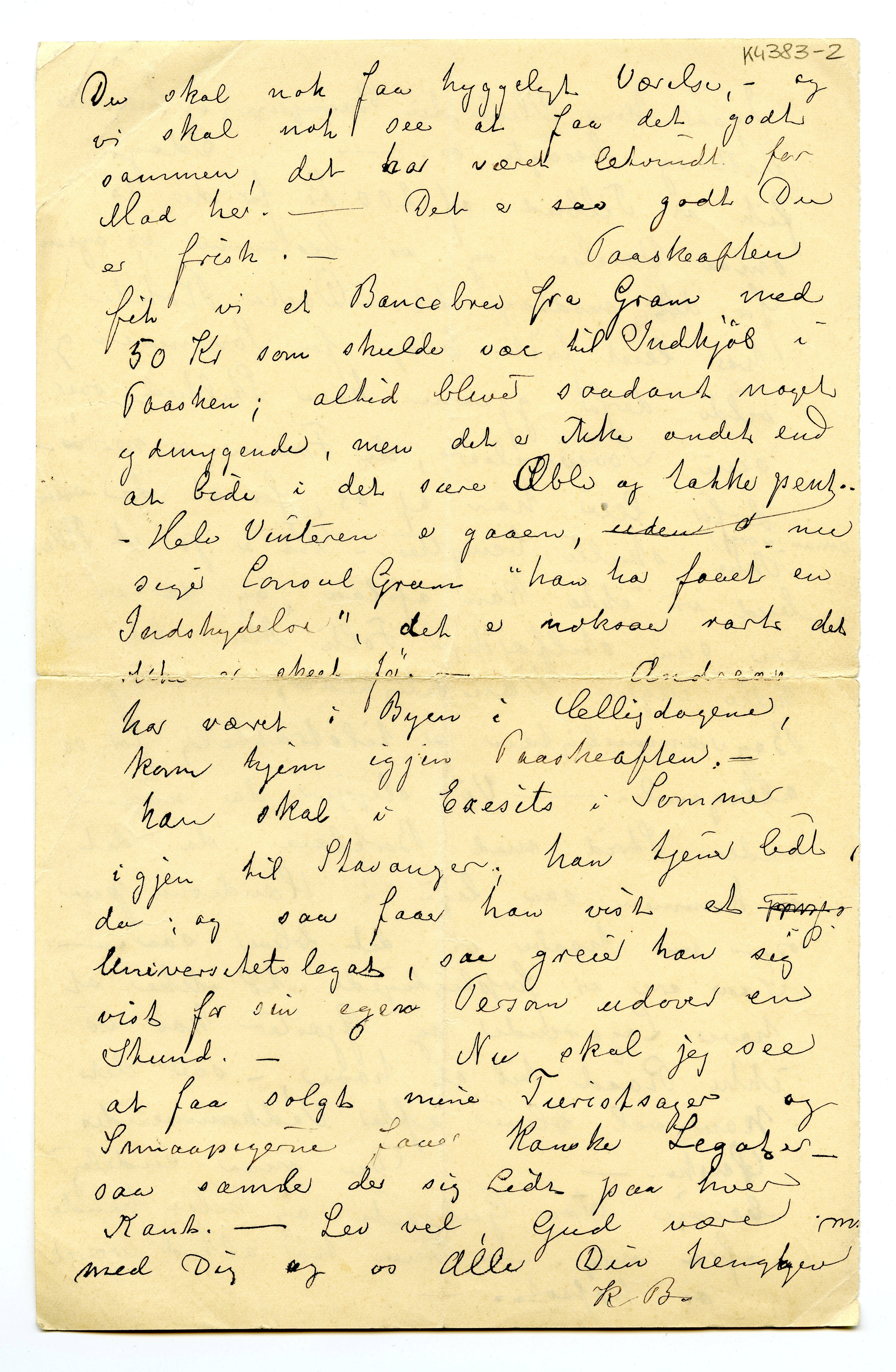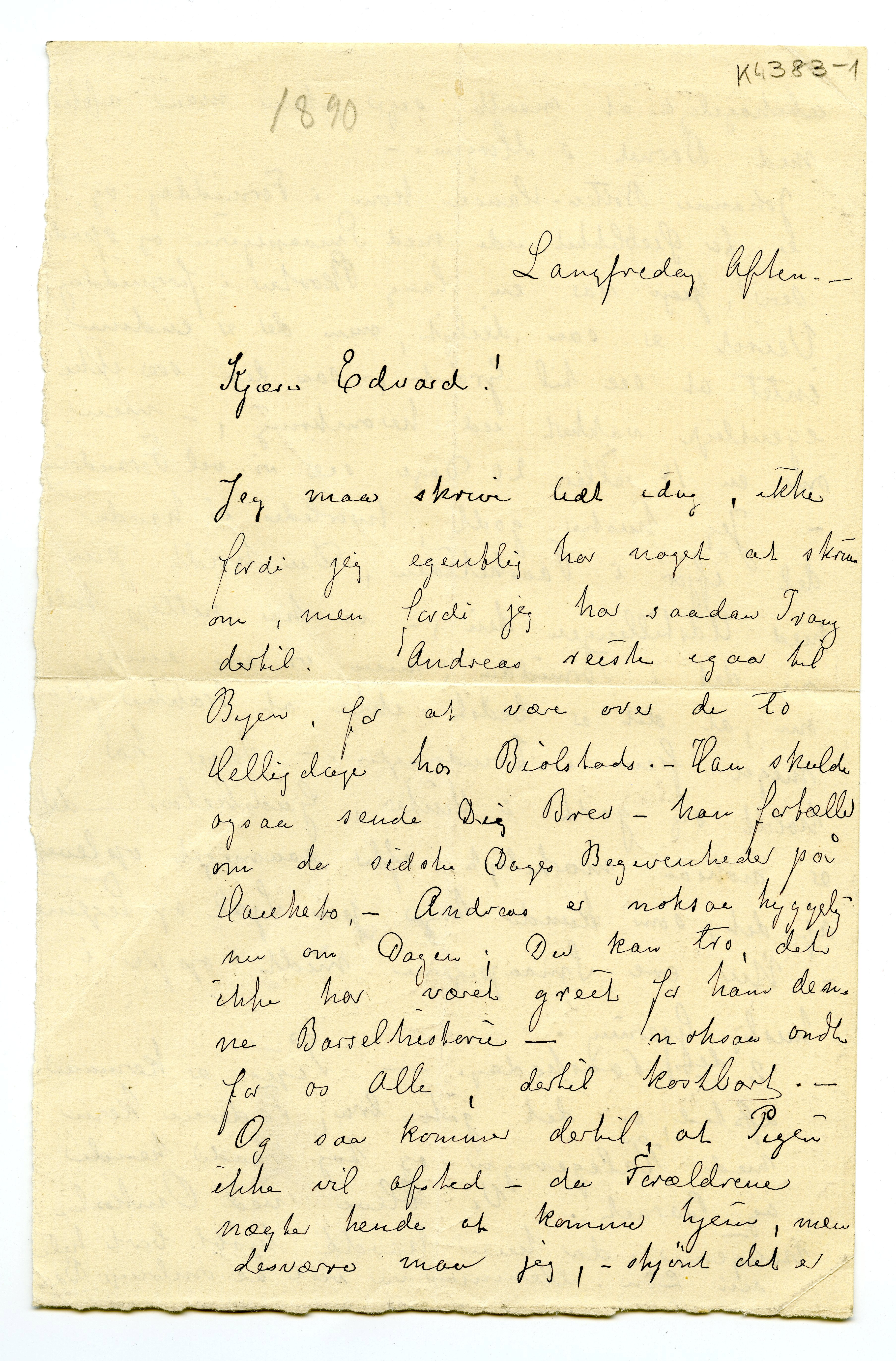 MM K 4383, Munchmuseet. Datert 04.04.1890. Brev fra Karen Bjølstad.
