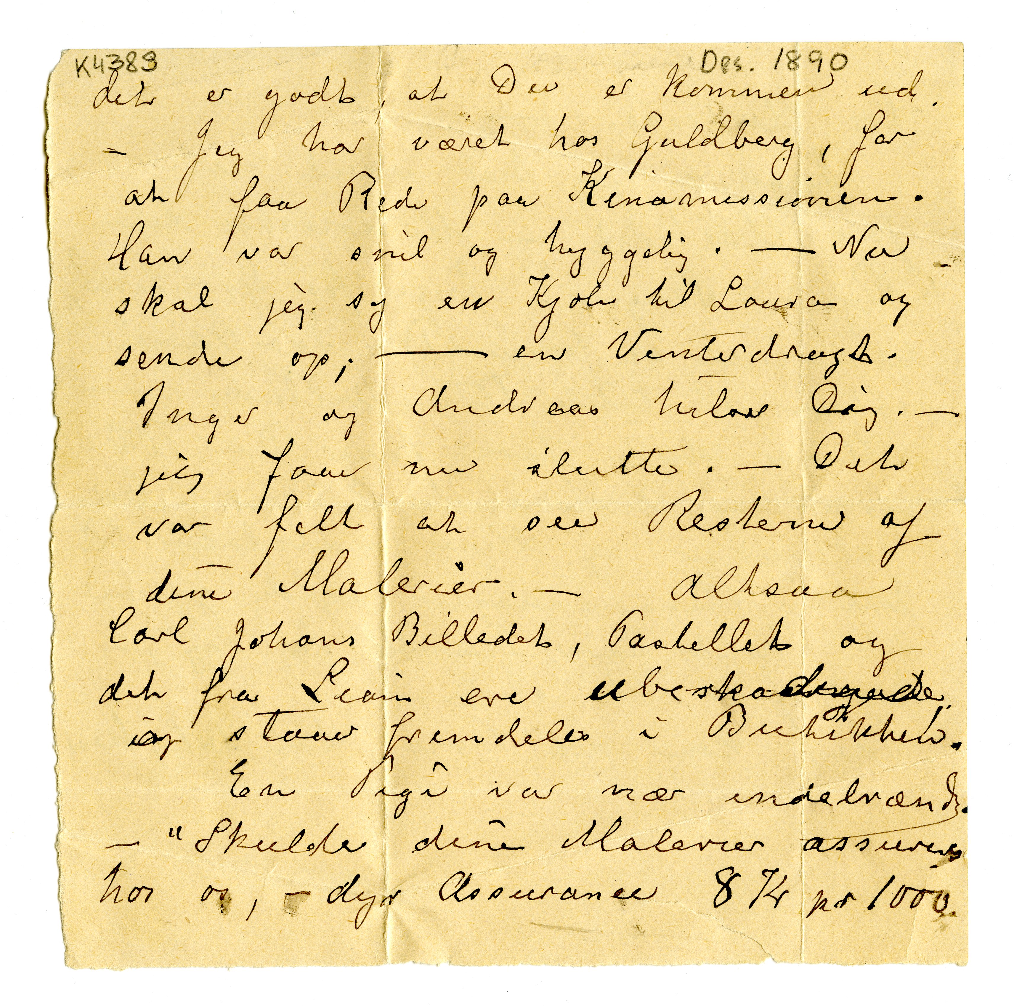 MM K 4389, Munchmuseet. Datert [??].12.1890. Brev fra Karen Bjølstad.