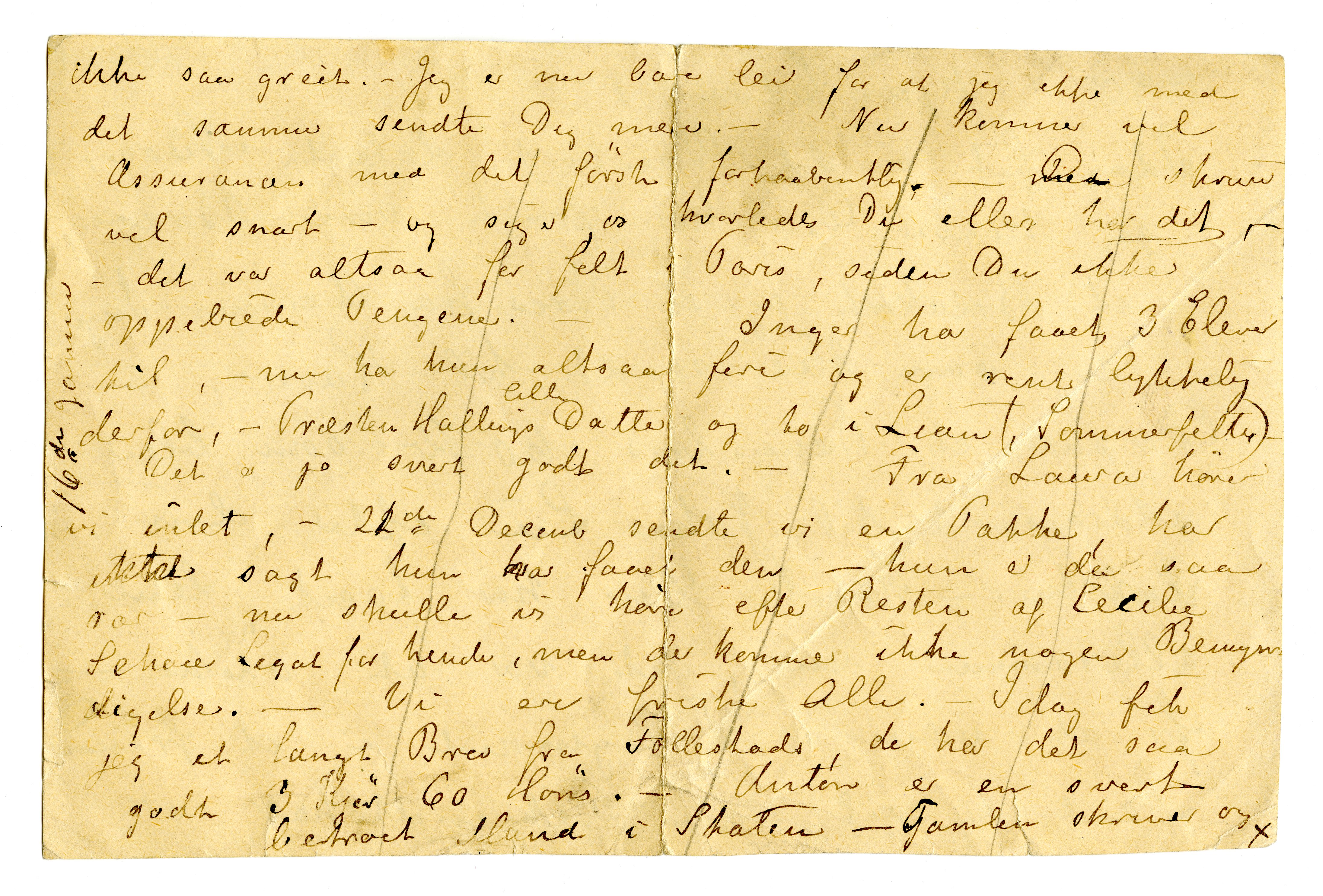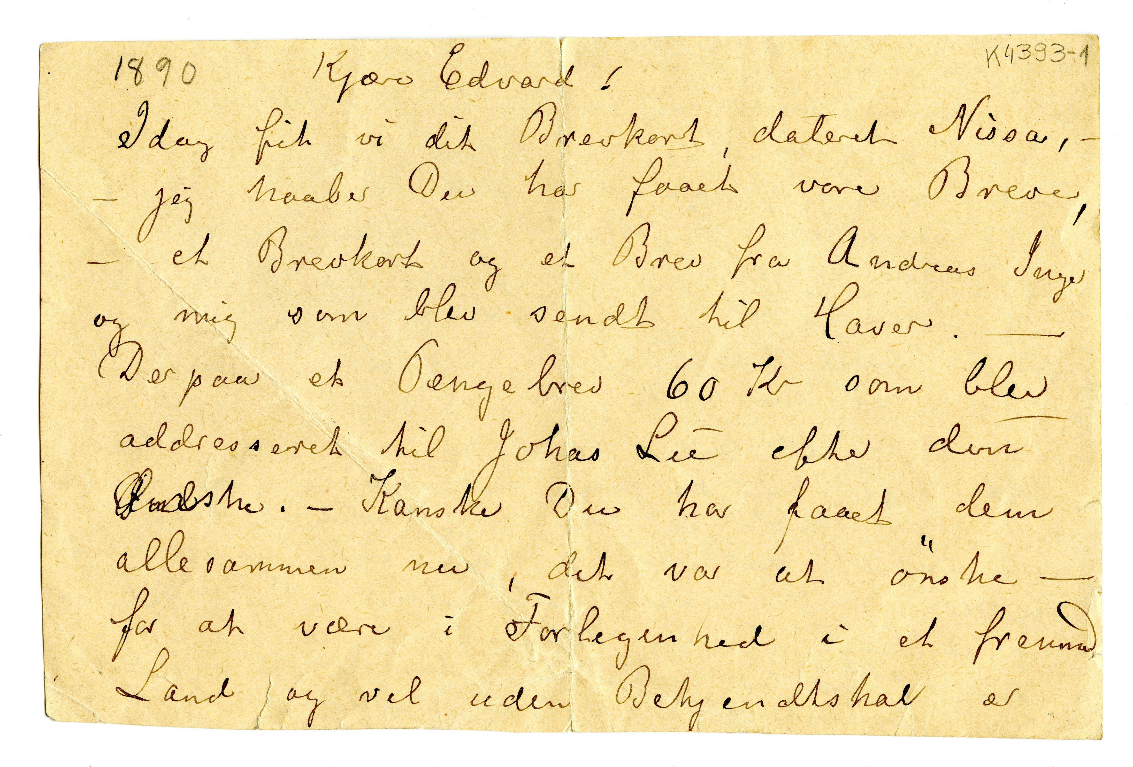 MM K 4393, Munchmuseet. Datert 16.01.1891. Brev fra Karen Bjølstad.