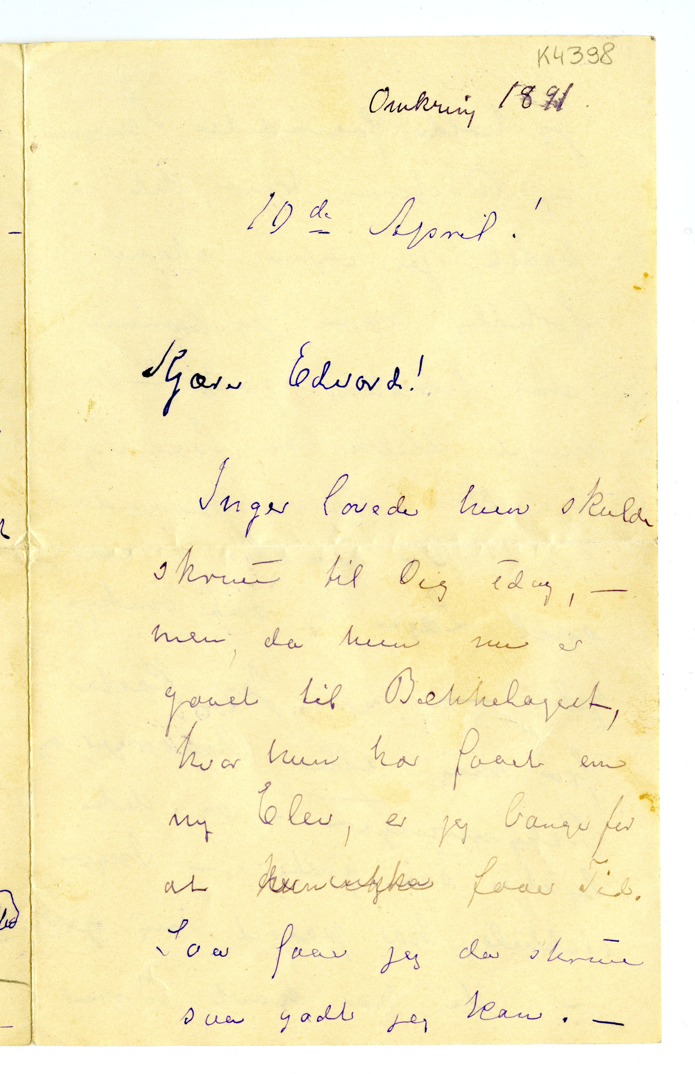 MM K 4398, Munchmuseet. Datert 10.04.1891. Brev fra Karen Bjølstad.