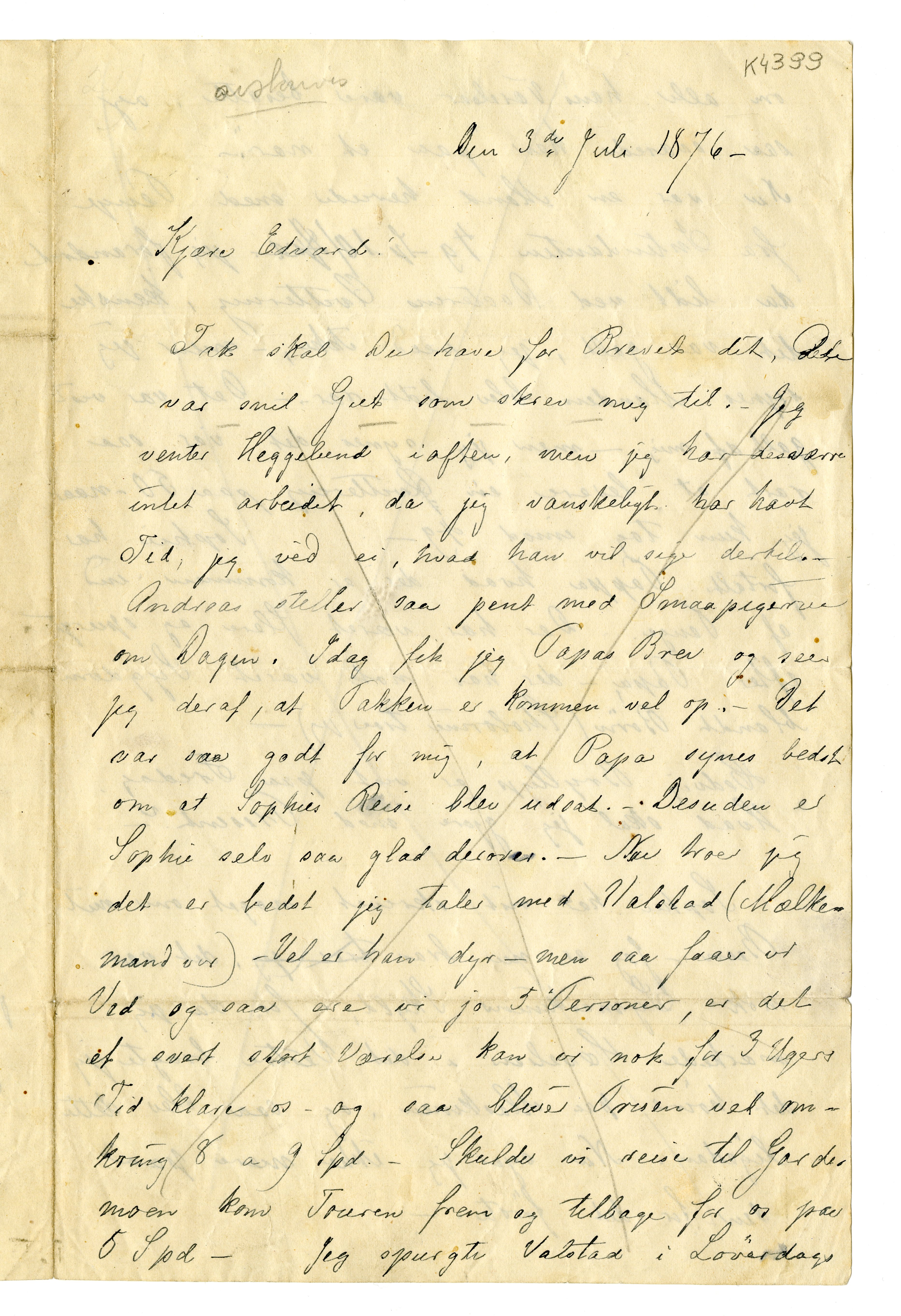 MM K 4399, Munchmuseet. Datert 03.07.1876. Brev fra Karen Bjølstad.
