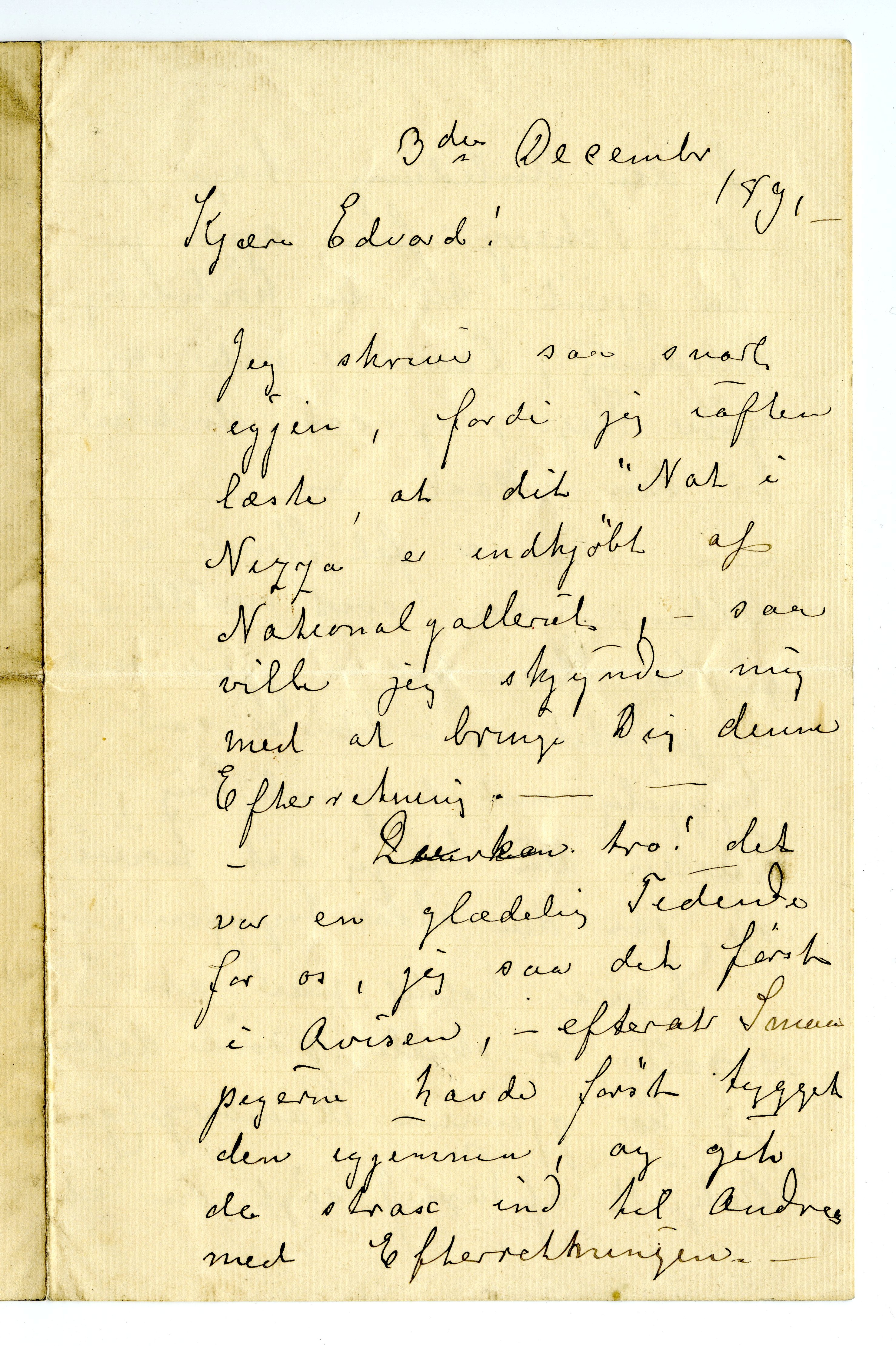 MM K 4402, Munchmuseet. Datert 03.12.1891. Brev fra Karen Bjølstad.