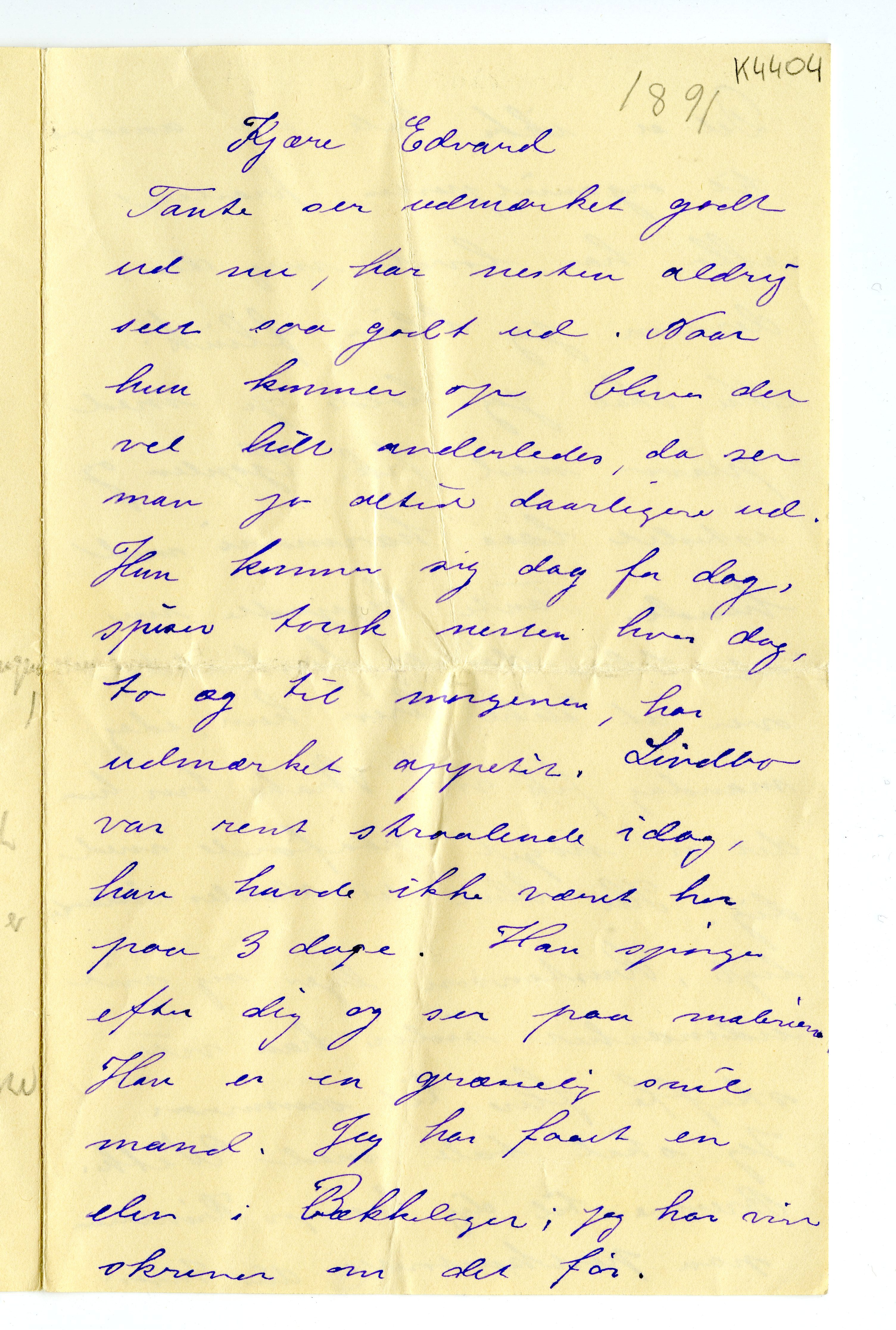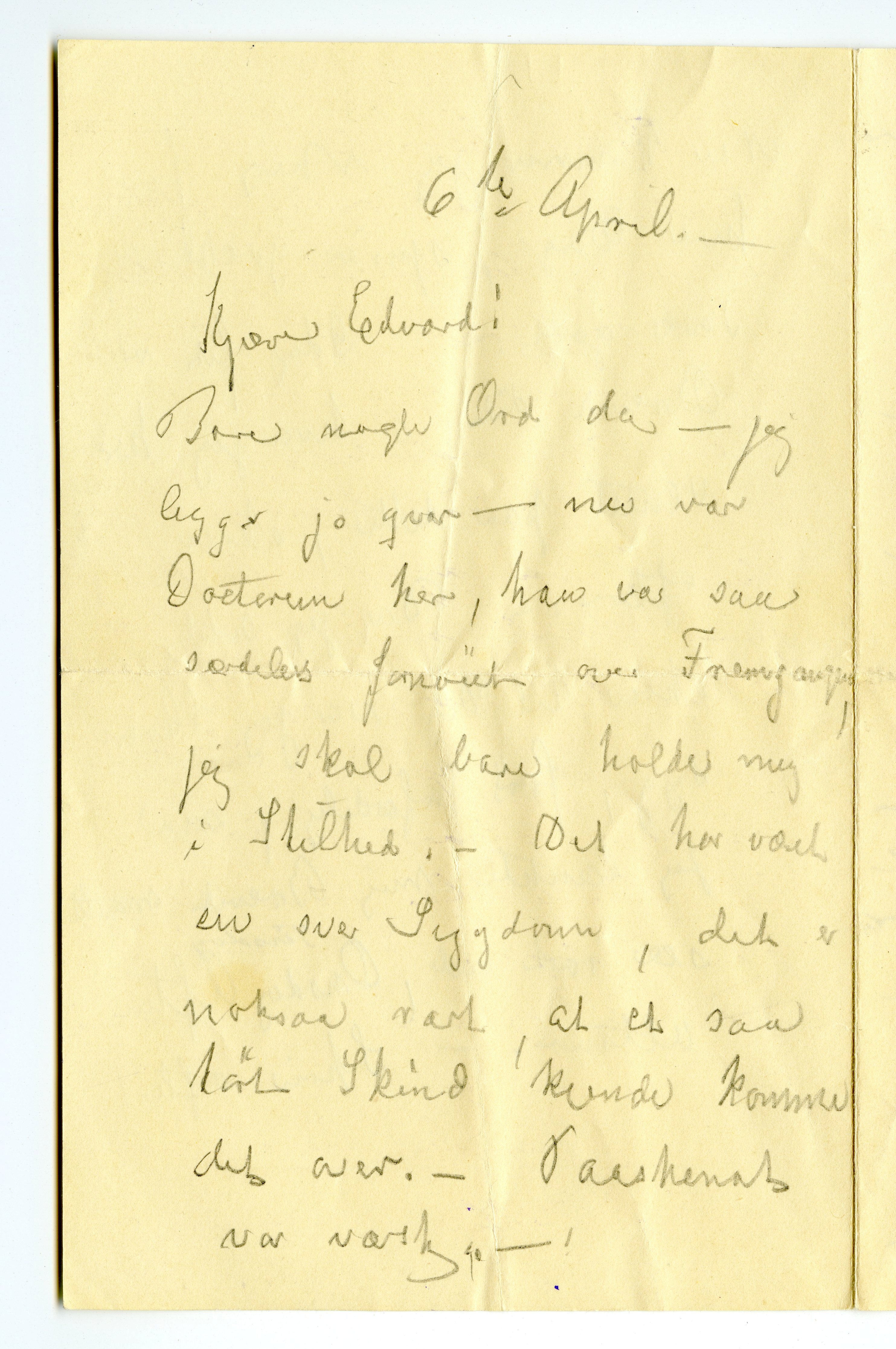 MM K 4404, Munchmuseet. Datert 06.04.1891. Brev fra Karen Bjølstad, Inger Munch.
