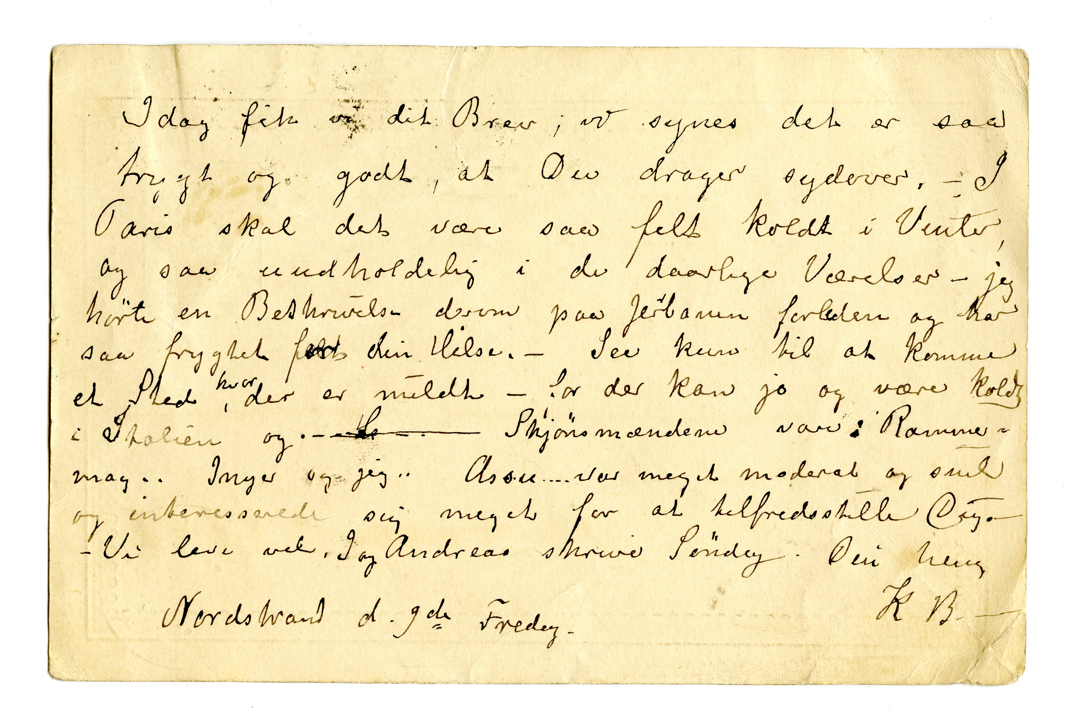 MM K 4409, Munchmuseet. Datert 09.01.1891. Brev fra Karen Bjølstad.