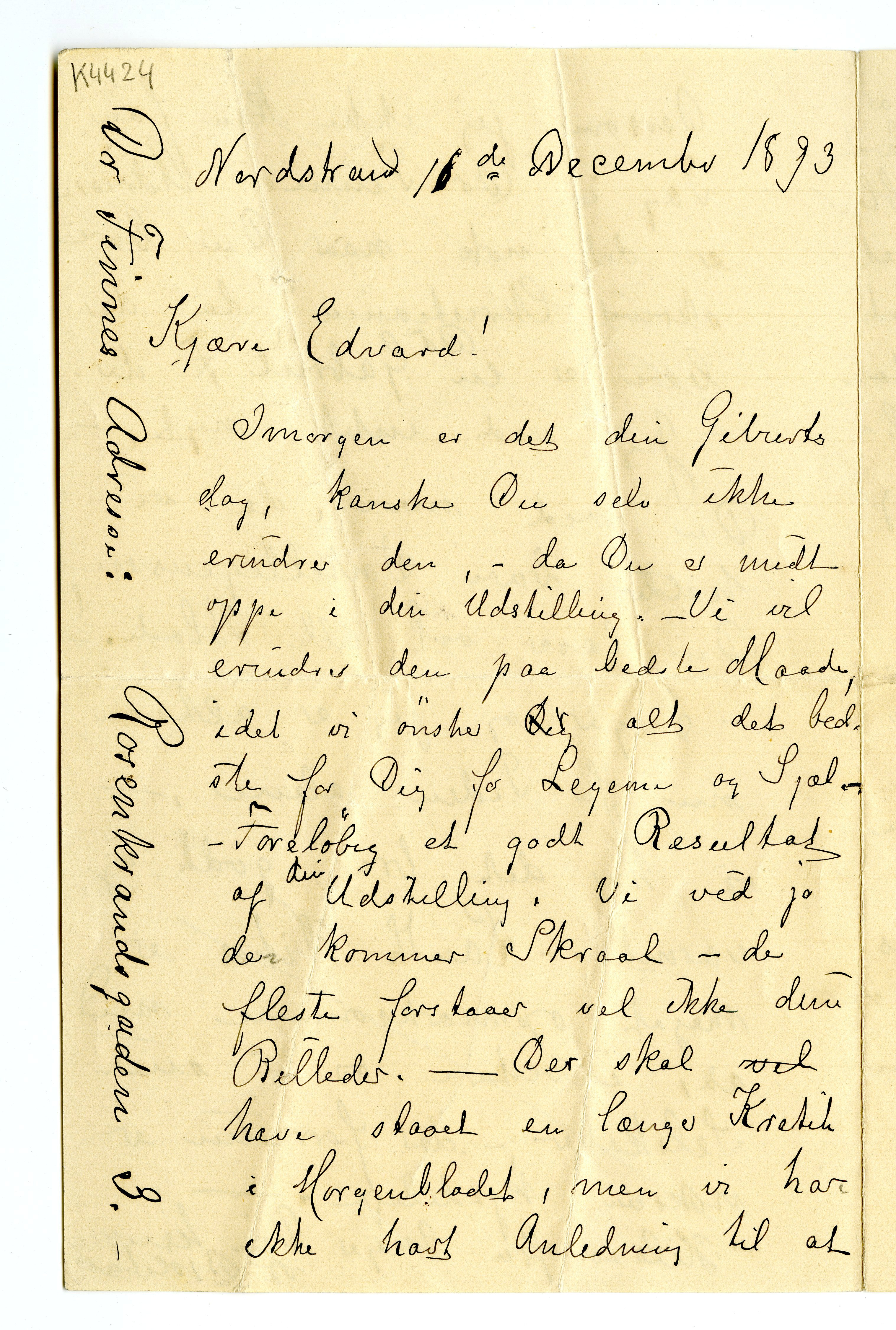MM K 4424, Munchmuseet. Datert 11.12.1893. Brev fra Karen Bjølstad.