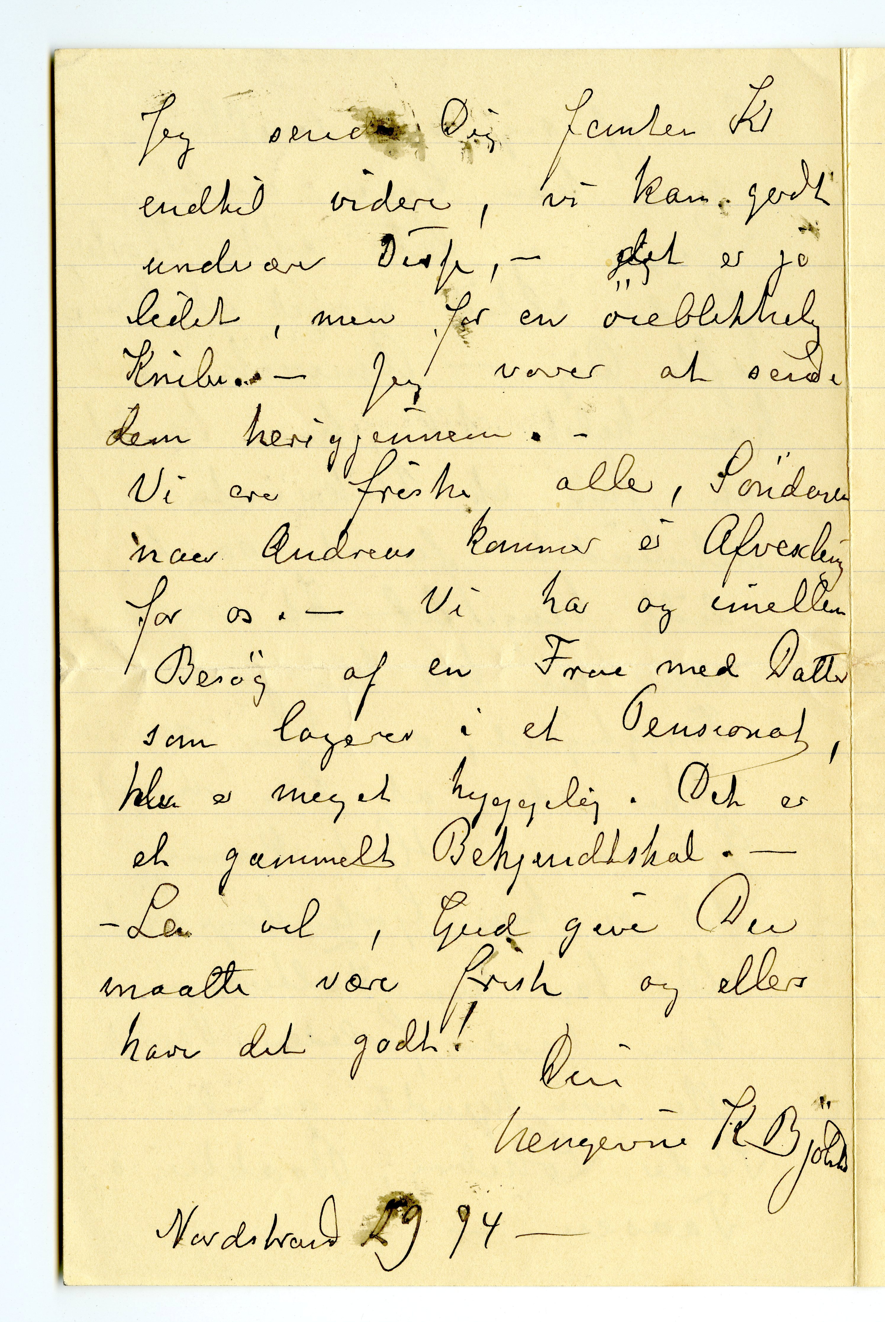 MM K 4431, Munchmuseet. Datert 01.09.1894. Brev fra Karen Bjølstad.