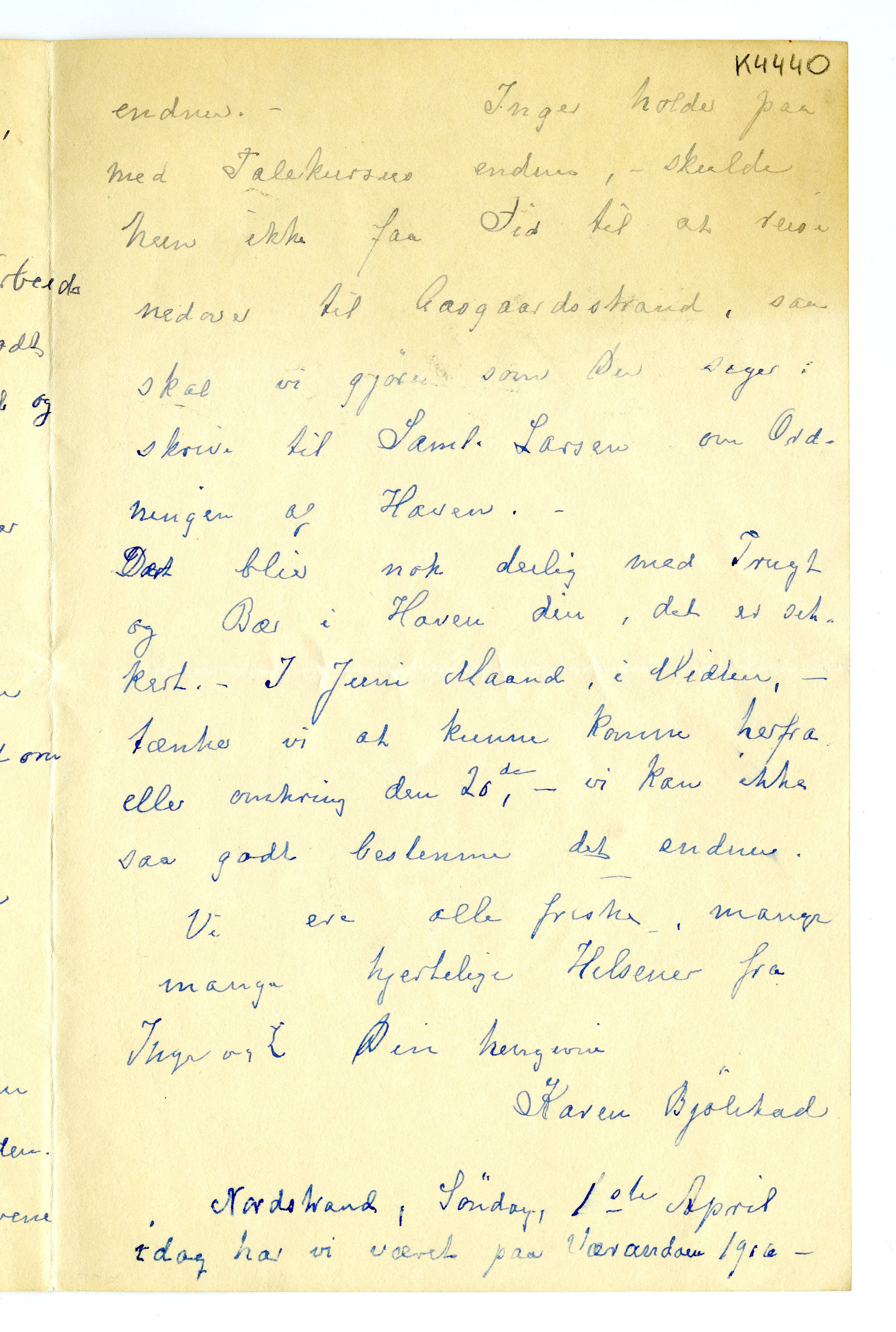 MM K 4440, Munchmuseet. Datert 01.04.1906. Brev fra Karen Bjølstad.