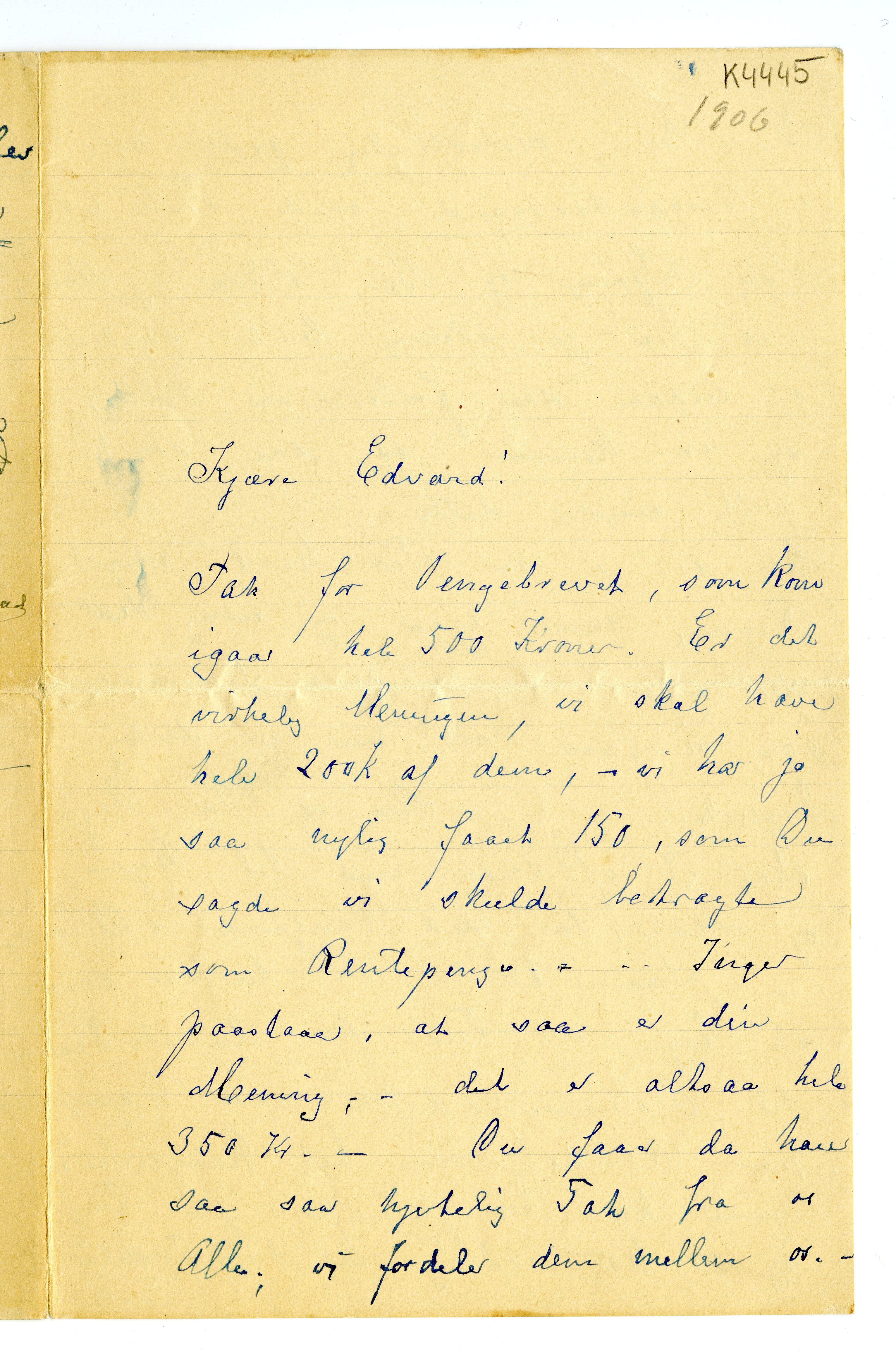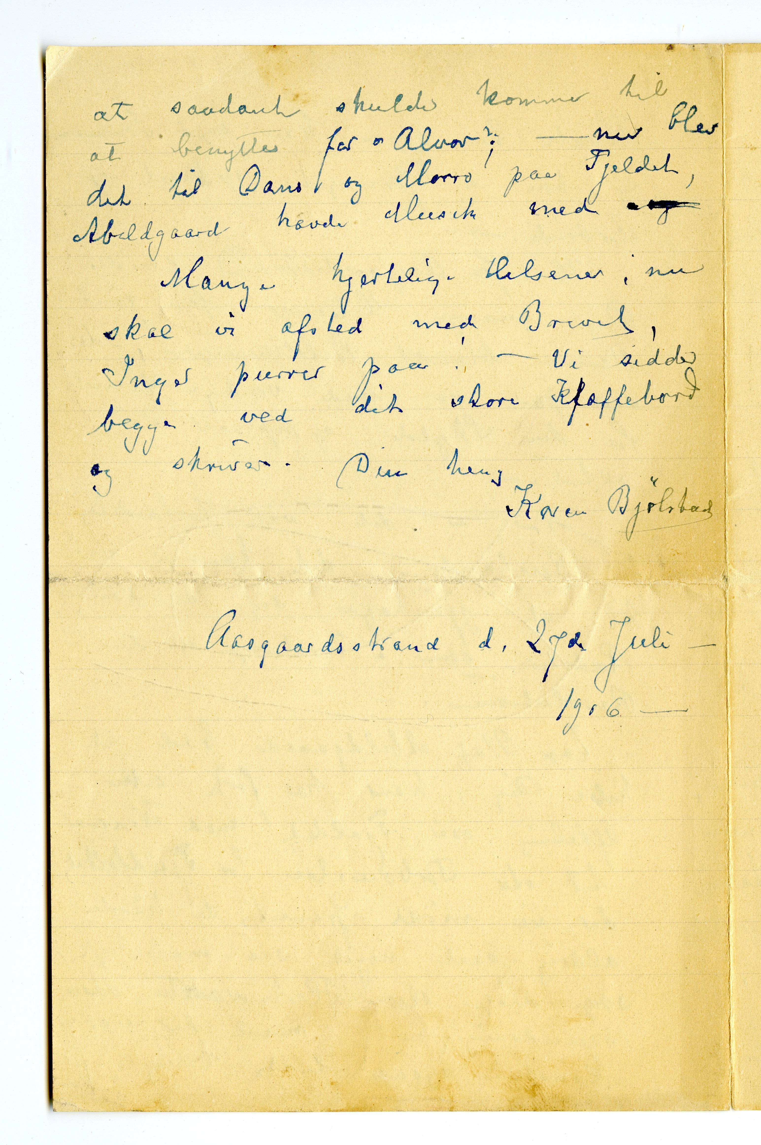 MM K 4445, Munchmuseet. Datert 27.07.1906. Brev fra Karen Bjølstad.