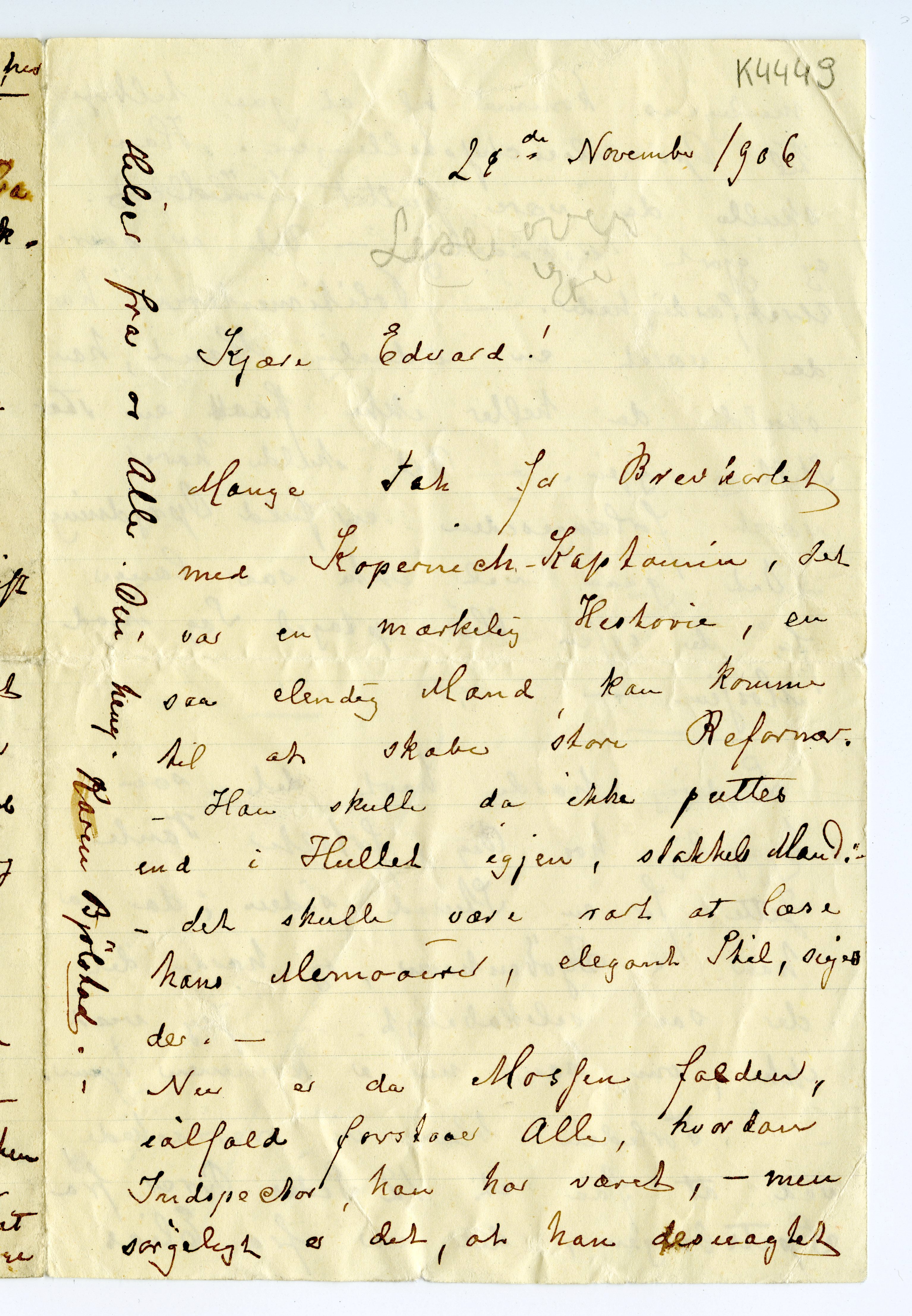 MM K 4449, Munchmuseet. Datert 29.11.1906. Brev fra Karen Bjølstad.