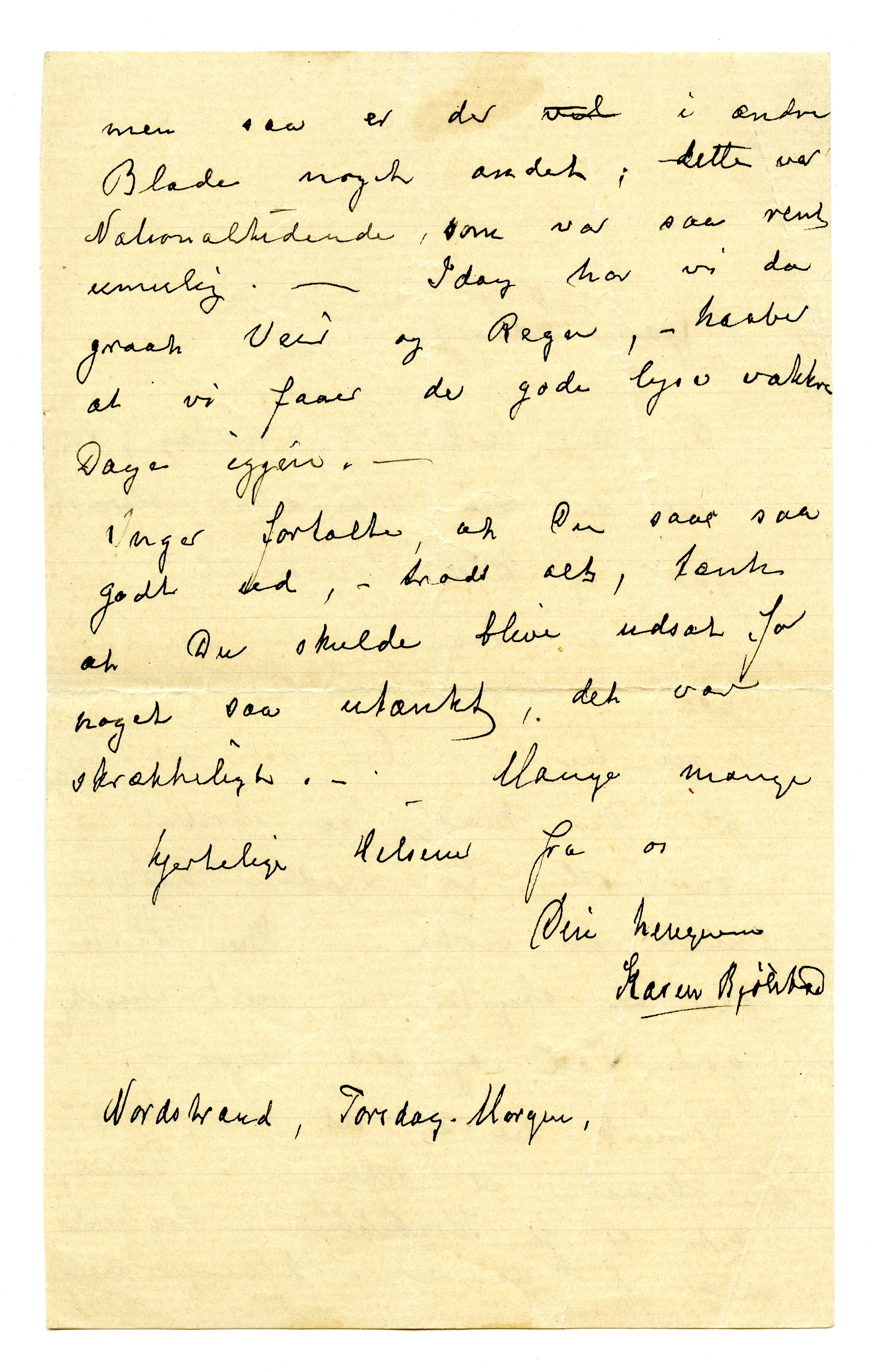 MM K 4454, Munchmuseet. Datert [??].[??].1906. Brev fra Karen Bjølstad.