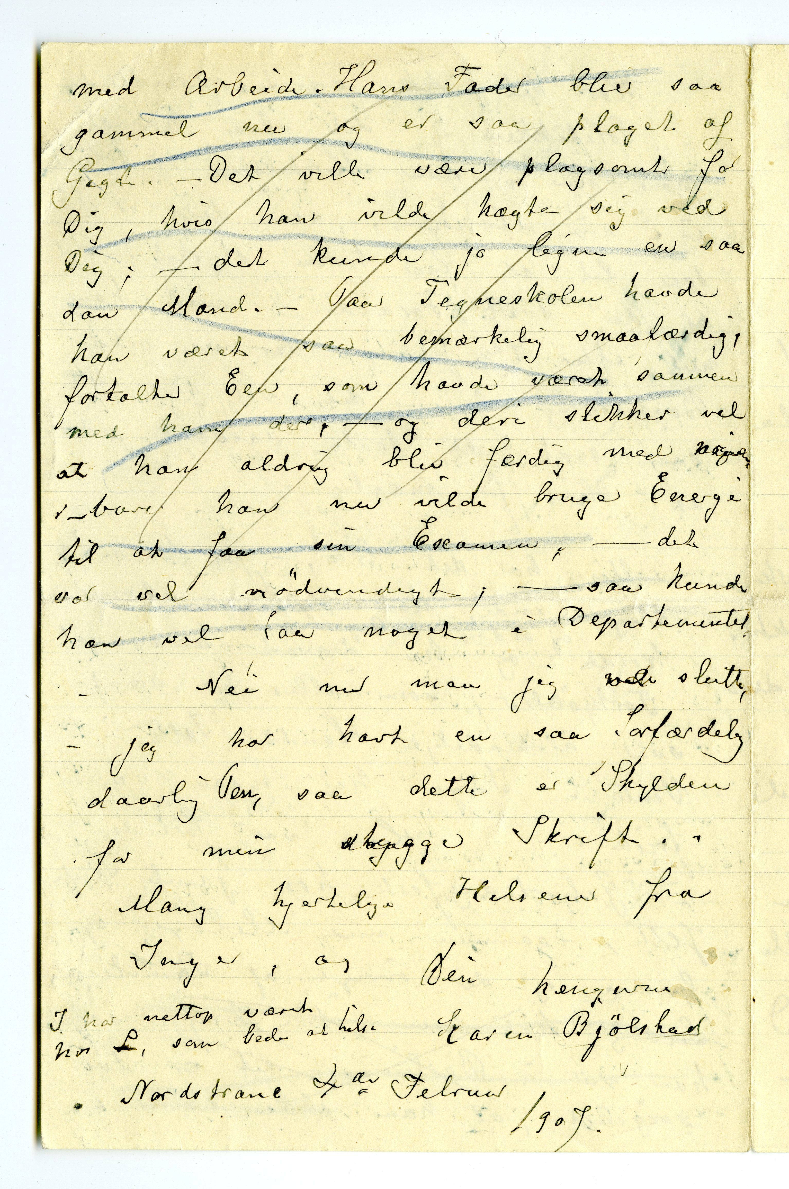 MM K 4456, Munchmuseet. Datert 04.02.1907. Brev fra Karen Bjølstad.