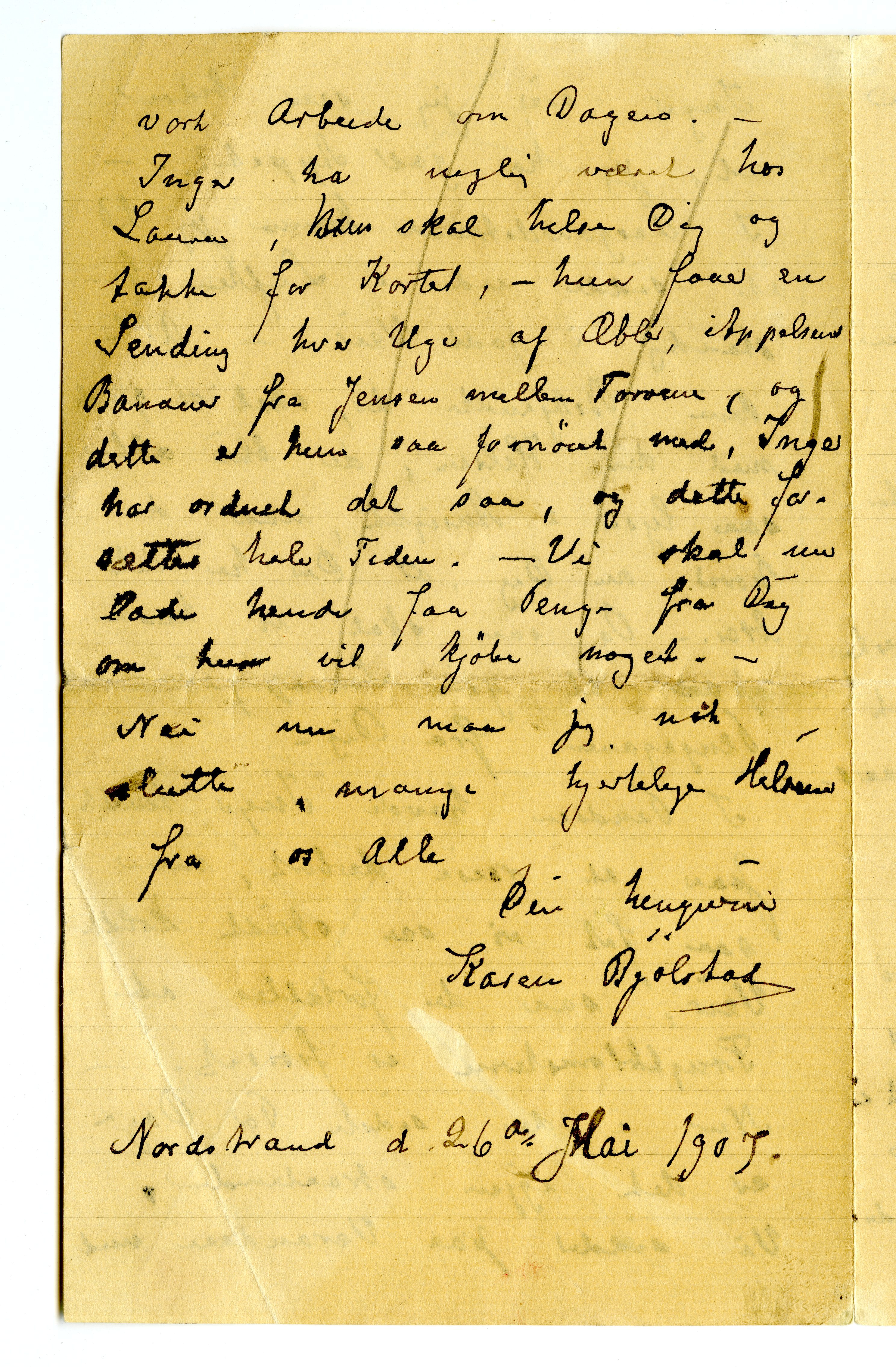 MM K 4459, Munchmuseet. Datert 26.05.1907. Brev fra Karen Bjølstad.
