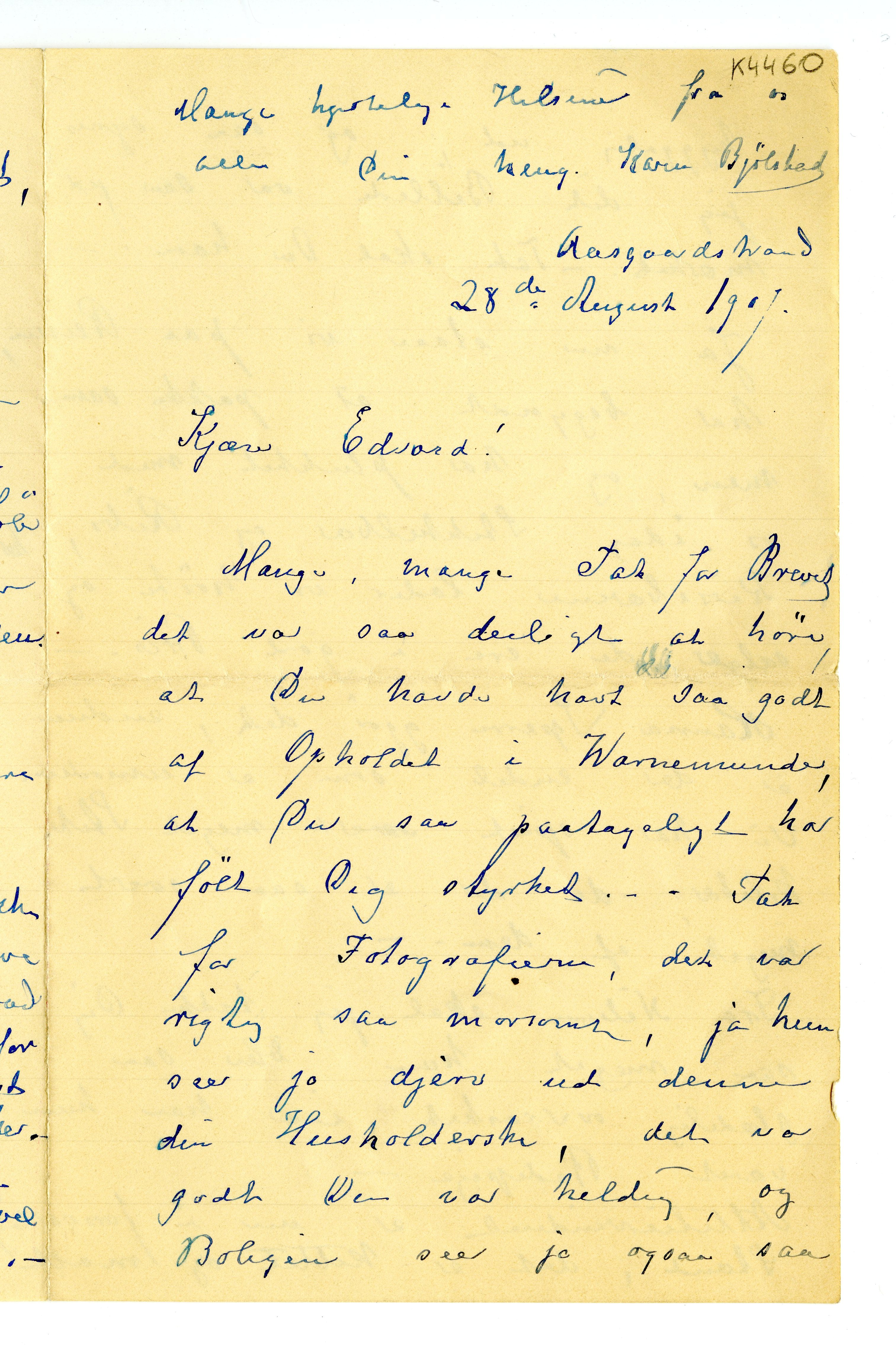 MM K 4460, Munchmuseet. Datert 28.08.1907. Brev fra Karen Bjølstad.