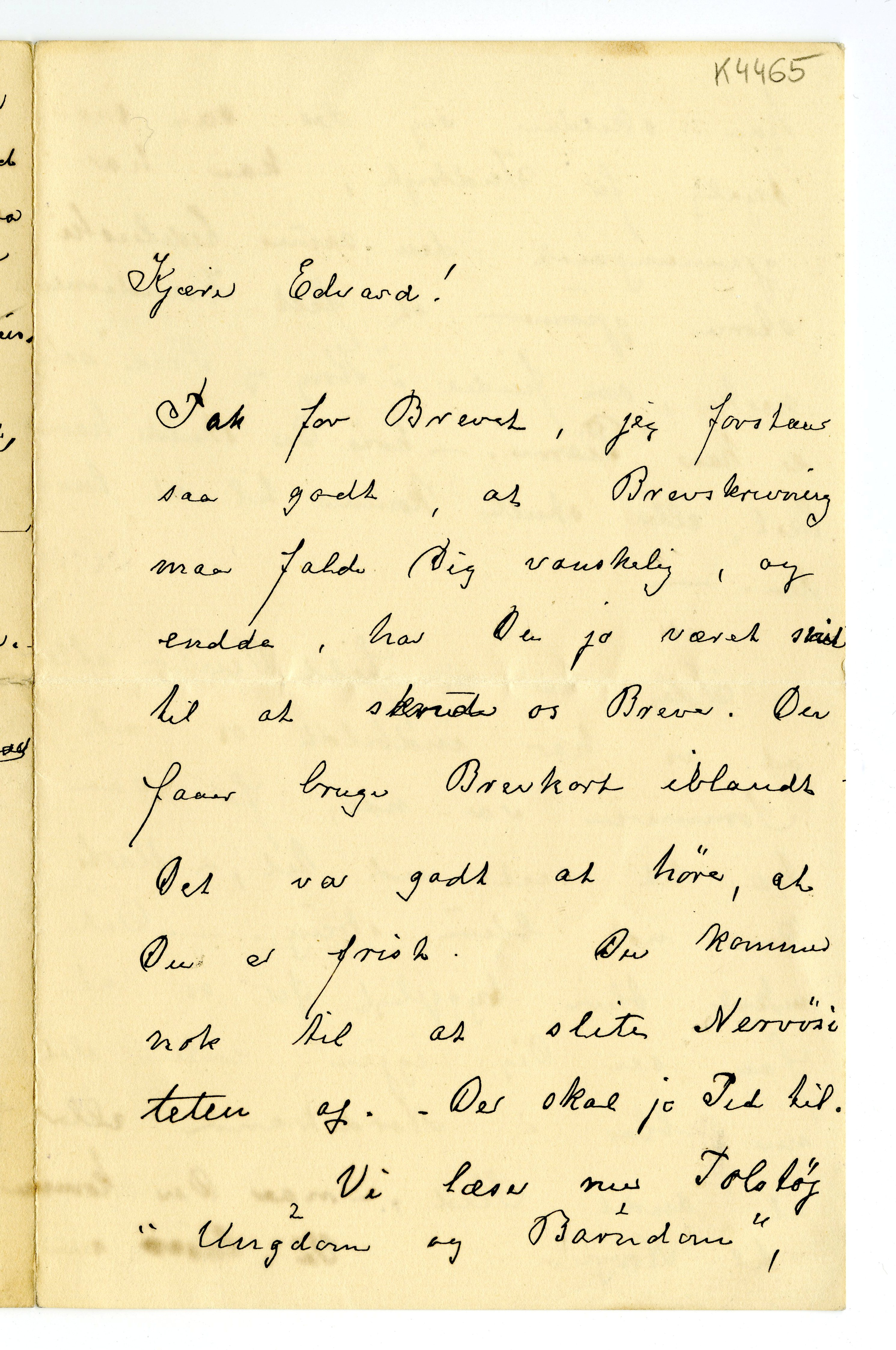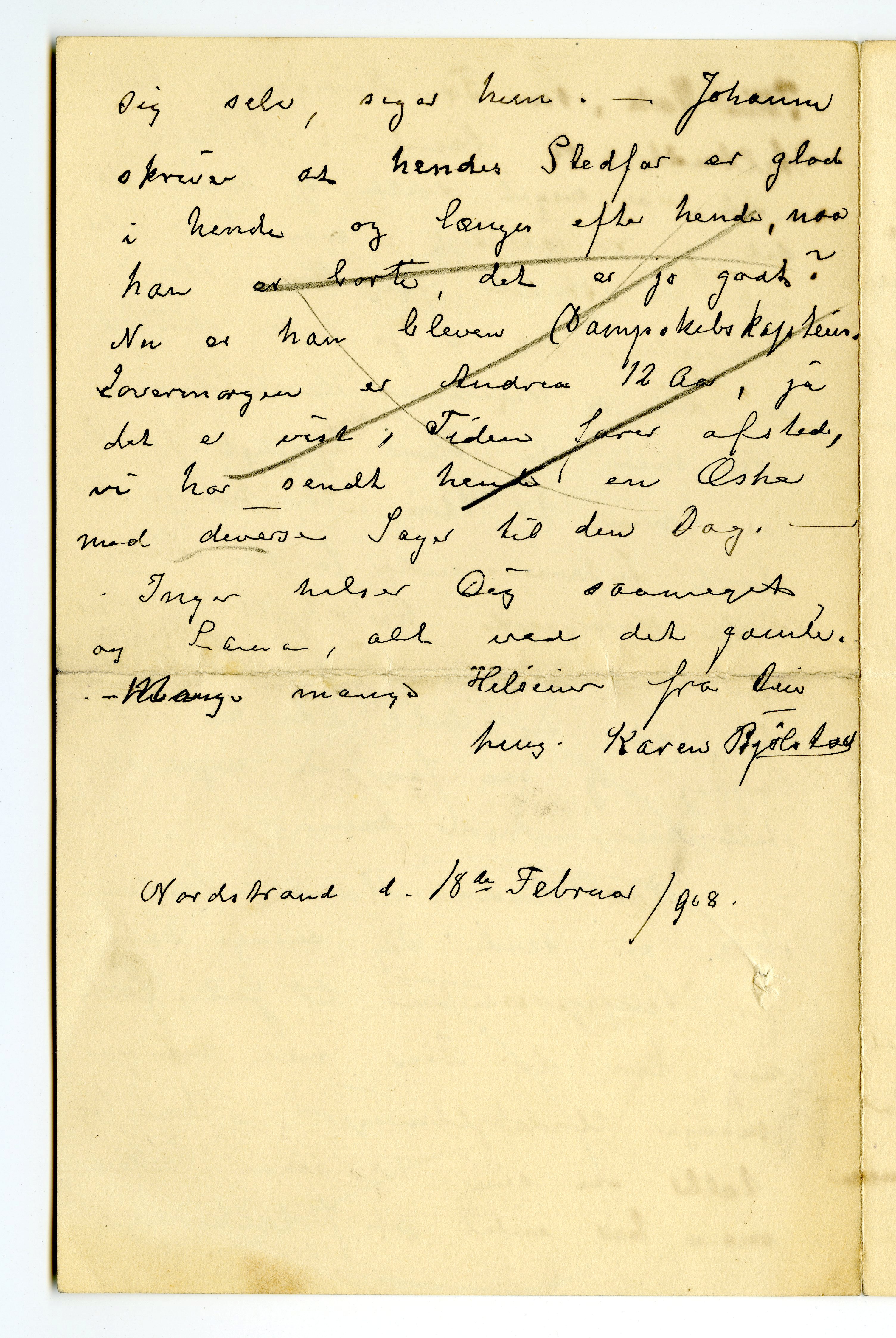 MM K 4465, Munchmuseet. Datert 18.02.1908. Brev fra Karen Bjølstad.