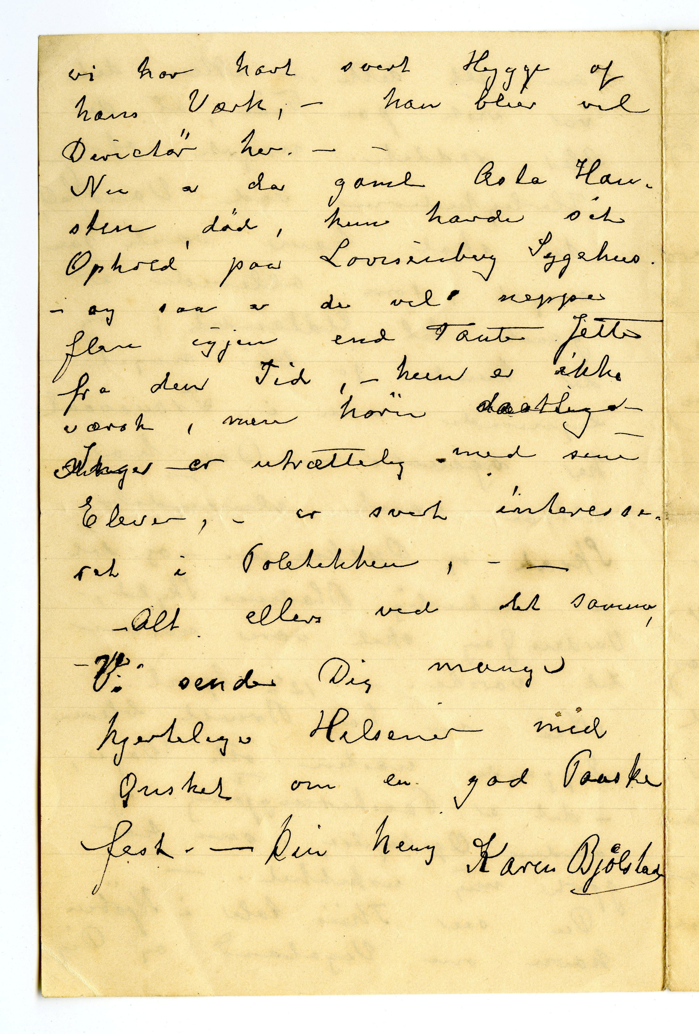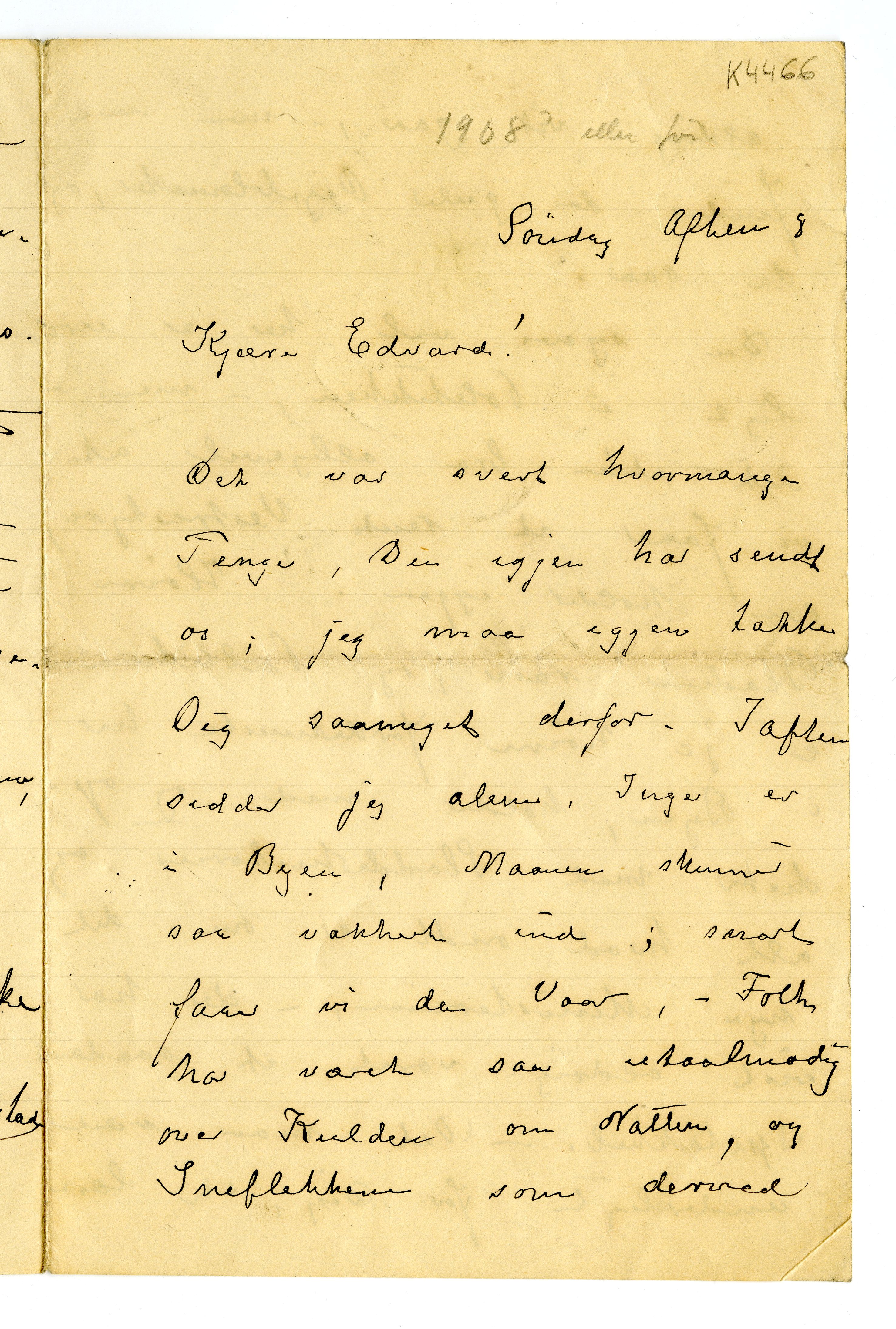MM K 4466, Munchmuseet. Datert 04.04.1908. Brev fra Karen Bjølstad.