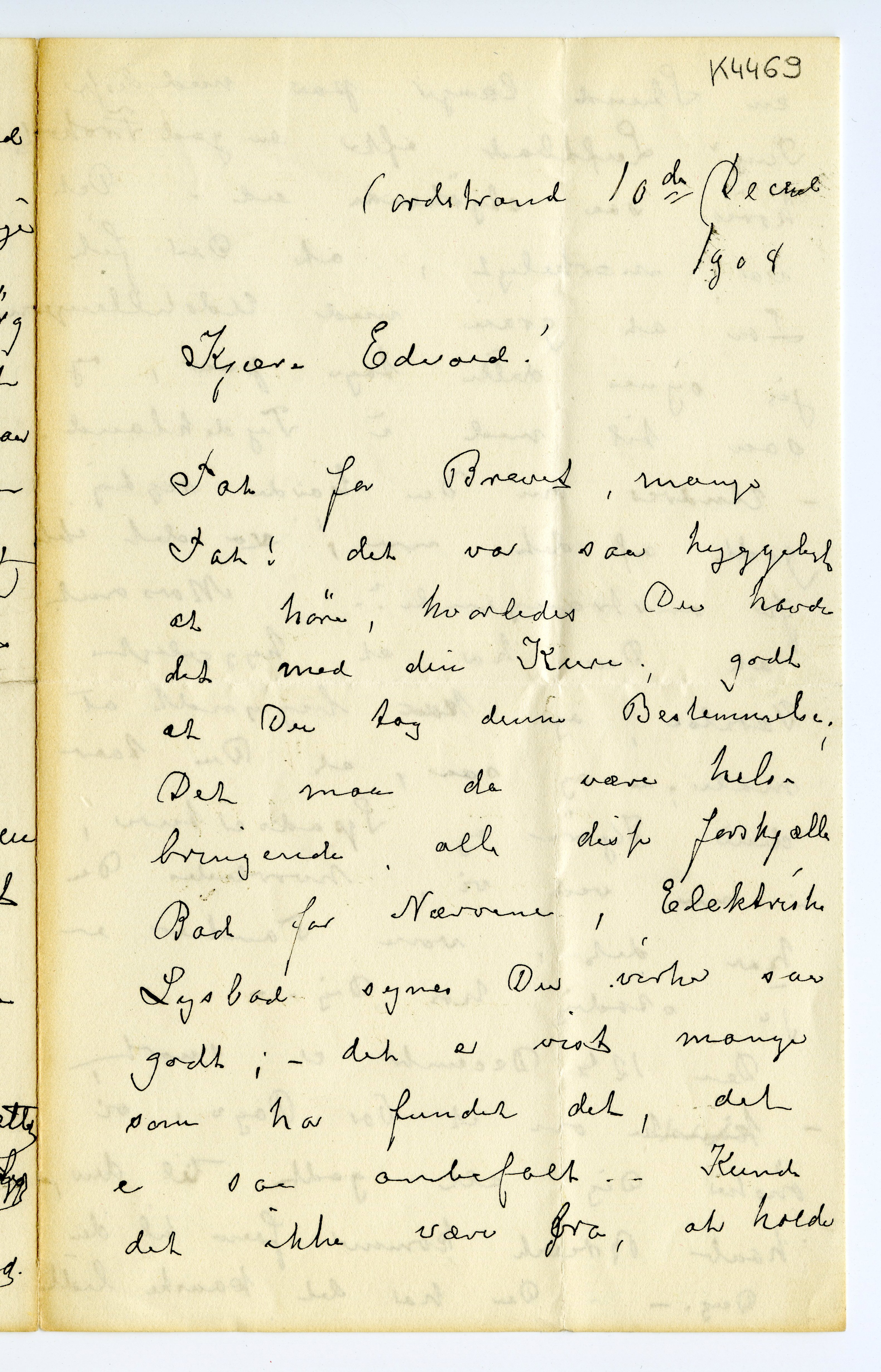 MM K 4469, Munchmuseet. Datert 10.12.1908. Brev fra Karen Bjølstad.
