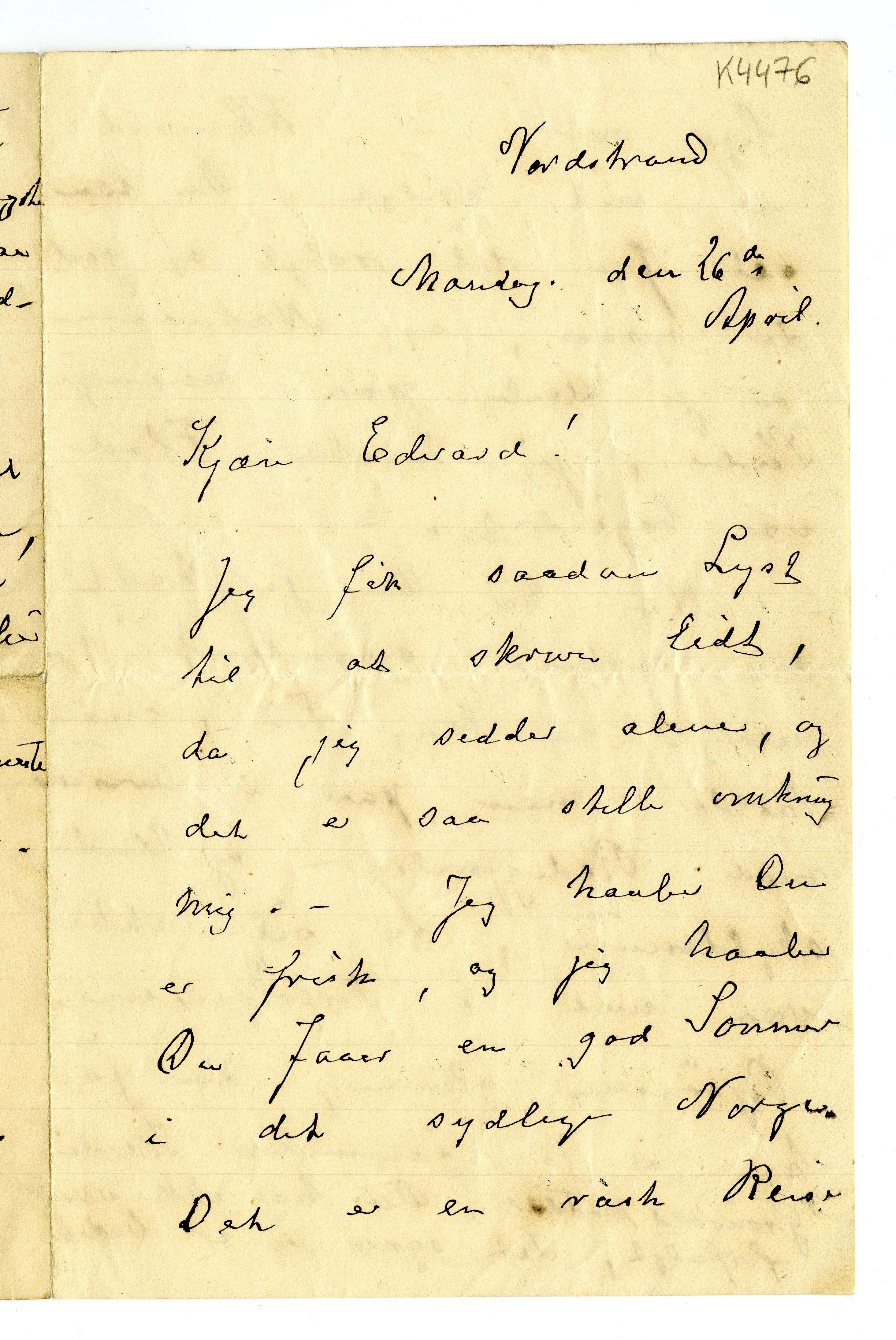 MM K 4476, Munchmuseet. Datert 26.04.1909. Brev fra Karen Bjølstad.
