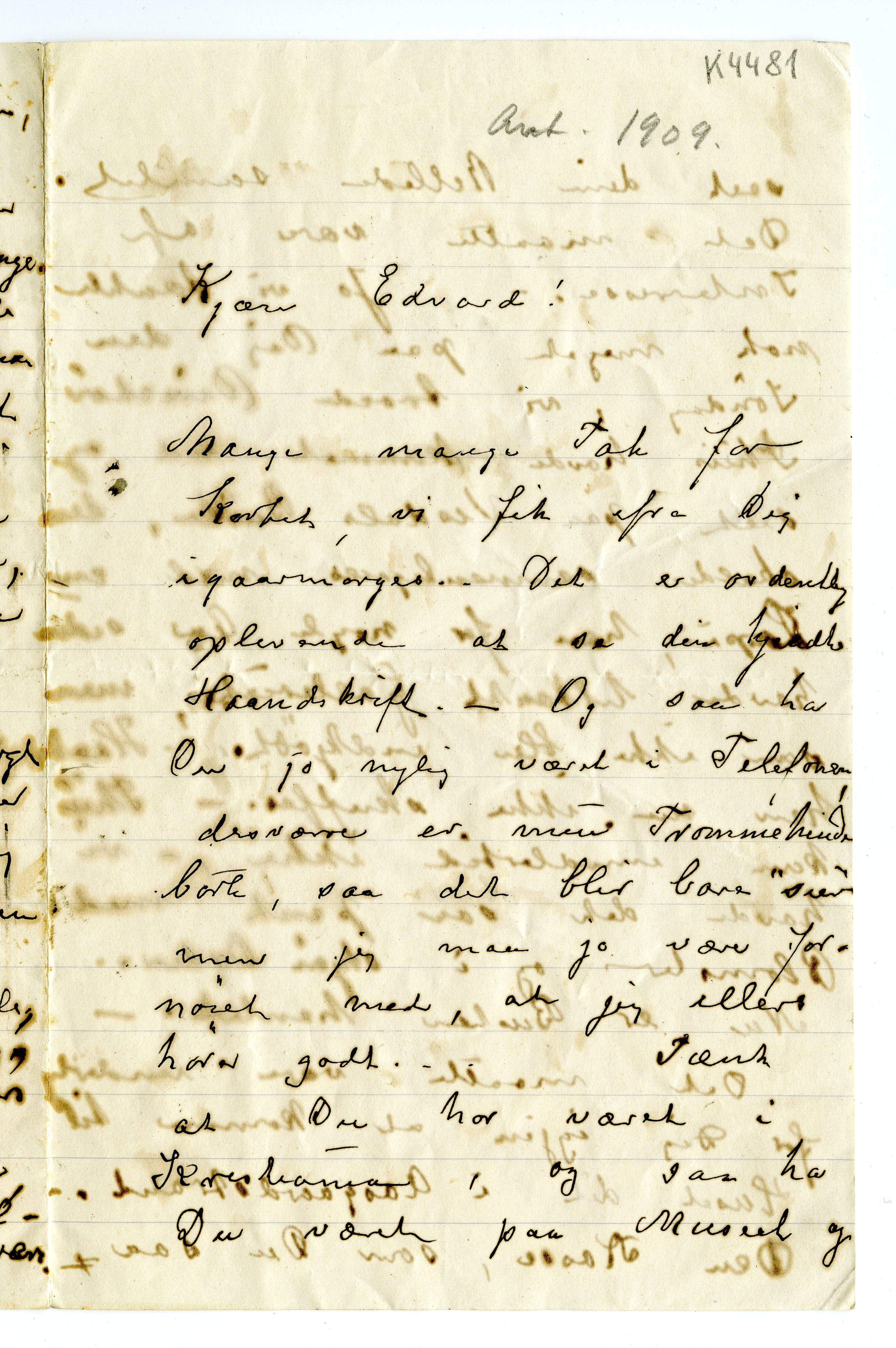 MM K 4481, Munchmuseet. Datert [??].[??].1909. Brev fra Karen Bjølstad.