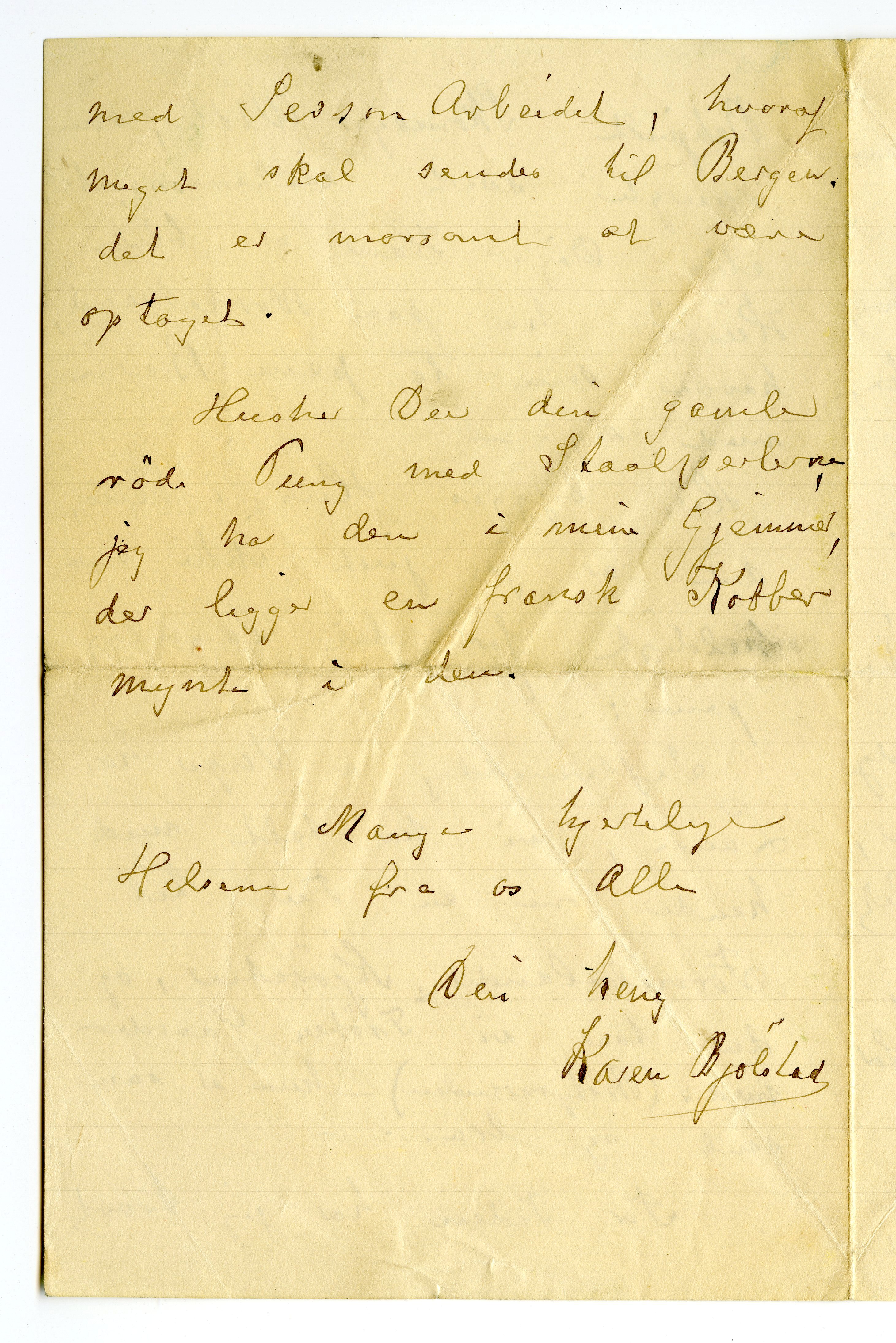 MM K 4485, Munchmuseet. Datert 15.05.1910. Brev fra Karen Bjølstad.