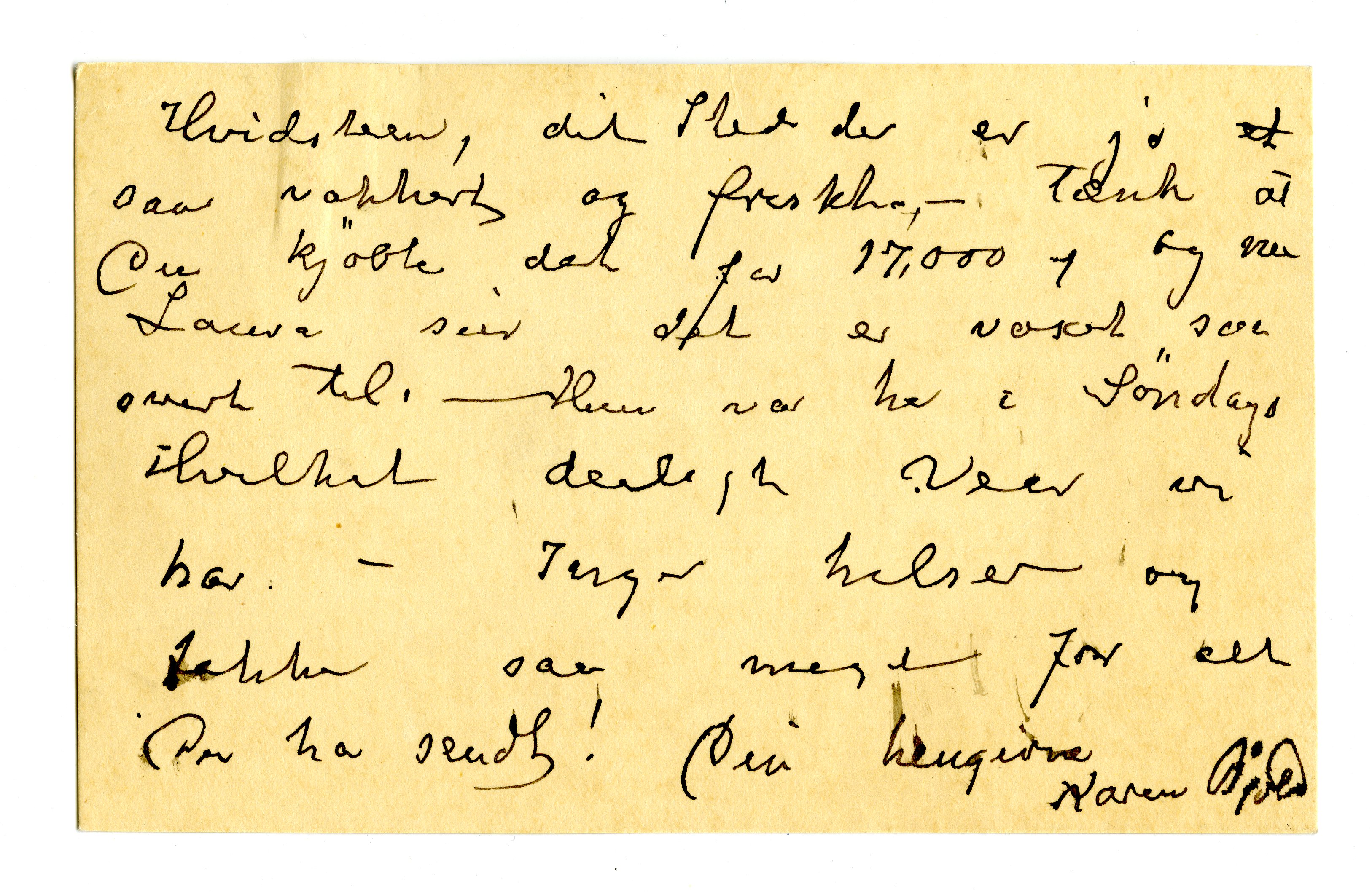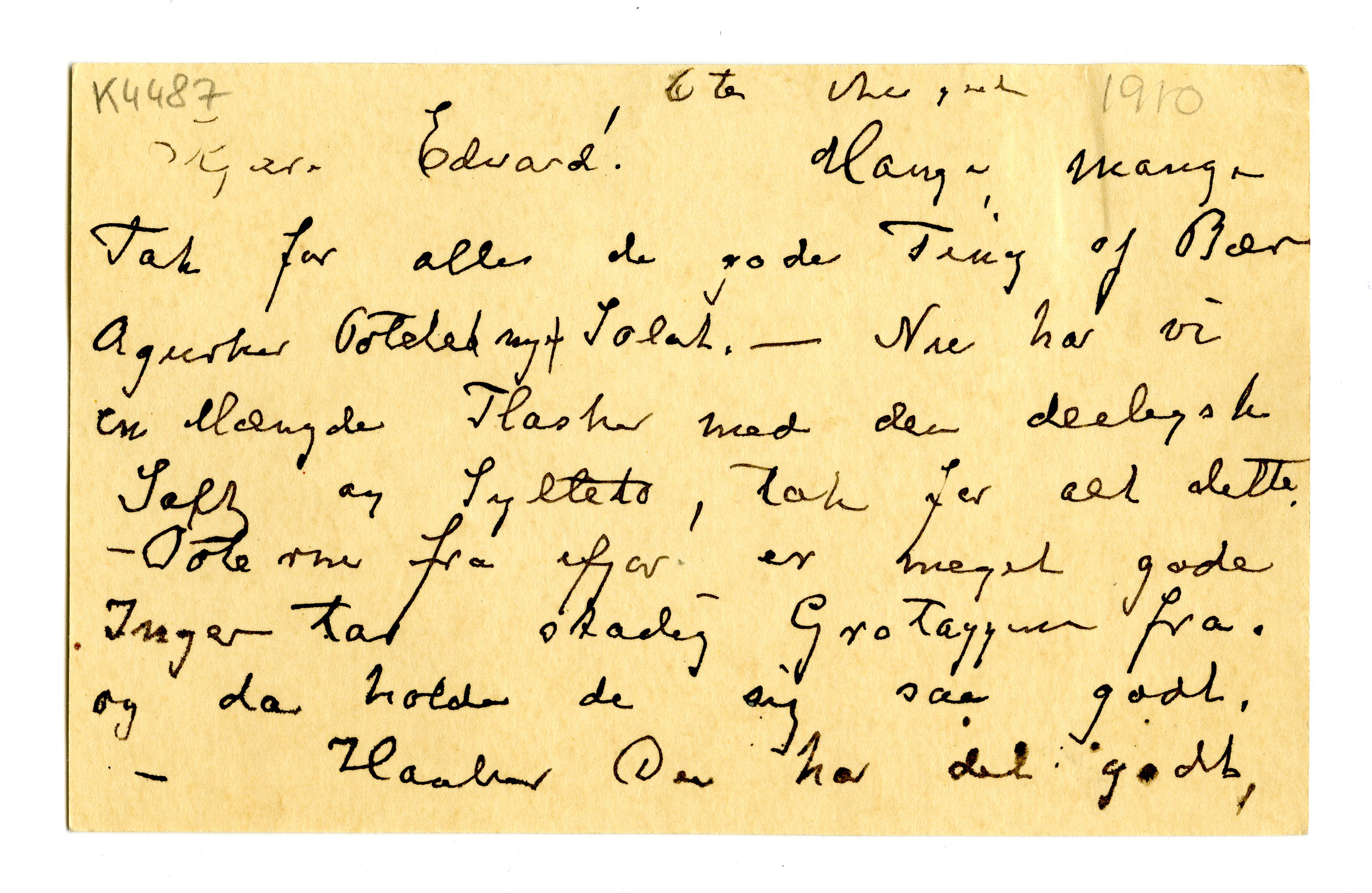 MM K 4487, Munchmuseet. Datert 06.08.1910. Brev fra Karen Bjølstad.