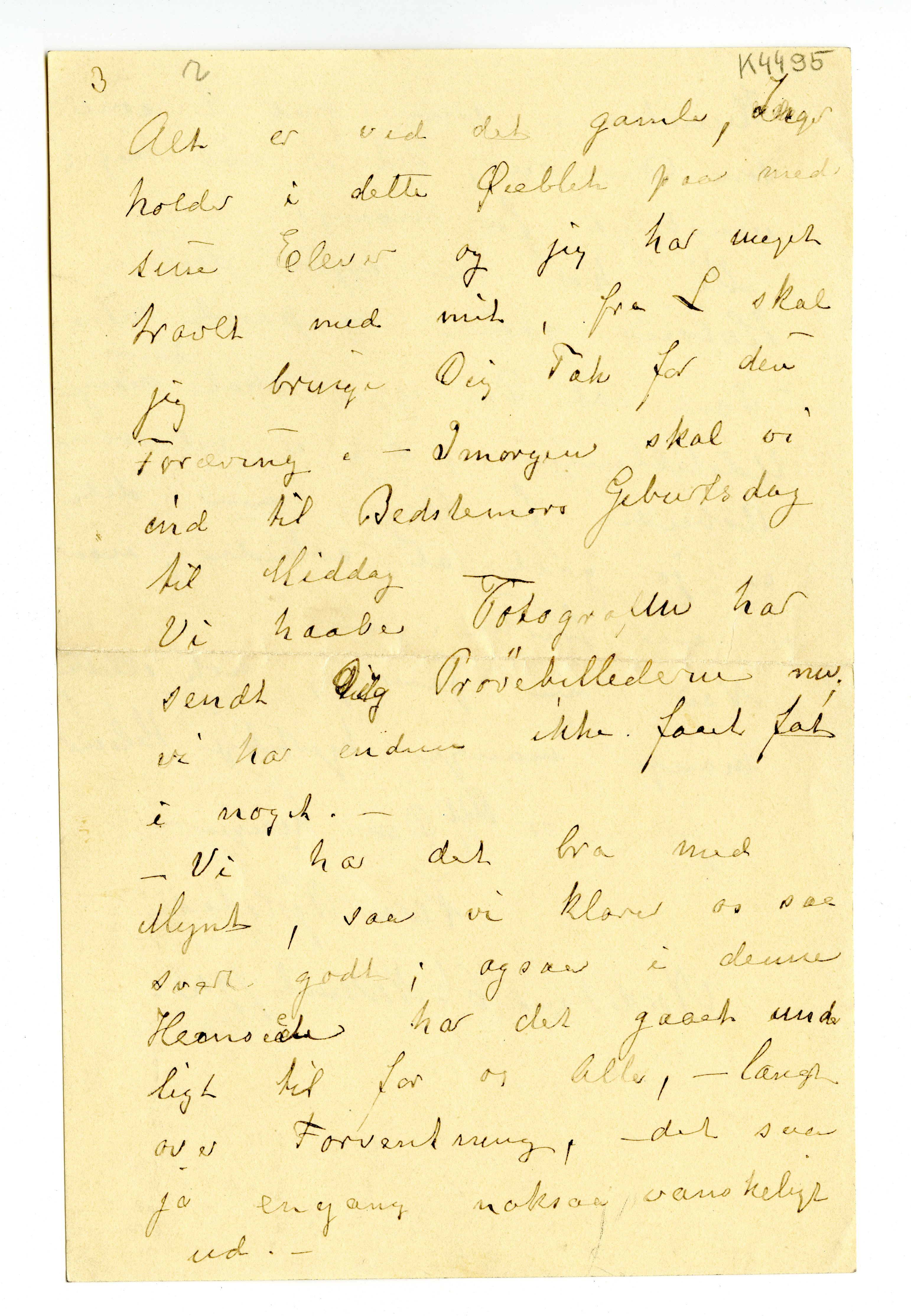 MM K 4495, Munchmuseet. Datert 06.11.1903. Brev fra Karen Bjølstad.