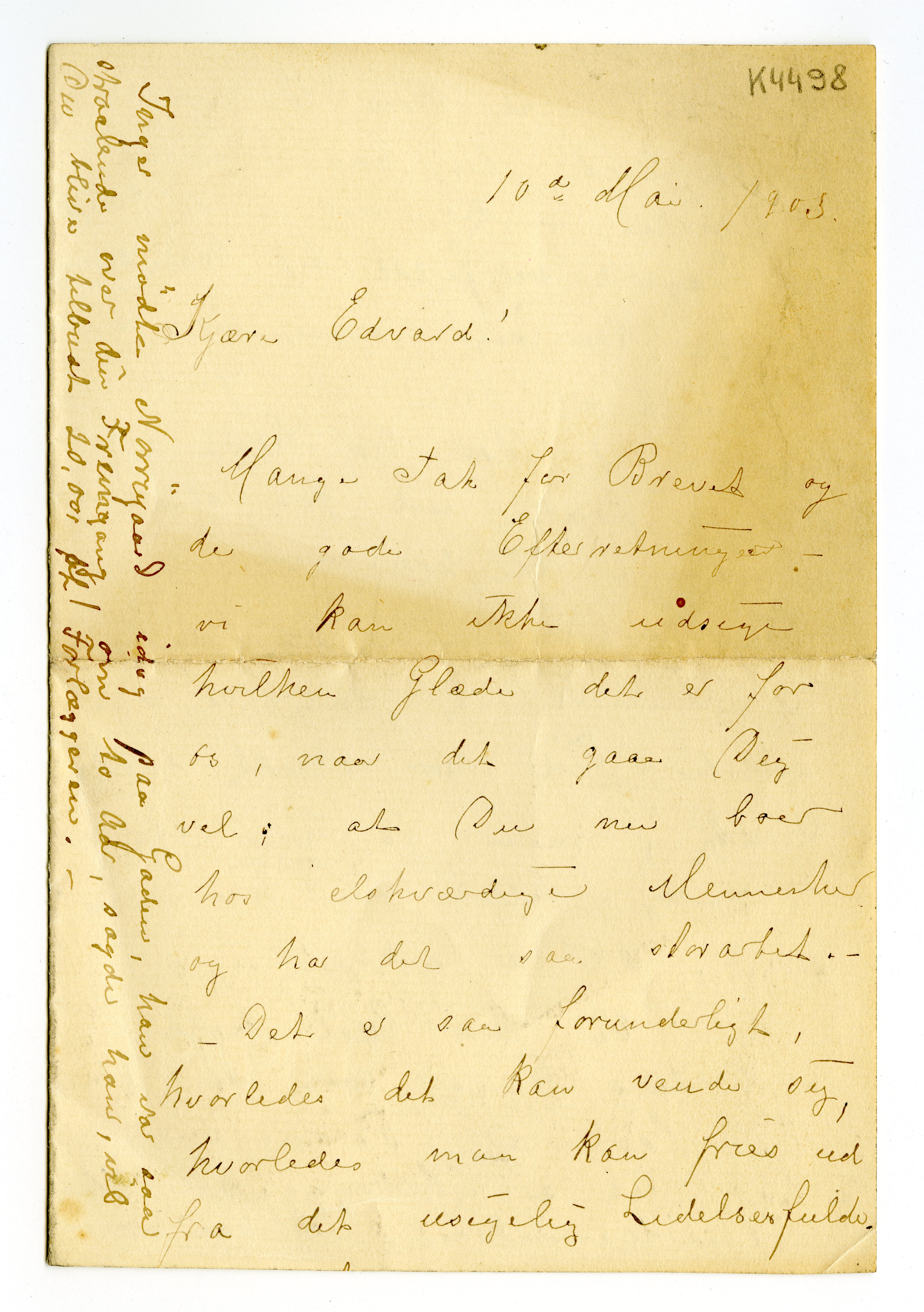 MM K 4498, Munchmuseet. Datert 10.05.1903. Brev fra Karen Bjølstad.