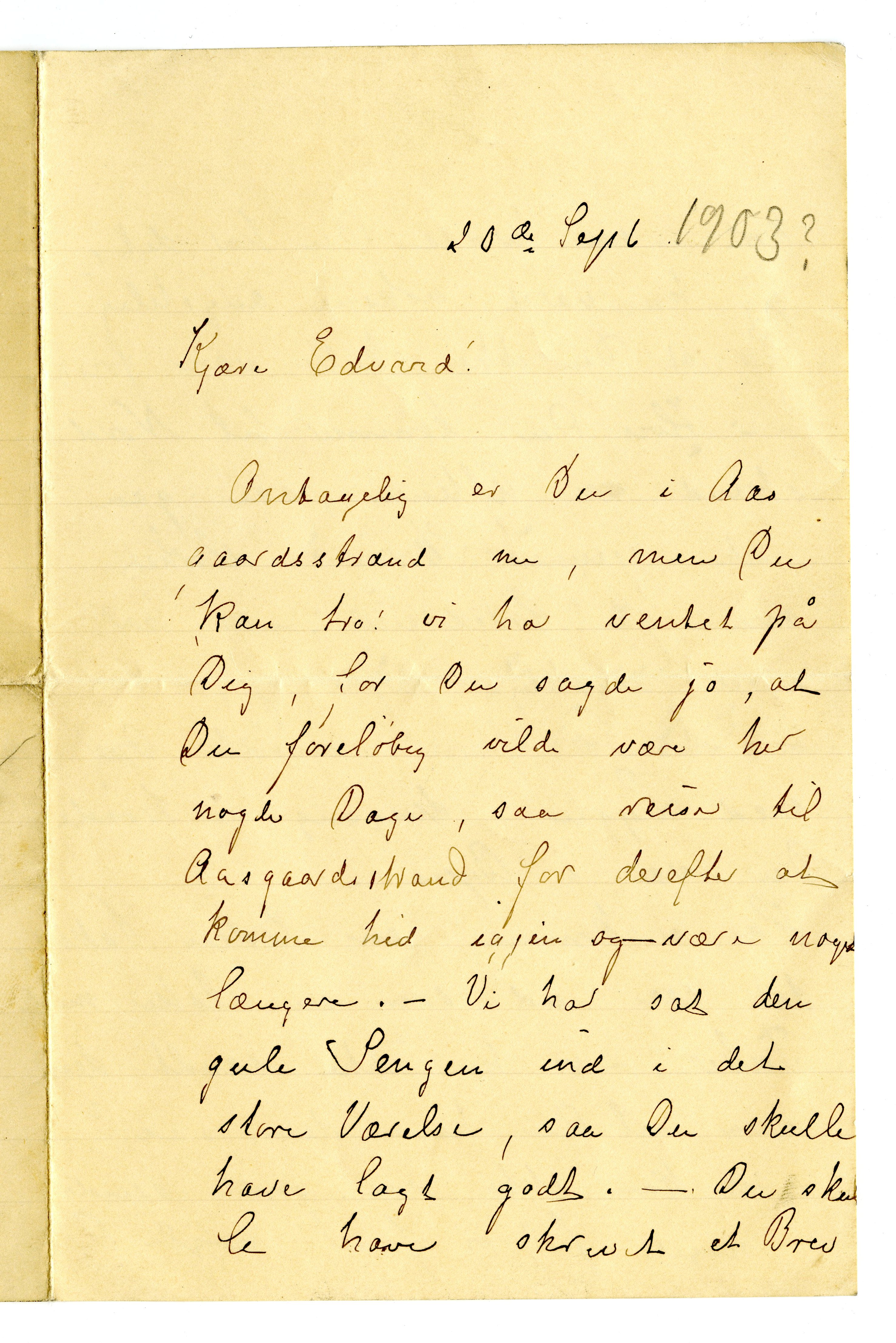 MM K 4501, Munchmuseet. Datert 20.09.1903. Brev fra Karen Bjølstad.