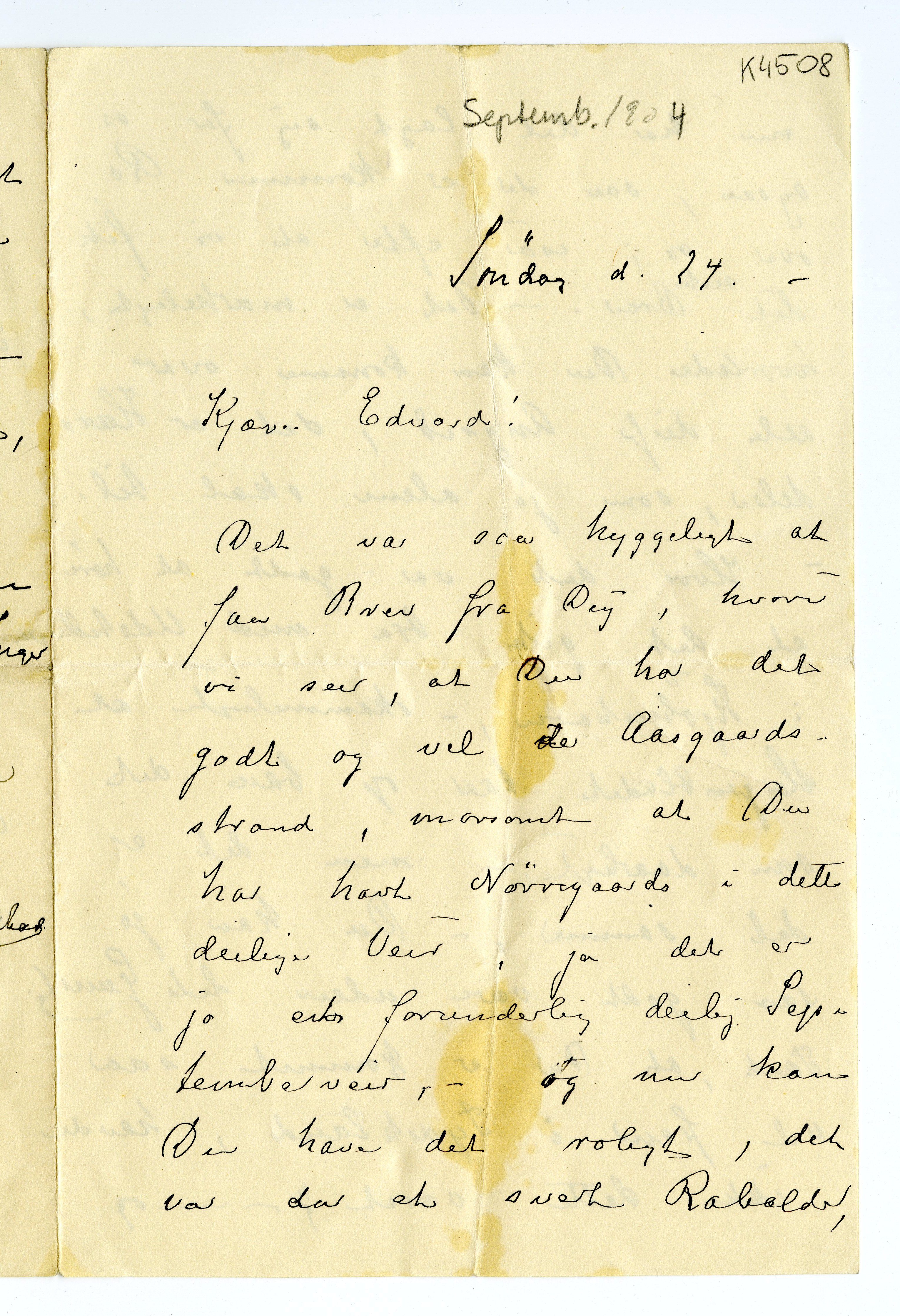 MM K 4508, Munchmuseet. Datert 24.09.1904. Brev fra Karen Bjølstad.