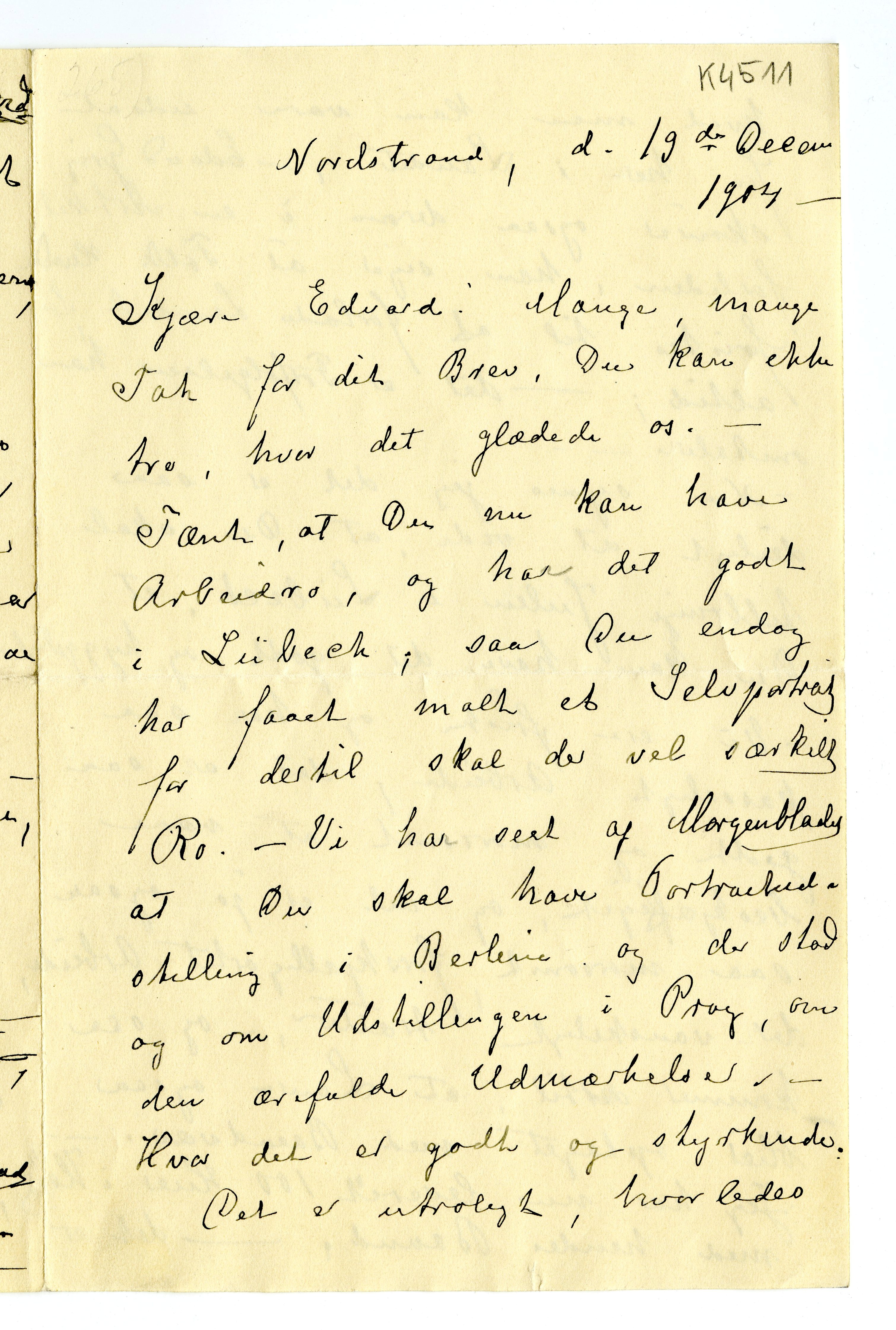 MM K 4511, Munchmuseet. Datert 19.12.1904. Brev fra Karen Bjølstad.
