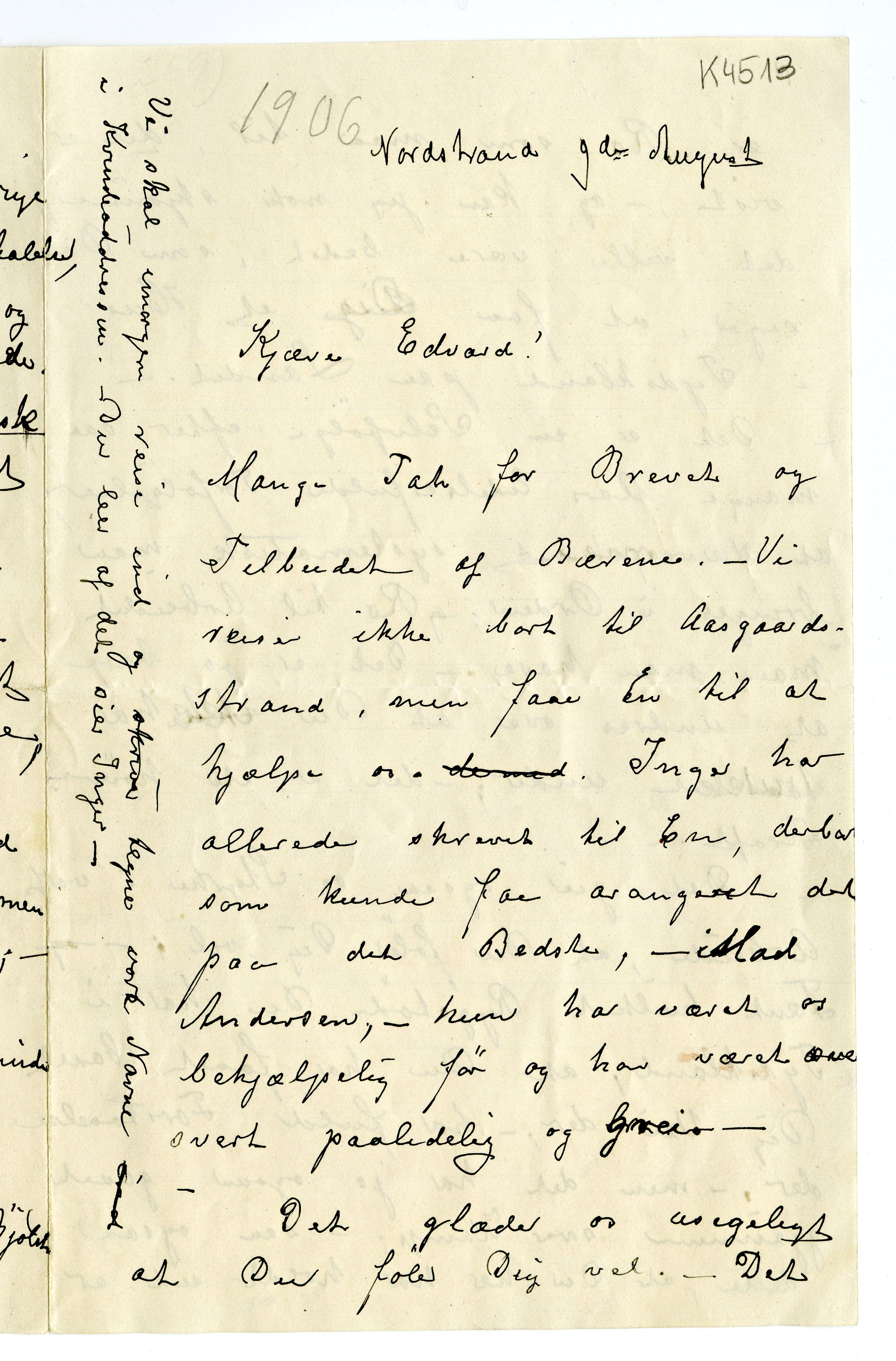 MM K 4513, Munchmuseet. Datert 09.08.1905. Brev fra Karen Bjølstad.