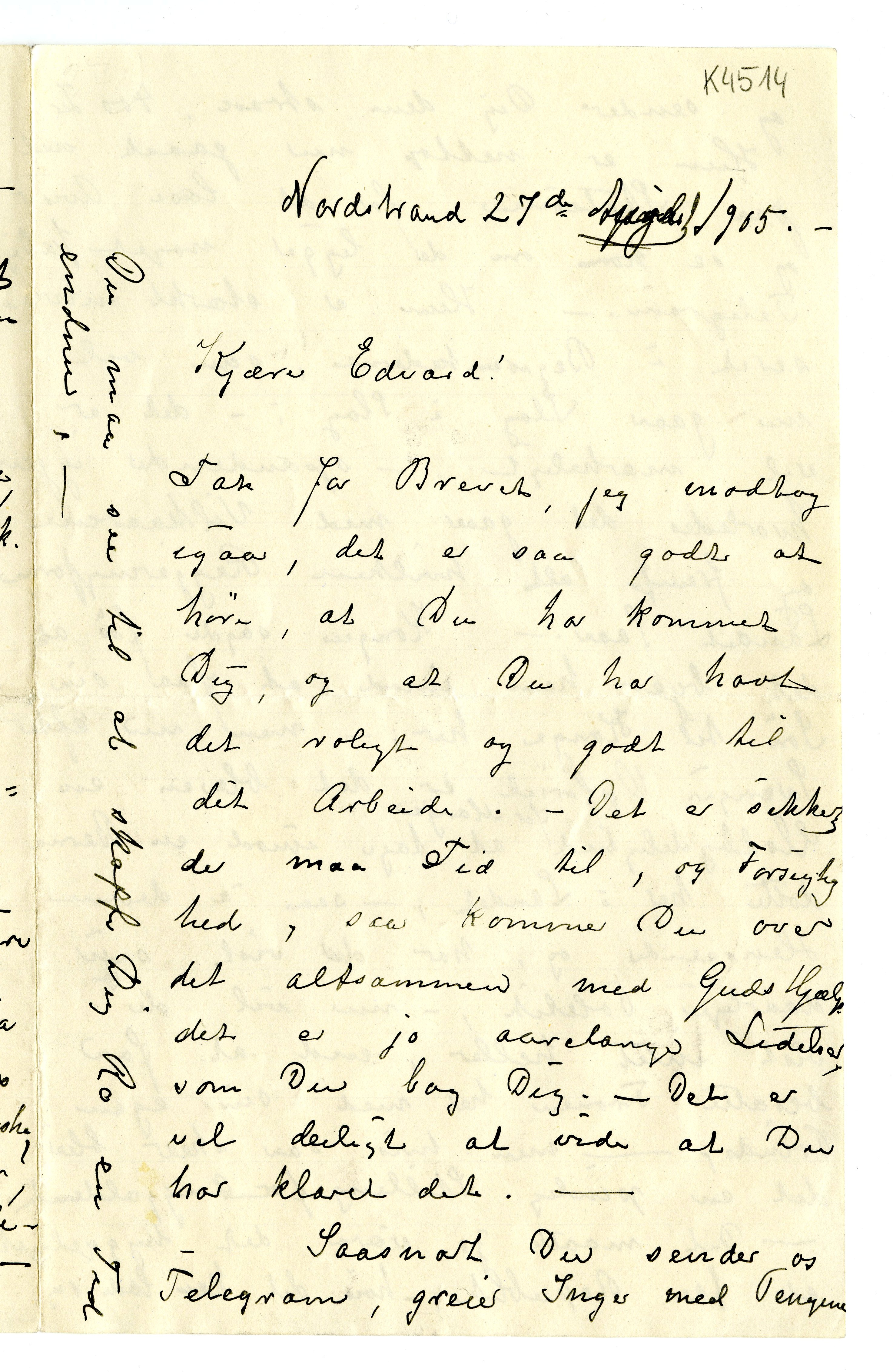 MM K 4514, Munchmuseet. Datert 27.08.1905. Brev fra Karen Bjølstad.