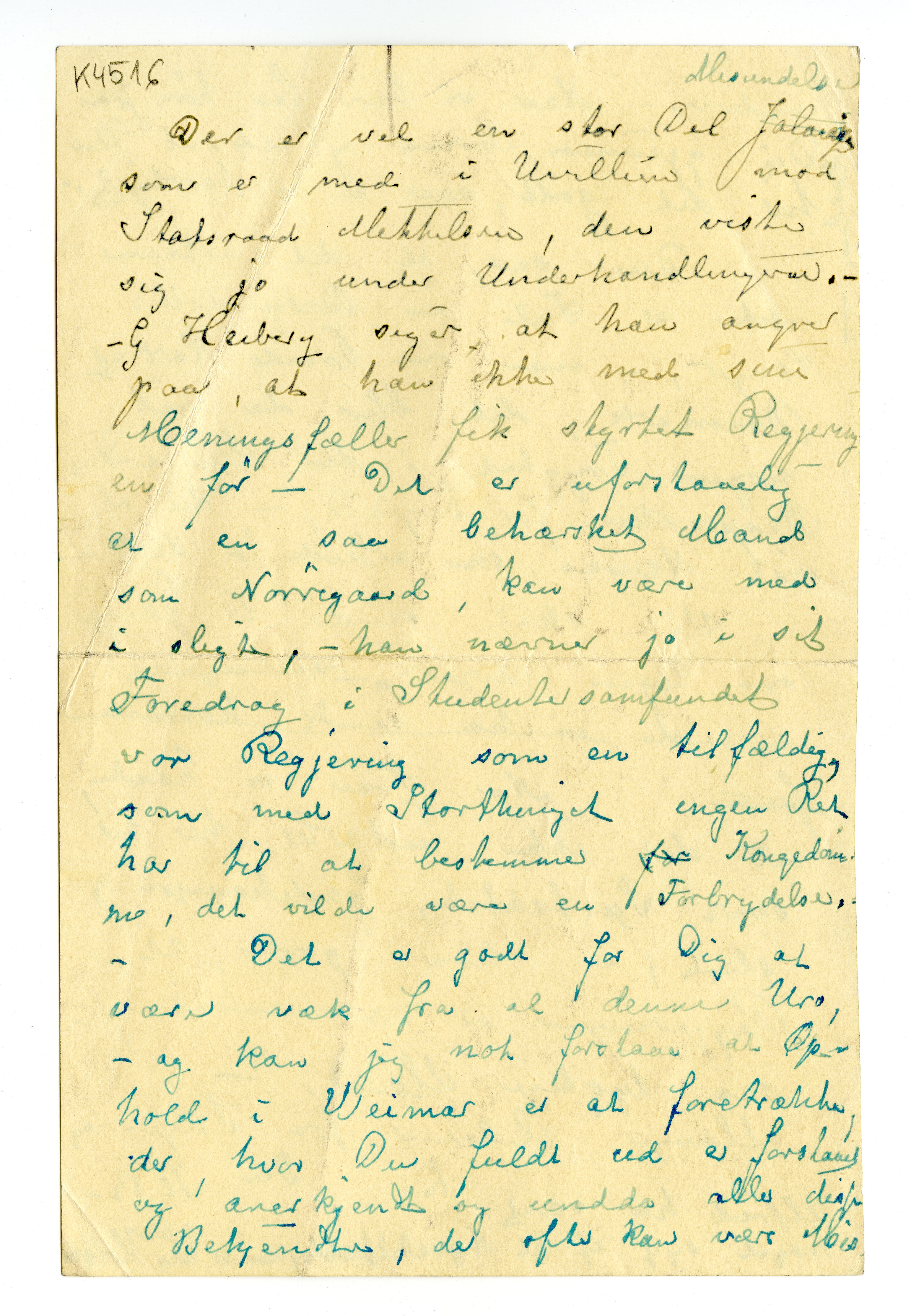 MM K 4516, Munchmuseet. Datert [??].[??].1905. Brev fra Karen Bjølstad.